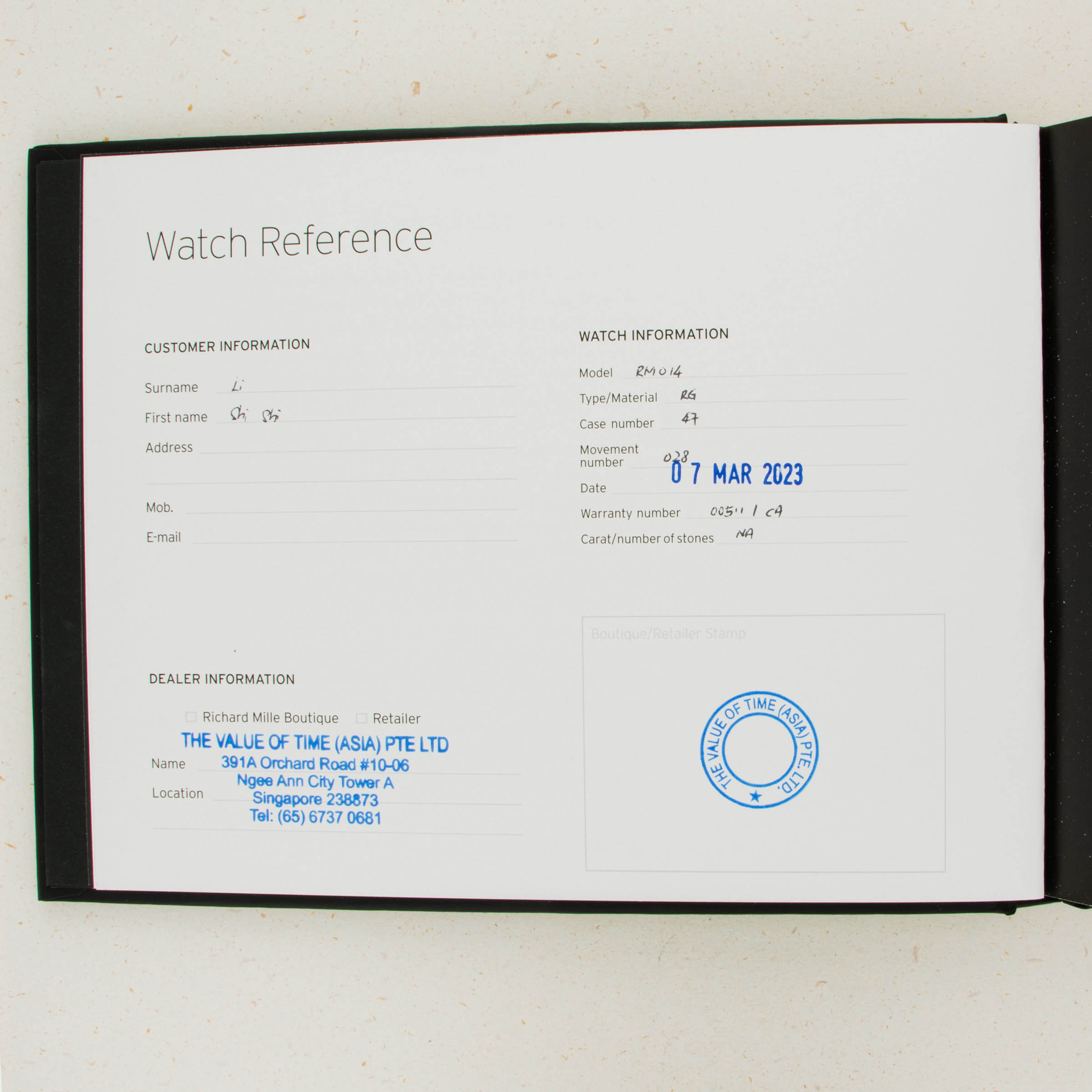 Having been sold by RM as a certified preowned watch in 2023, watch is in near-mint condition showing minimal signs of wear.