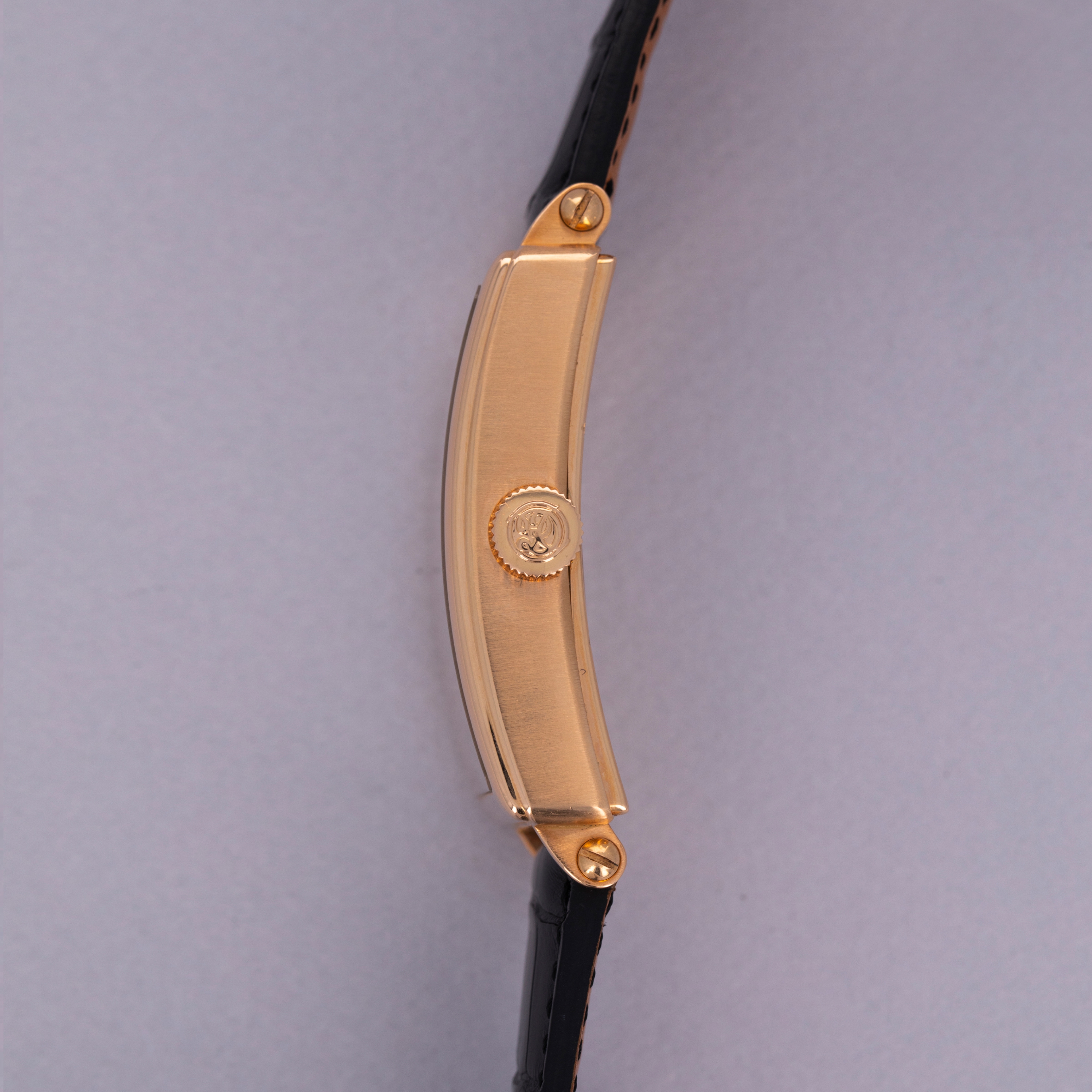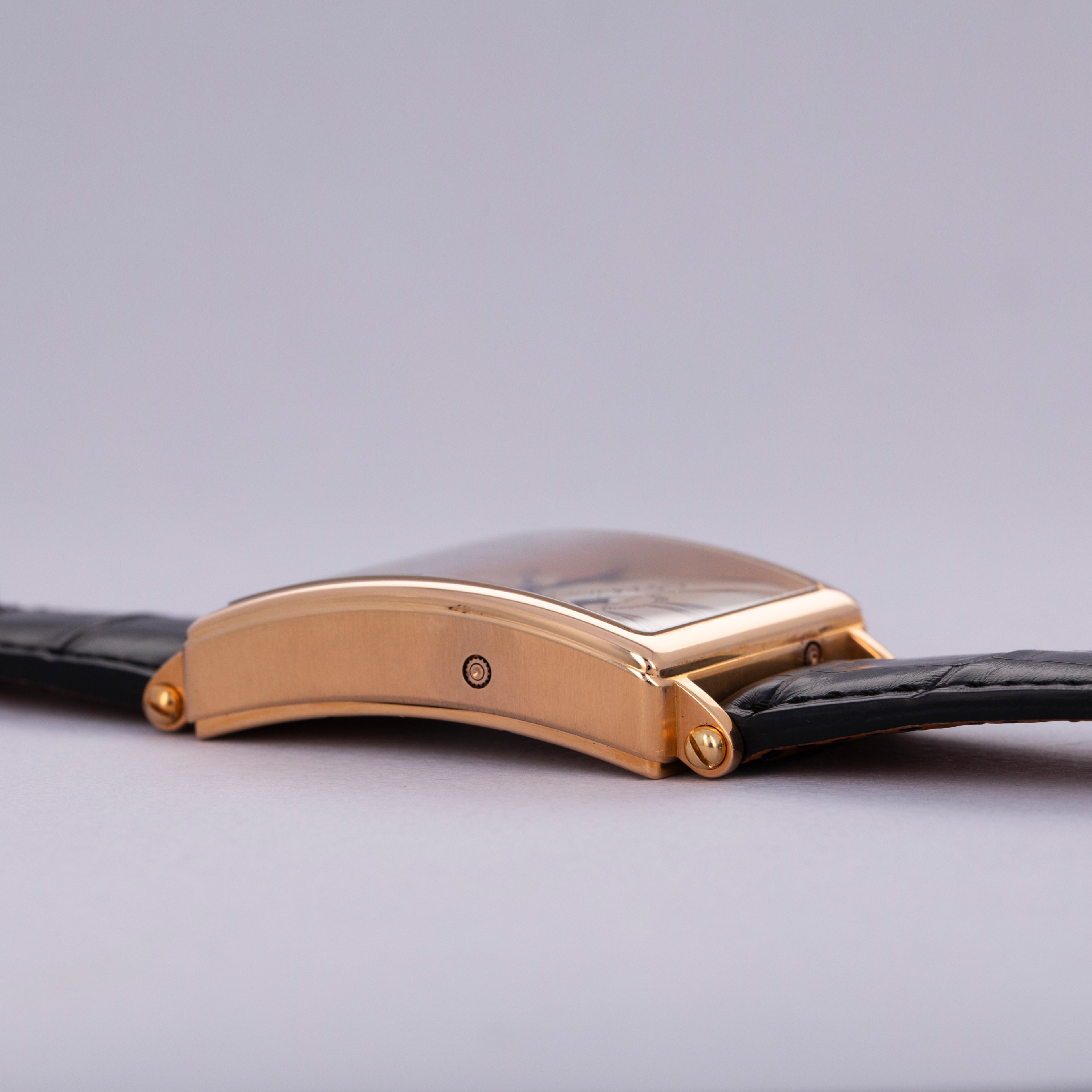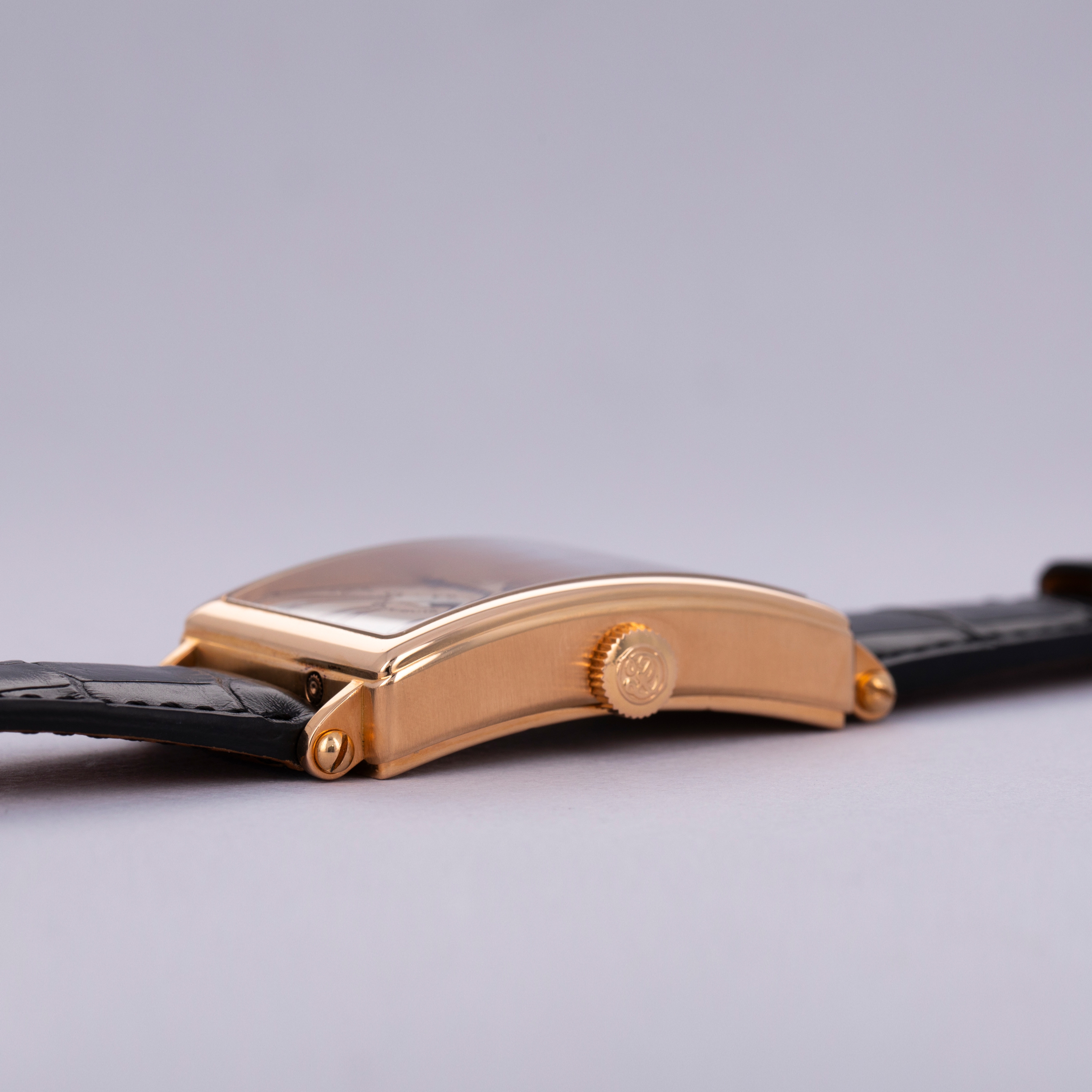 A legendary figure in the arena of independent watchmaking, Roger Dubuis learned his trade by working for several large Haute Horlogerie brands like Patek Philippe before embarking on his own endeavors. Founding his eponymous brand in 1995, Roger Dubuis’ timepieces have evolved into some of the best-regarded pieces of early high-end independent horology the market has to offer. Released in the early 2000s, the Roger Dubuis Much More Bi-Retrograde Calendar ref. M34 is a wonderful example of Dubuis’ distinctive take on horological design. Featuring a 34mm wide 18kt rose gold rectangular case with short lugs and a thin bezel with a very small step along its periphery, the ref. M34’s construction is classical yet somewhat whimsical, much like its dial design. Featuring two retrograde displays, one for the day and one for the date, and a centrally-located moonphase subdial at 6 o’clock along with an eclectic blend of exploding Roman numerals, this timepiece’s design is a melody that could only be achieved by someone with the watchmaking credentials of Roger Dubuis. Limited to 28 units and individually numbered, this is as rare a timepiece as it is stunning.