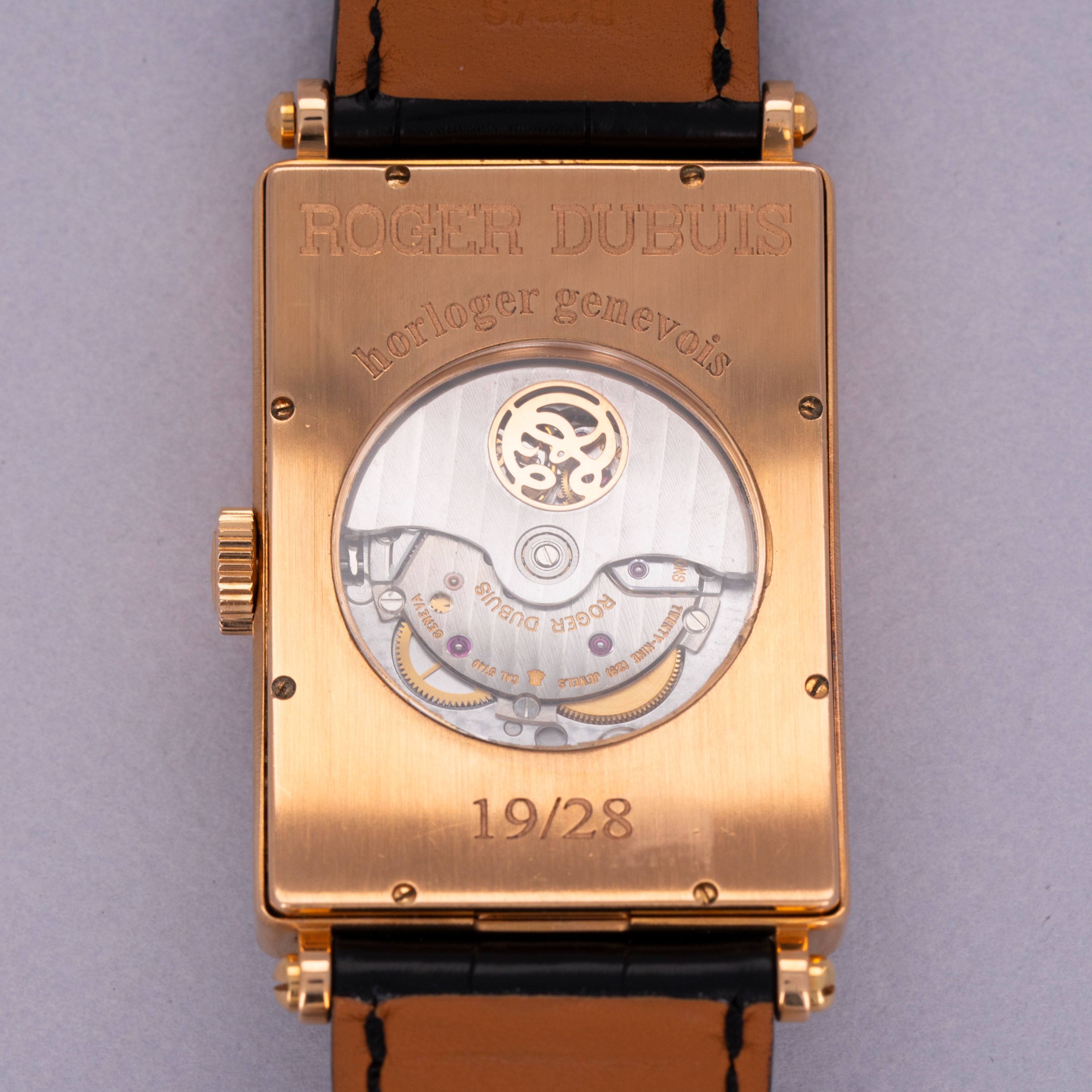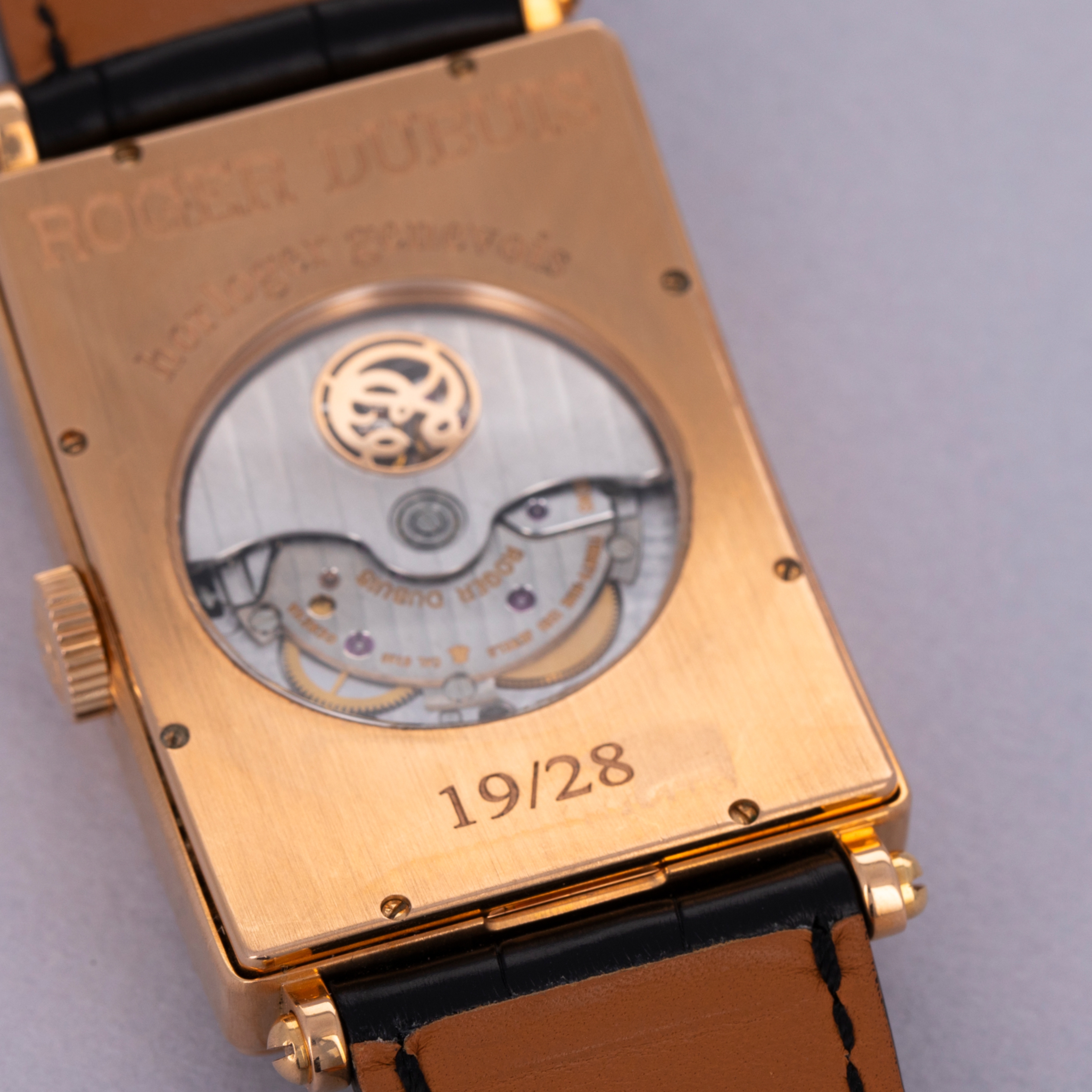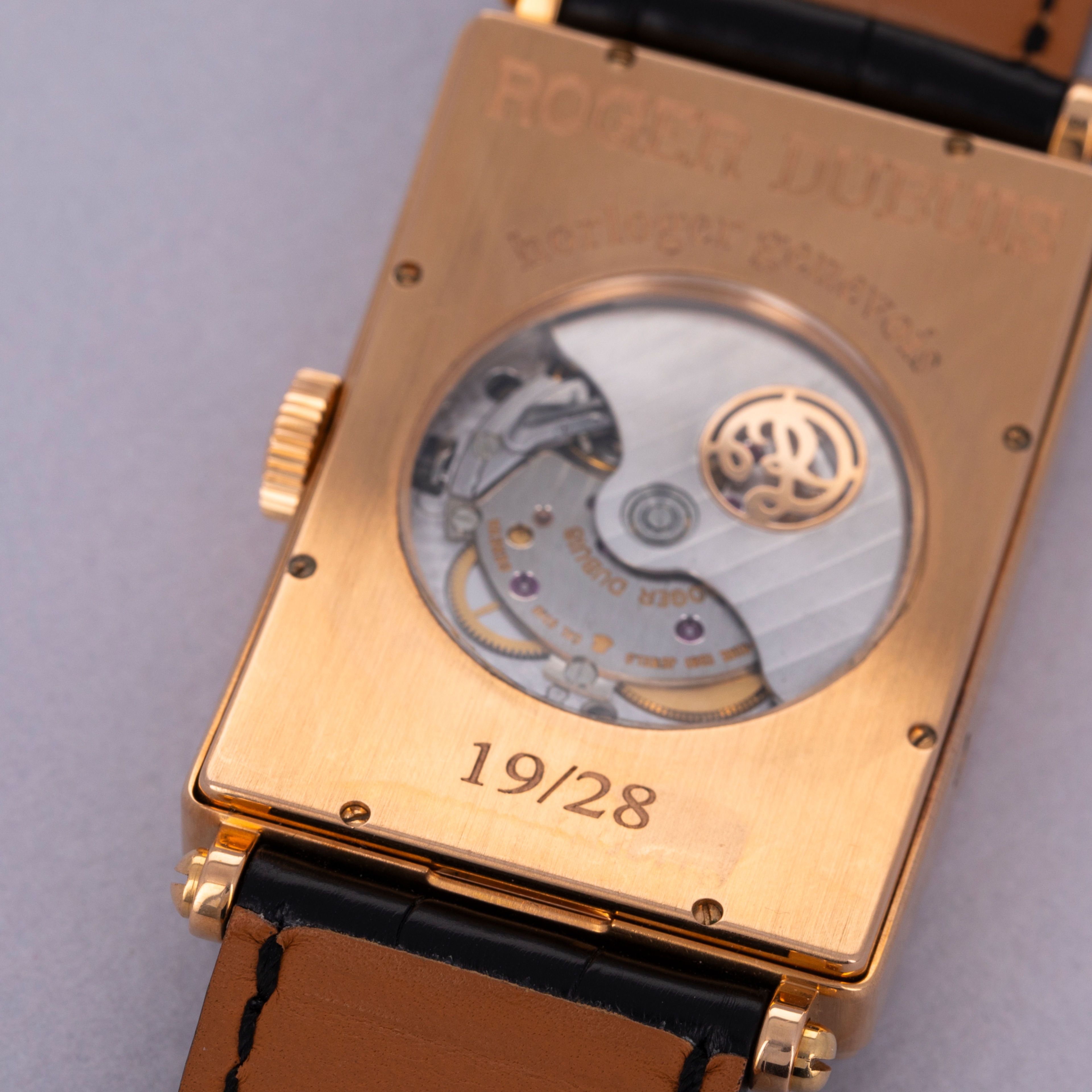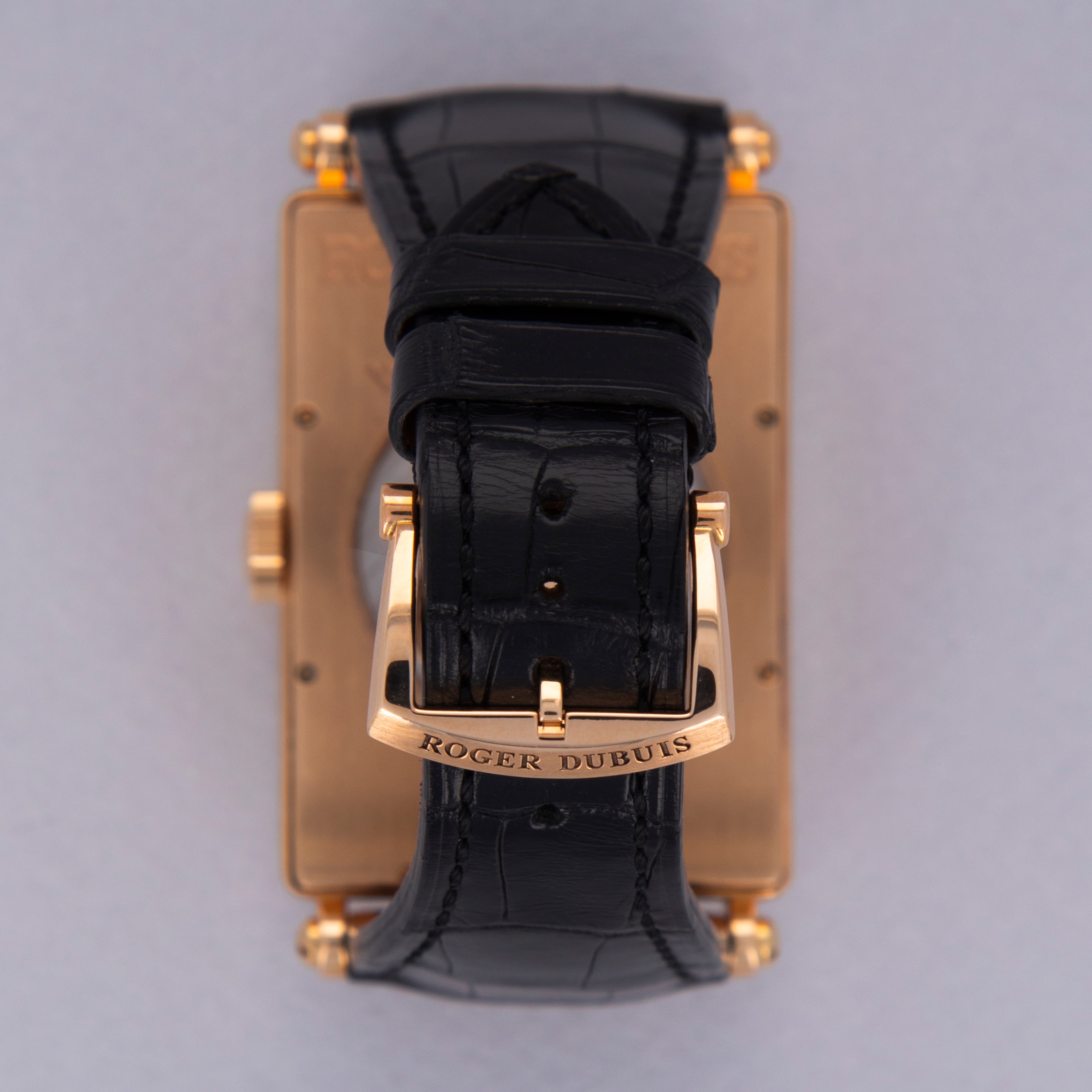 Fitted with a rectangular 18kt rose gold case with short lugs and a distinctive thin bezel with a small step, the Much More ref. M34's 34mm-wide case is refined and elegant - the perfect combination for a timepiece of Roger Dubuis' quality and styling.