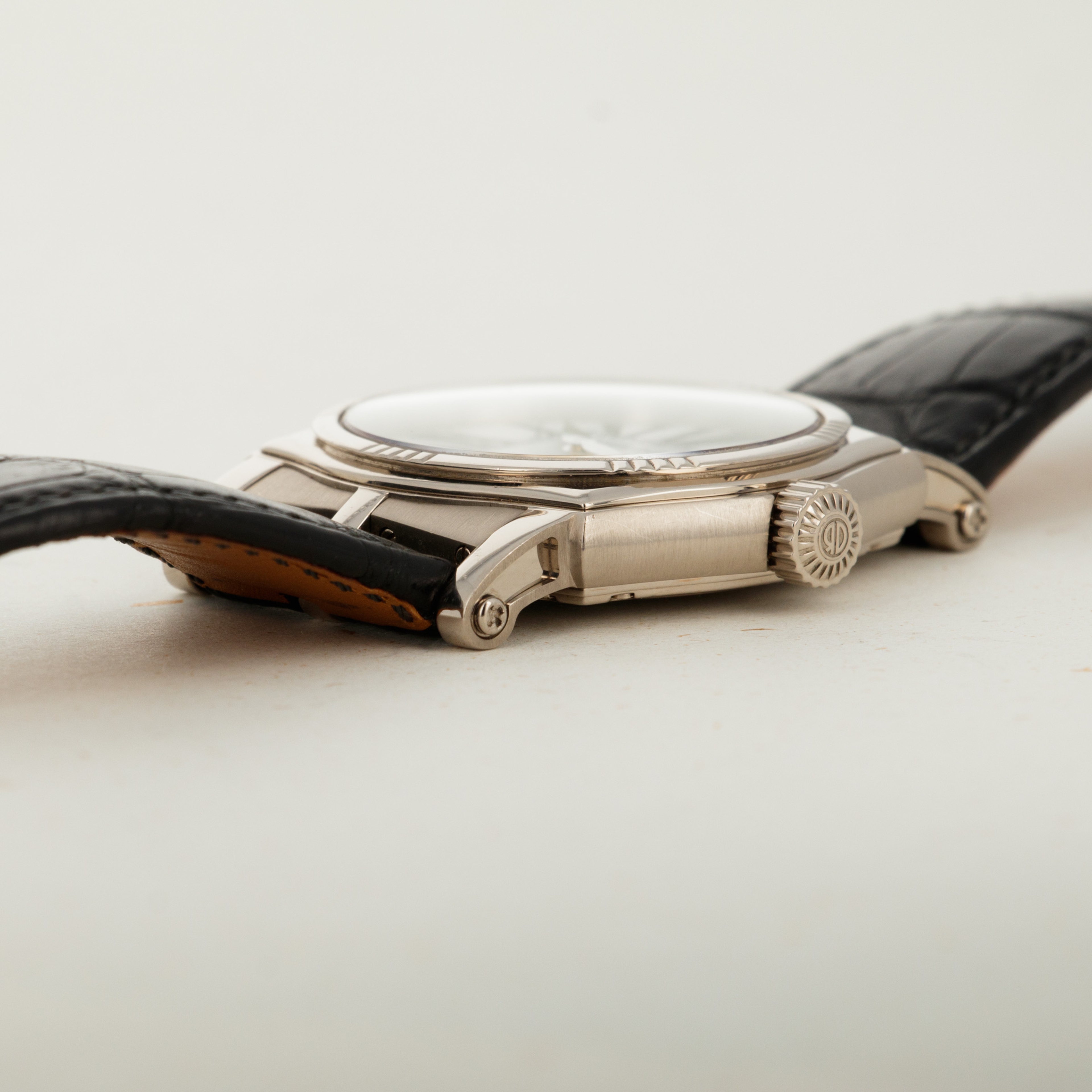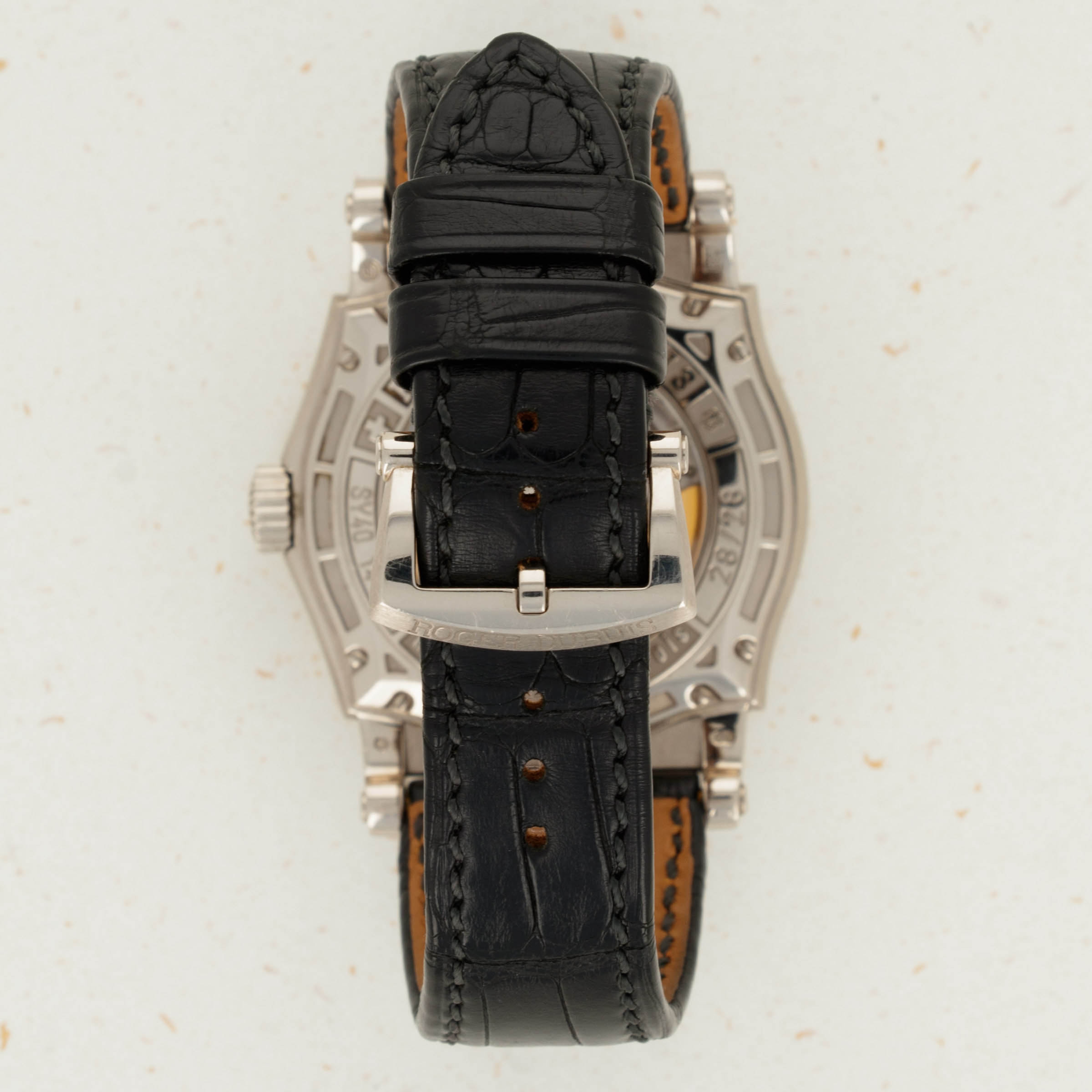 Made of 18k white gold, the Sympathie's elaborate construction is intriguing with its blend of curves, sharp lines, polished surfaces and contrasting brushed finishes giving it a truly dynamic aesthetic.