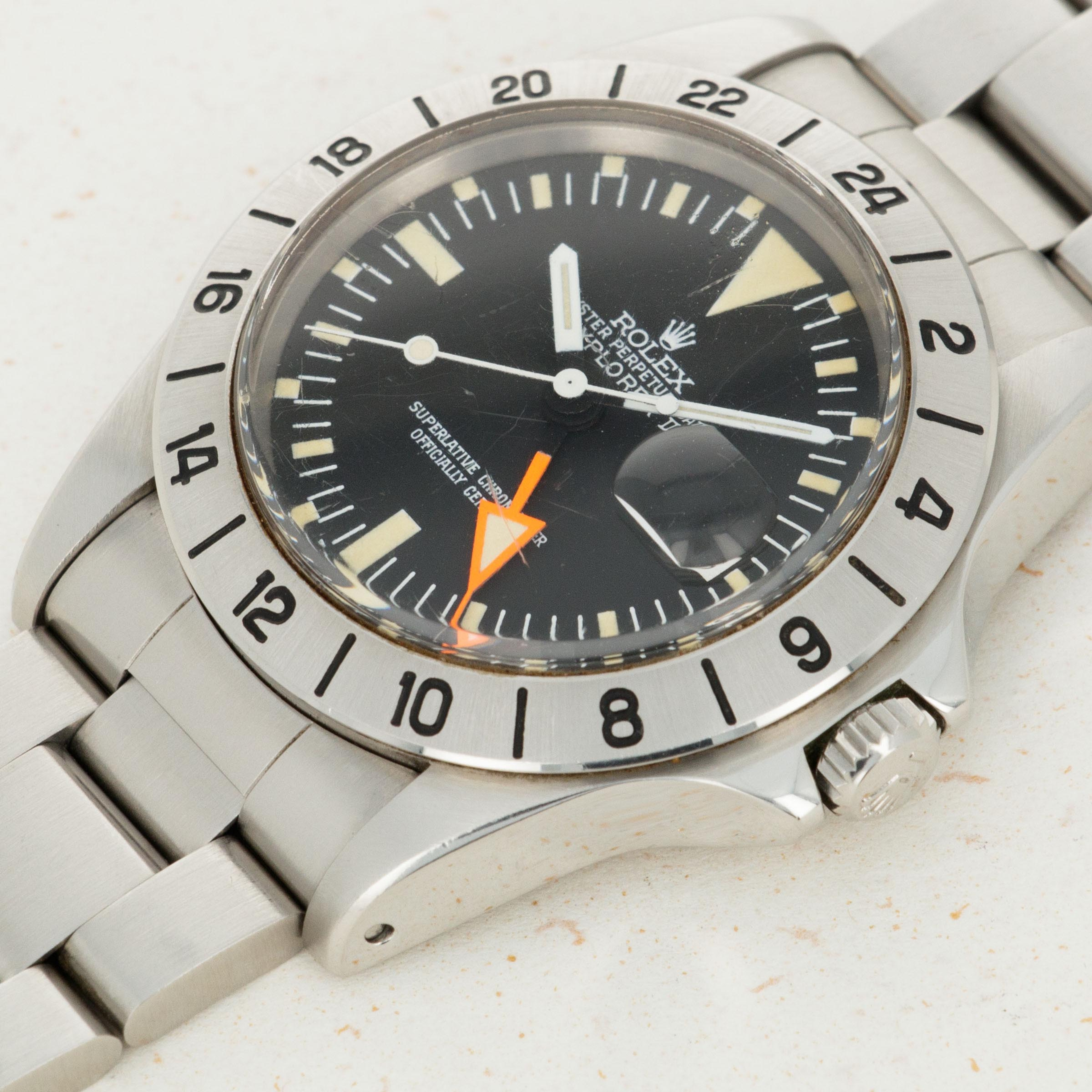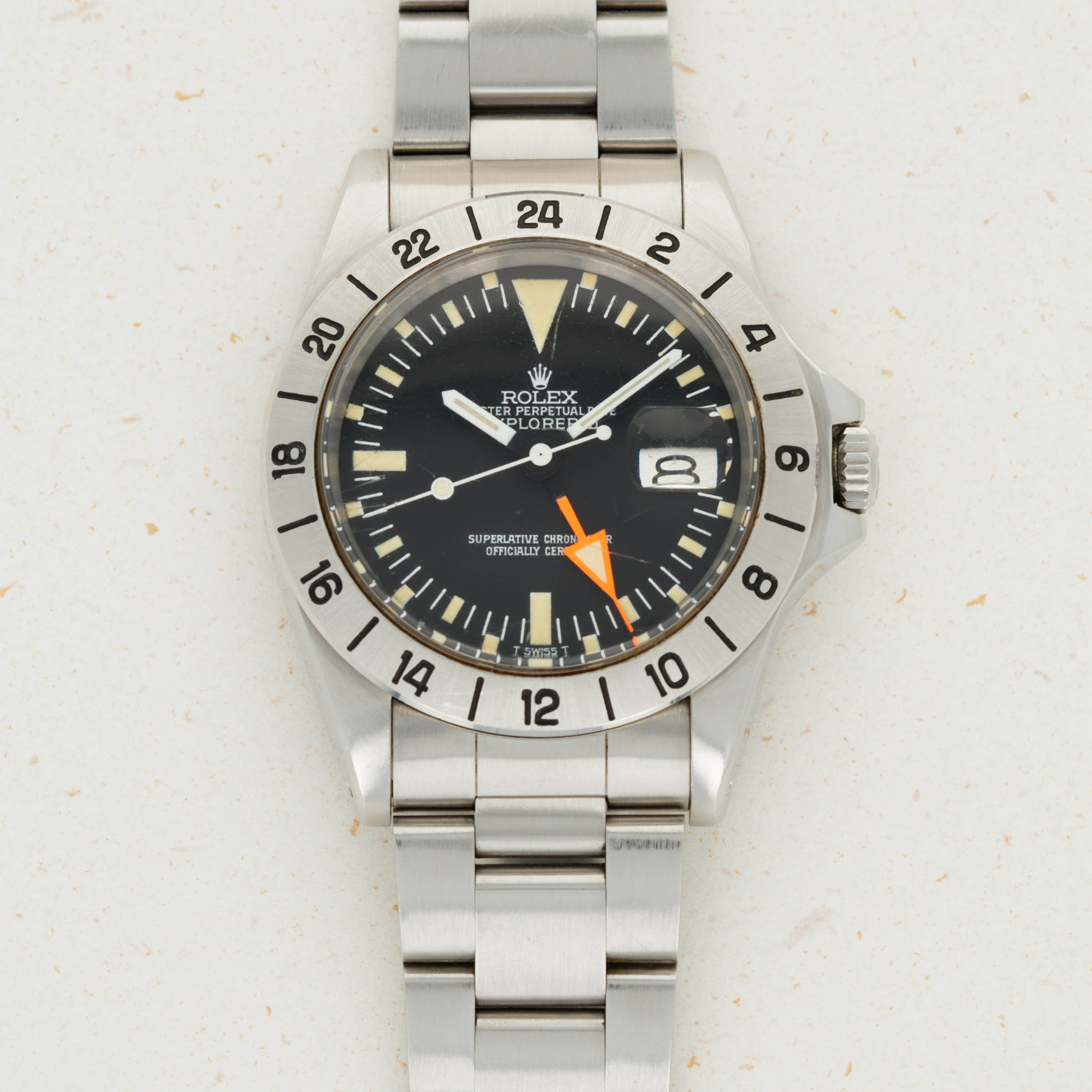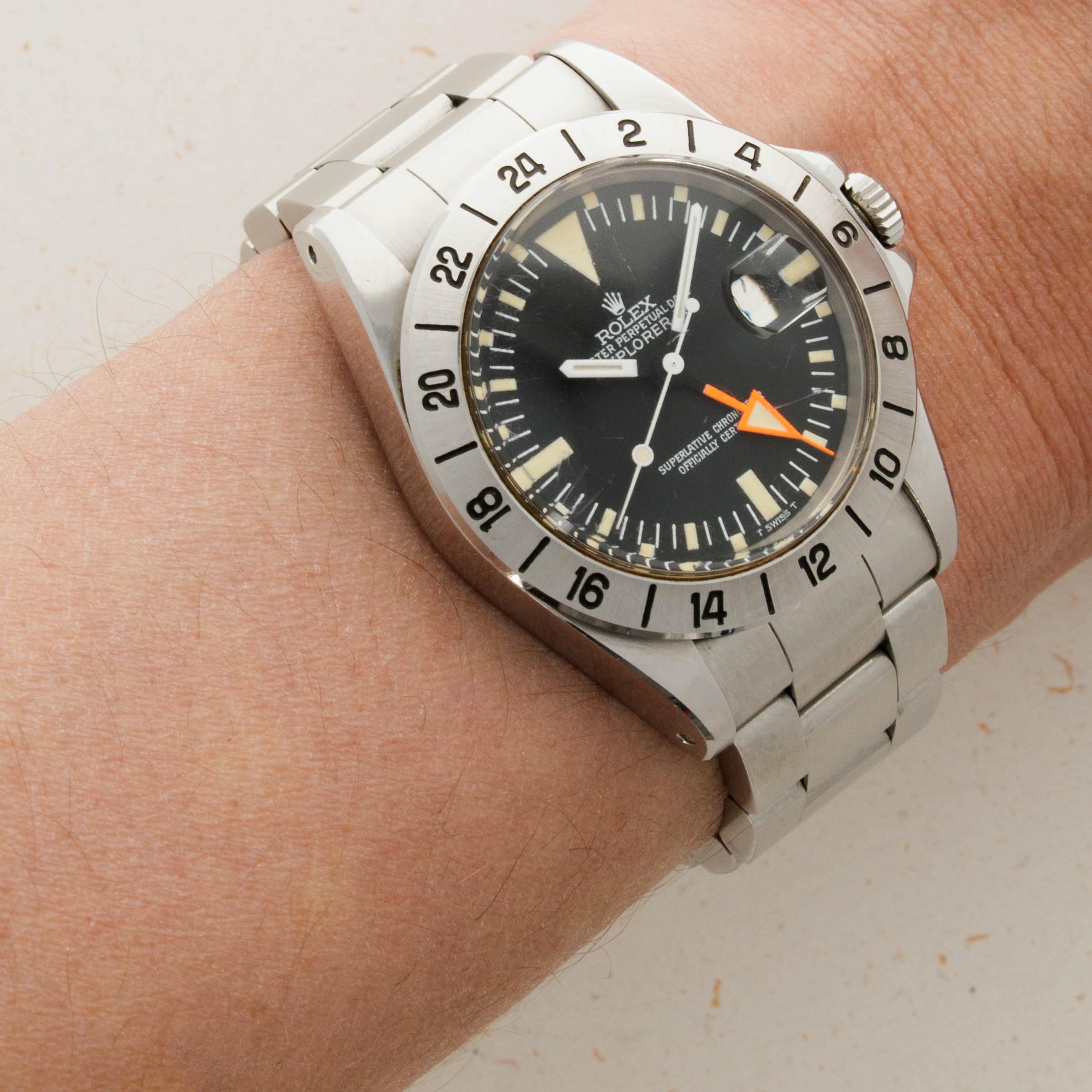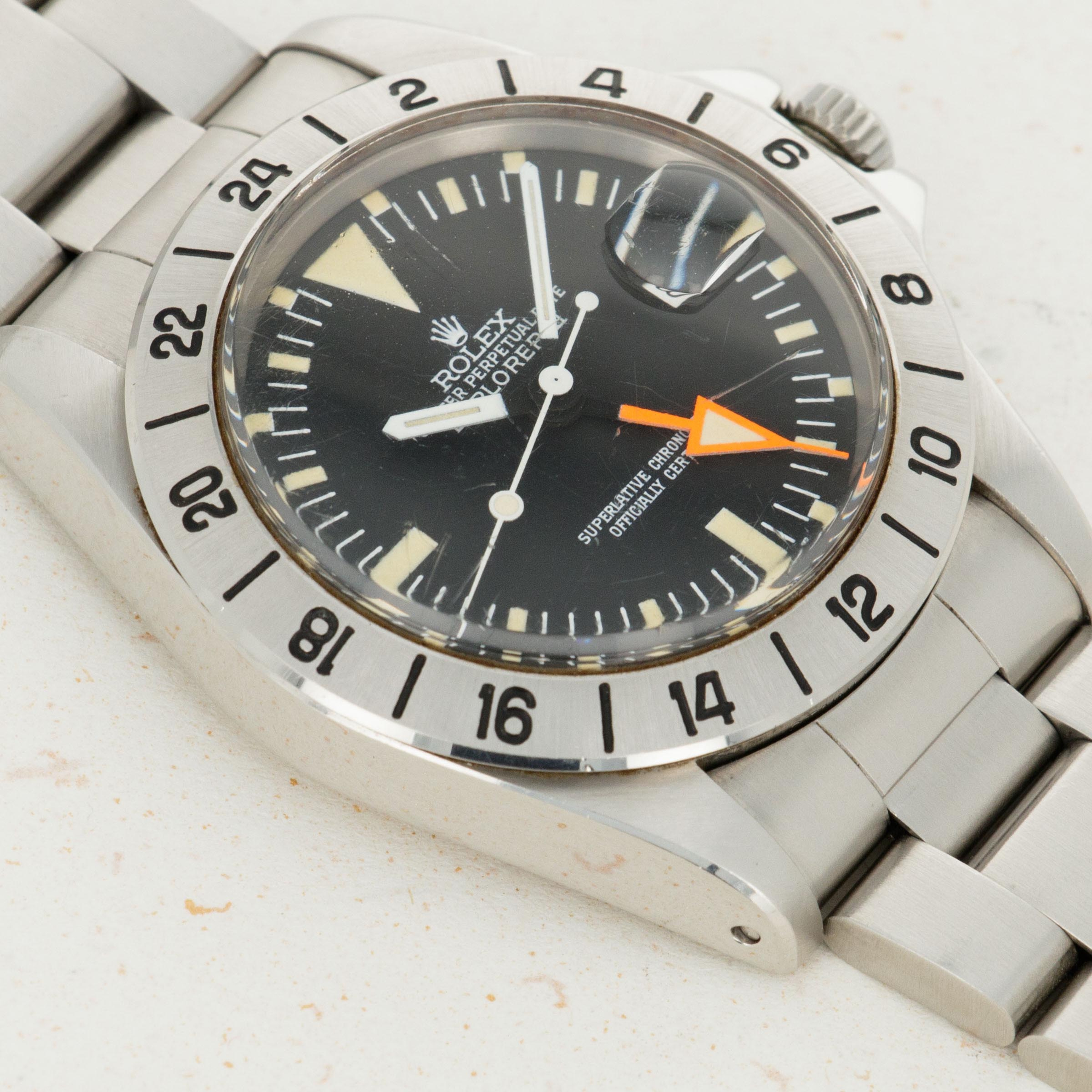 Fitted with one of watchmaking's most iconic hands, the ref. 1655 gave us the Explorer II's signature orange arrow-shaped GMT-hand which the collection still champions today.