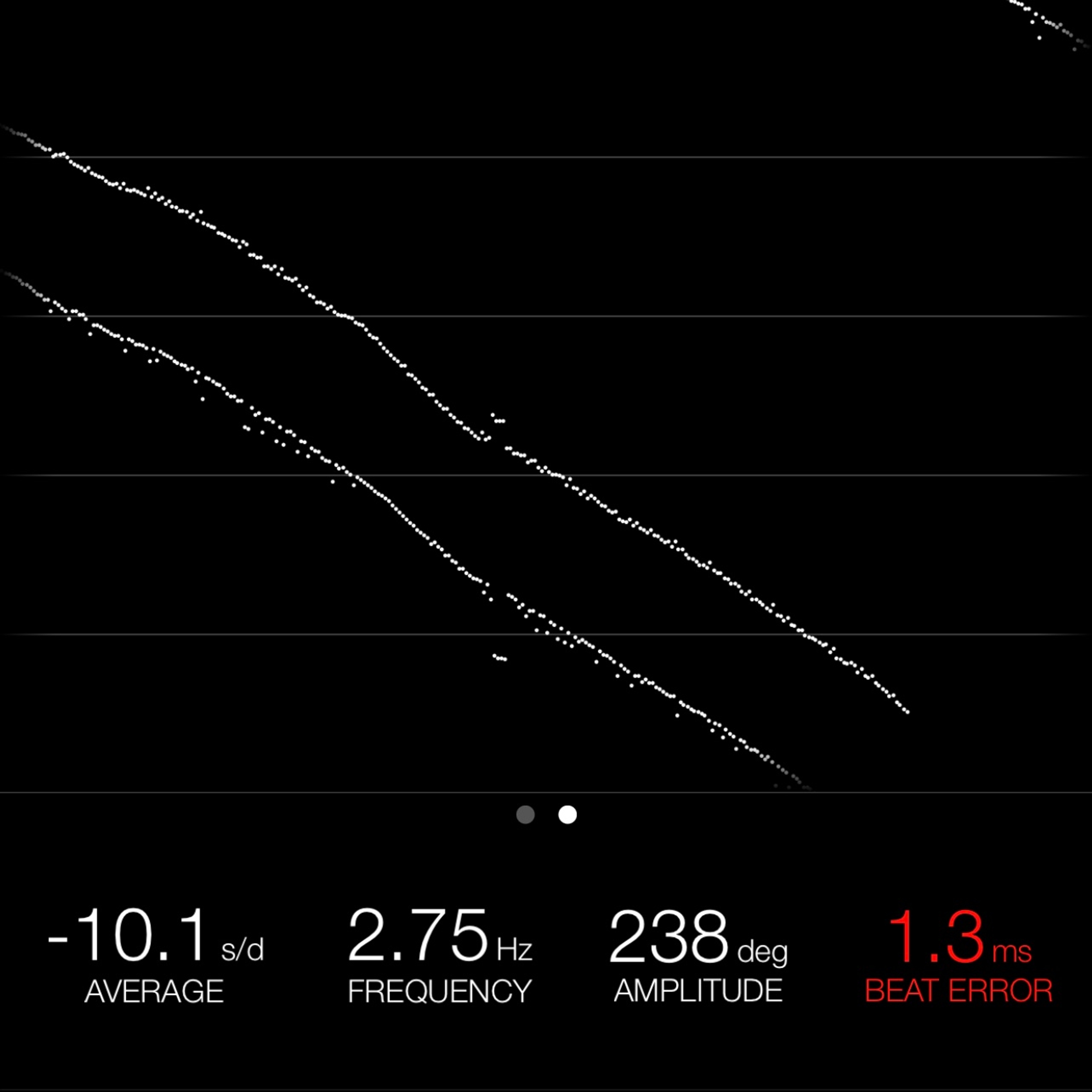 This reading was taken (crown down) with a ONEOF Accuracy Boutique Edition timing machine at time of cataloging. It is provided as a courtesy only, and shall not be construed as a warranty or guarantee of any kind. Please refer to our terms and conditions of sale for more information.