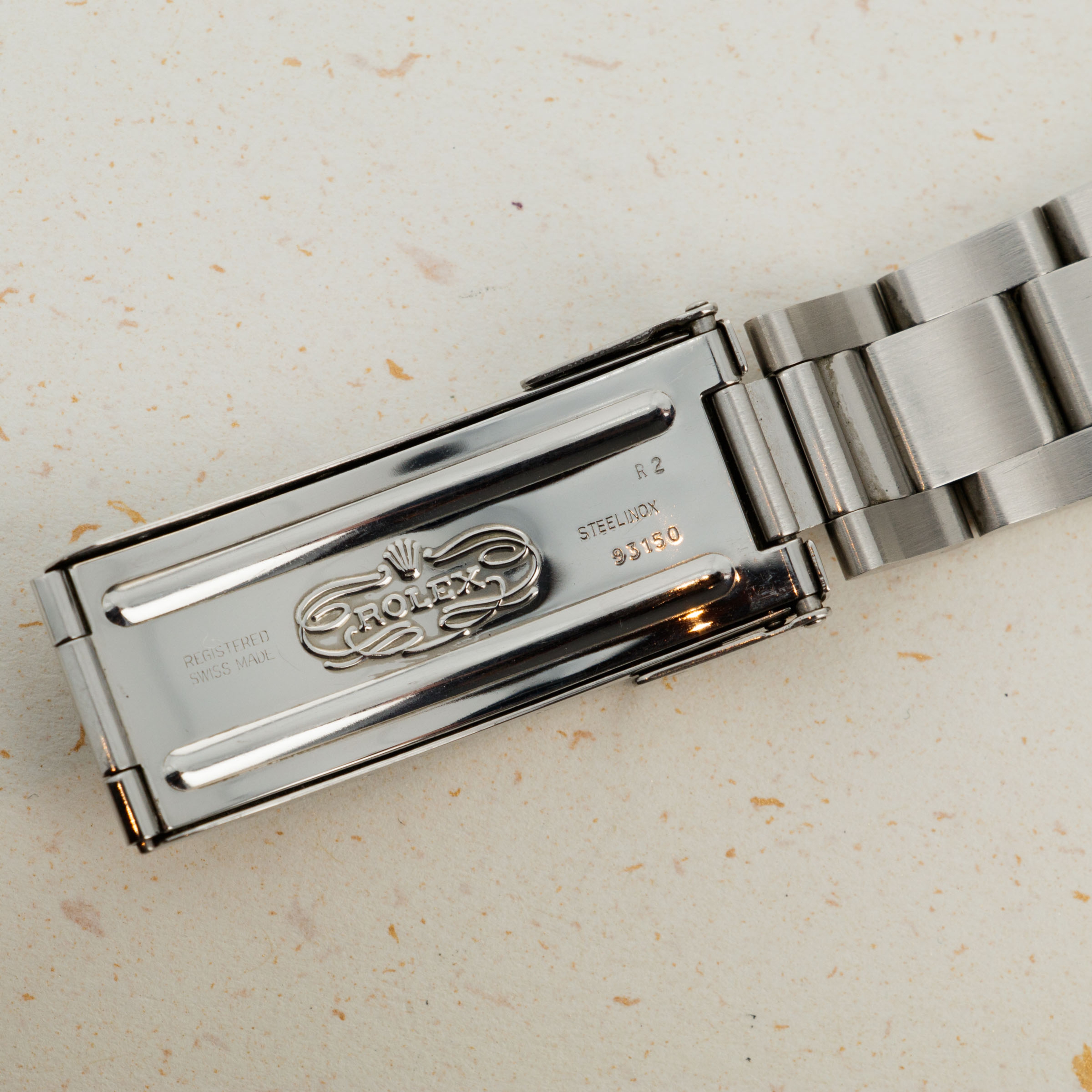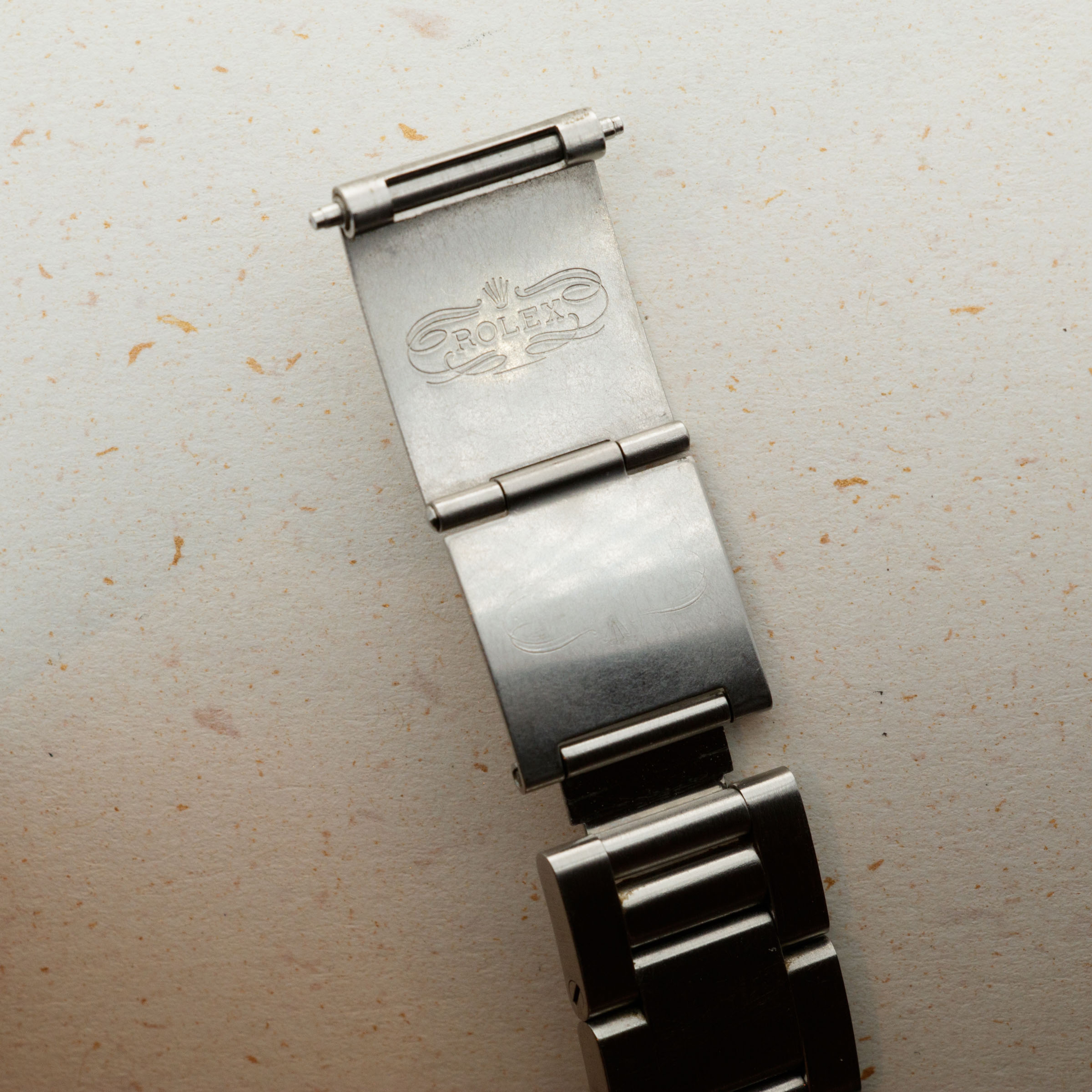 Watch is in overall excellent to near mint condition. The case has nice chamfered edges and thick lugs, and the bezel is mint with full enameled numbers, original surface finish, and sharp edge. Dial is mint, with nicely aged luminous with matching hands. The dial does not have any visible scratches or marks. The crystal does have some scratches as shown. It can easily be polished or replaced. The dial is known as a Mk3 "Rail Dial" due to the alignment of the words Certified and Chronometer. There watch comes on a later 91350 oyster fliplock bracelet with 11 links (1 removable).