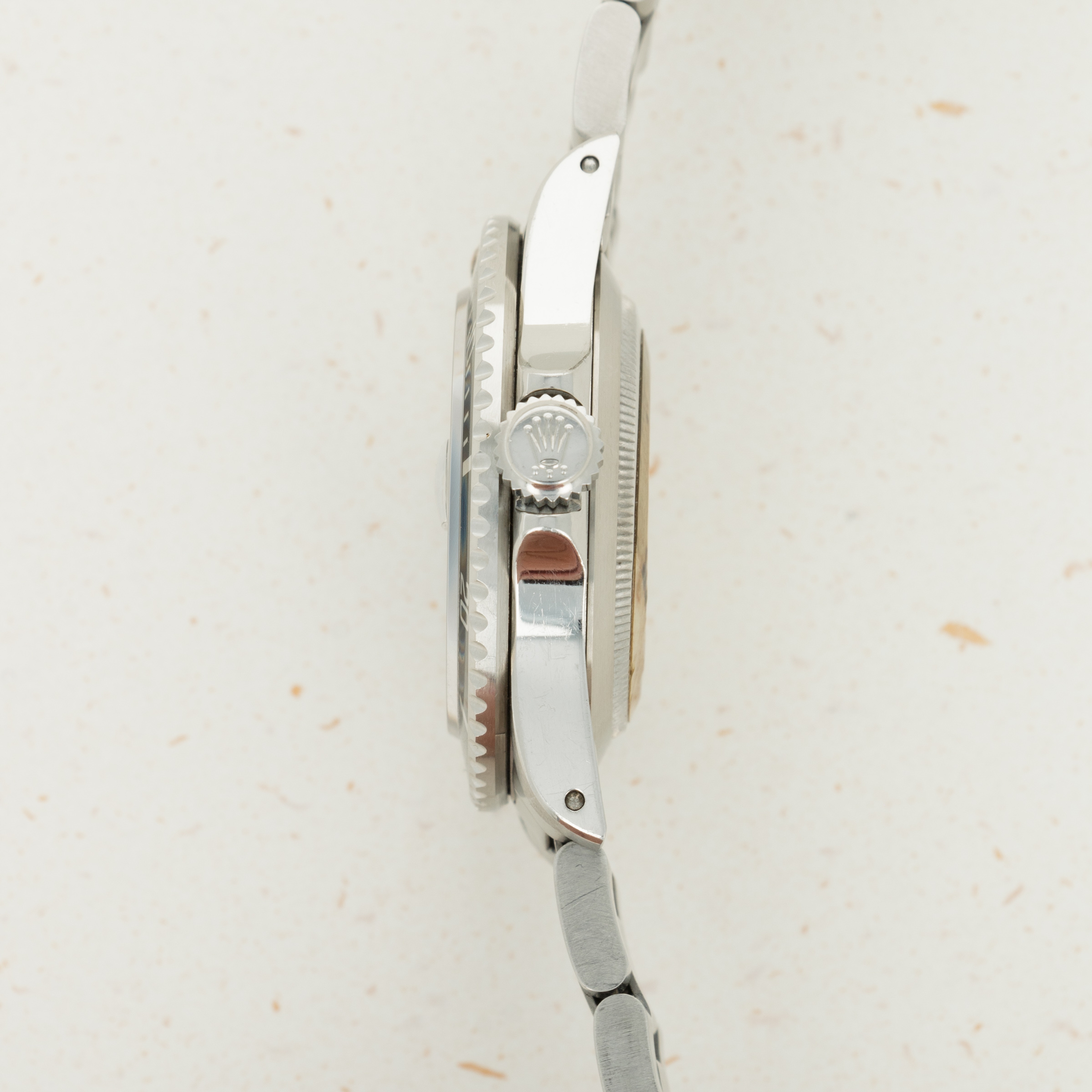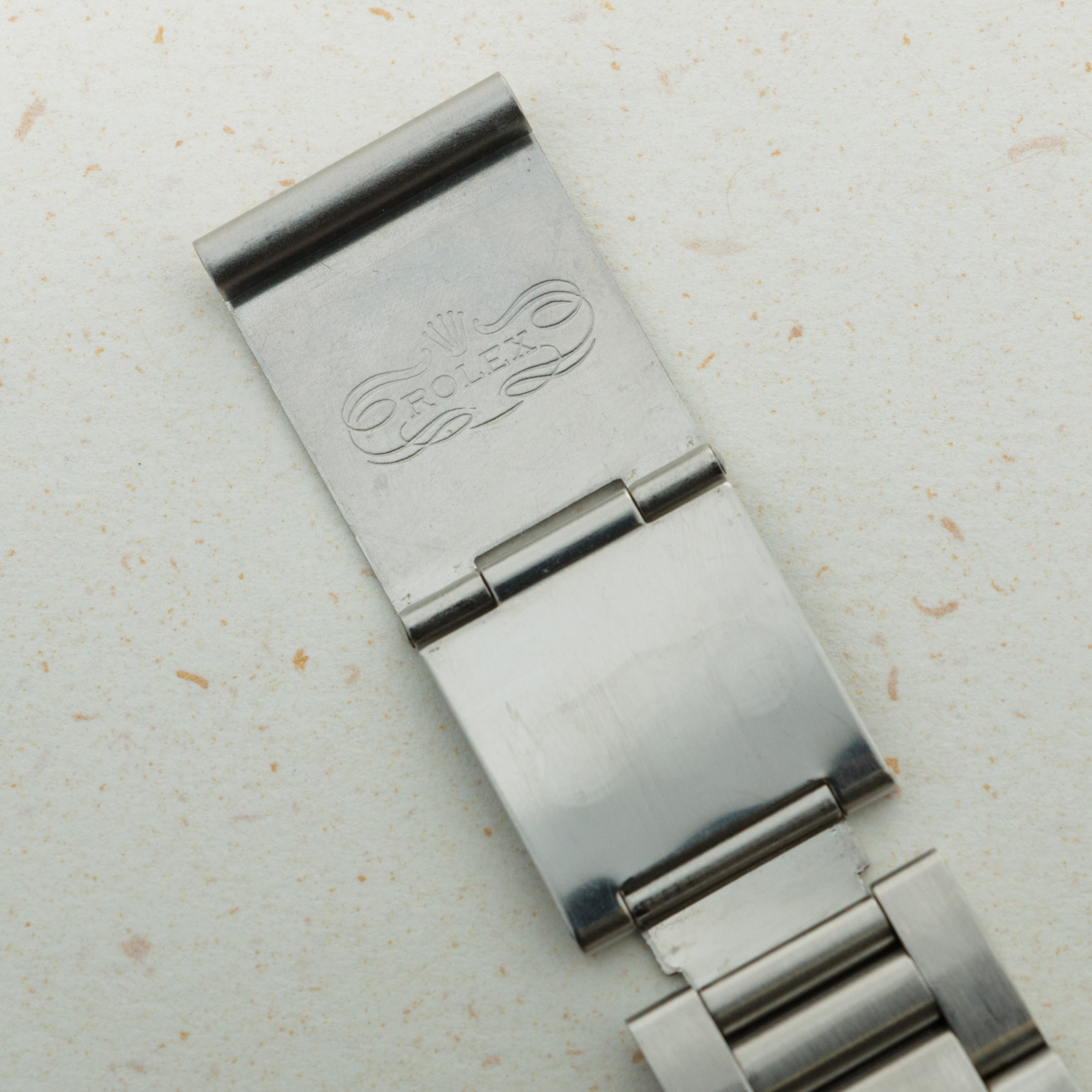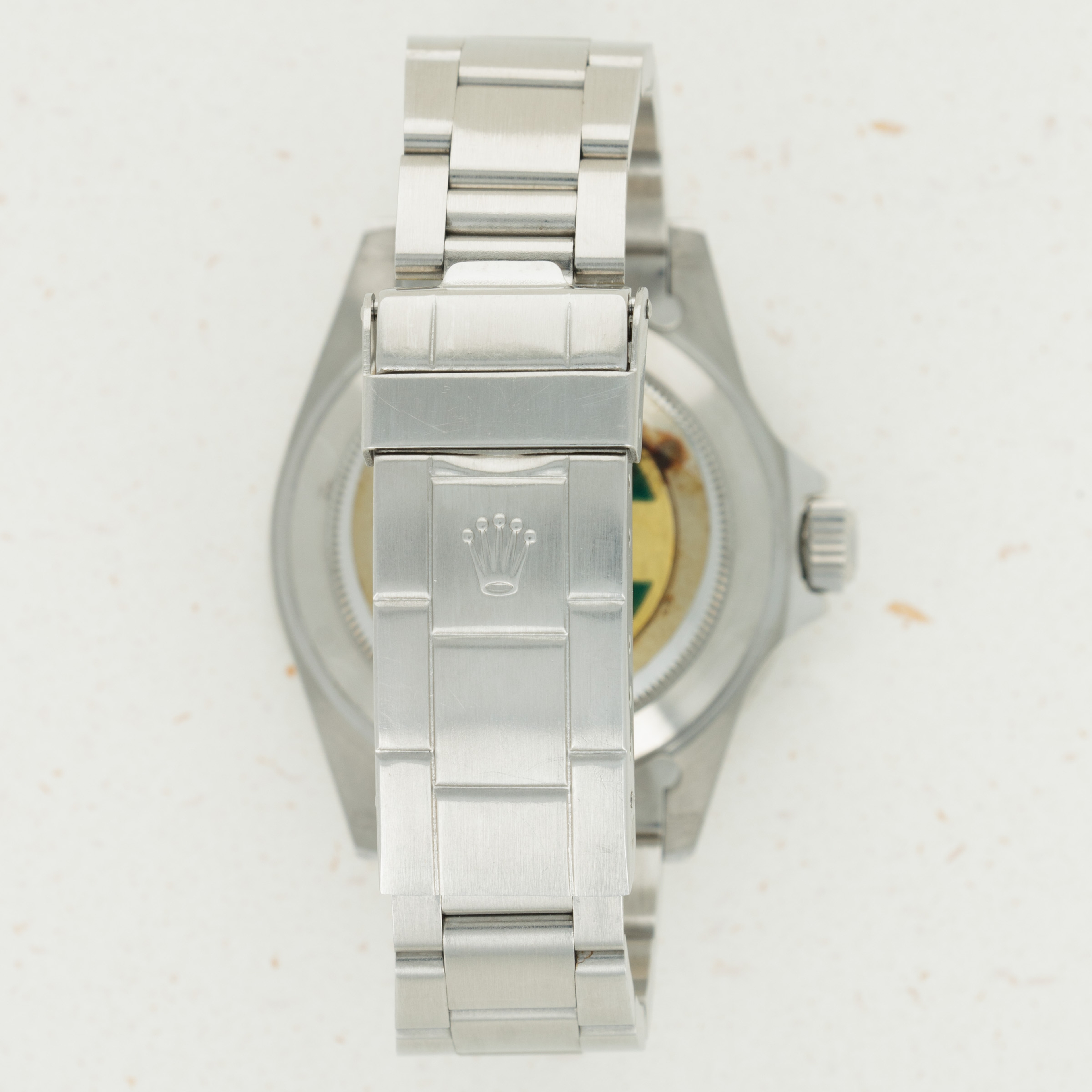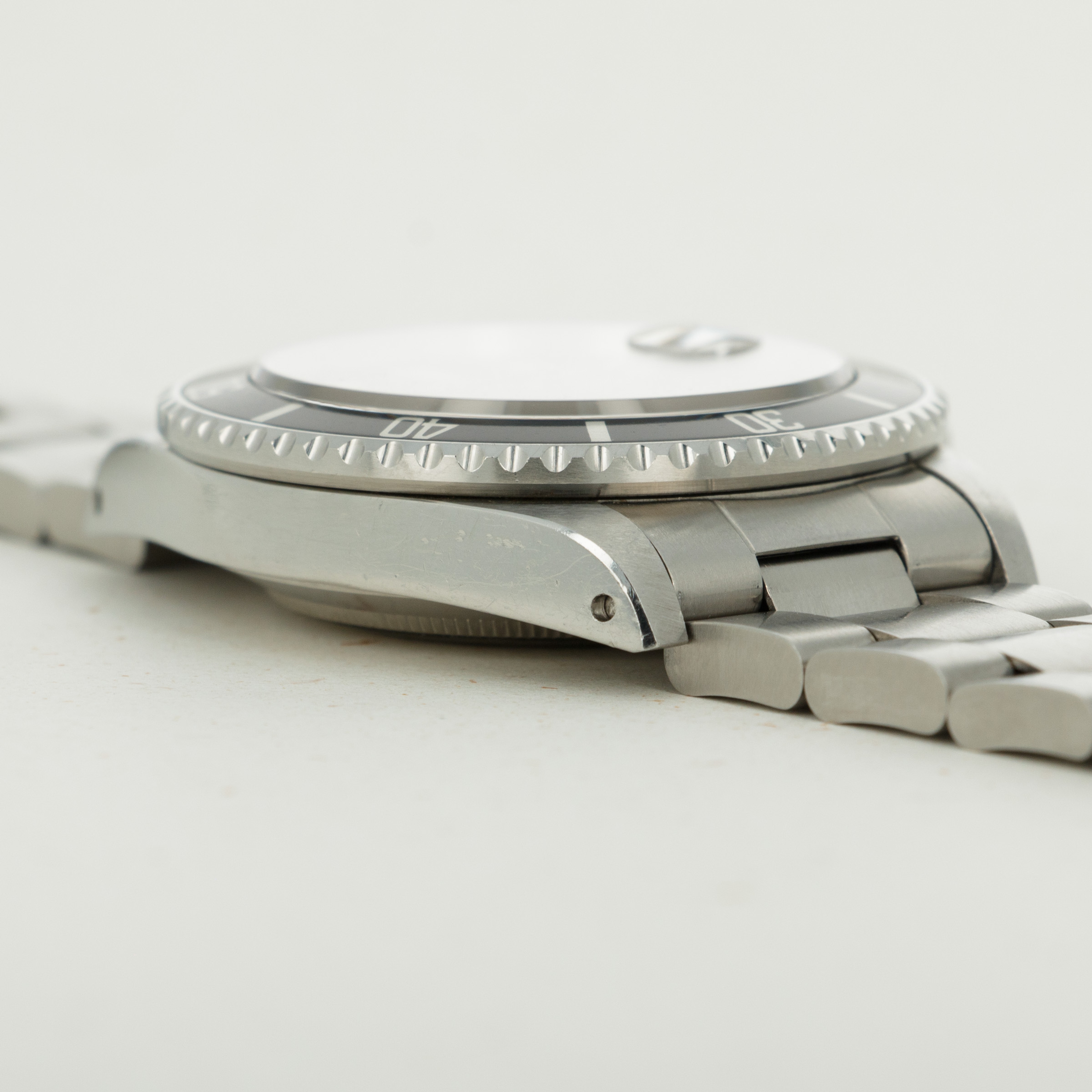 The overall condition of the watch is near-mint. Dial is flawless, with strong even patina. Hands are matching, however there is some oxidation on the hands. Bezel is very sharp with no signs of previous polish. Caseback retains the full original caseback sticker from the time it was new, and case presents as overall near-mint with minor surface wear albeit strong original chamfers. Light surface abrasions visible throughout the band. There are currently 10 links in the bracelet, with one additional link on the side.