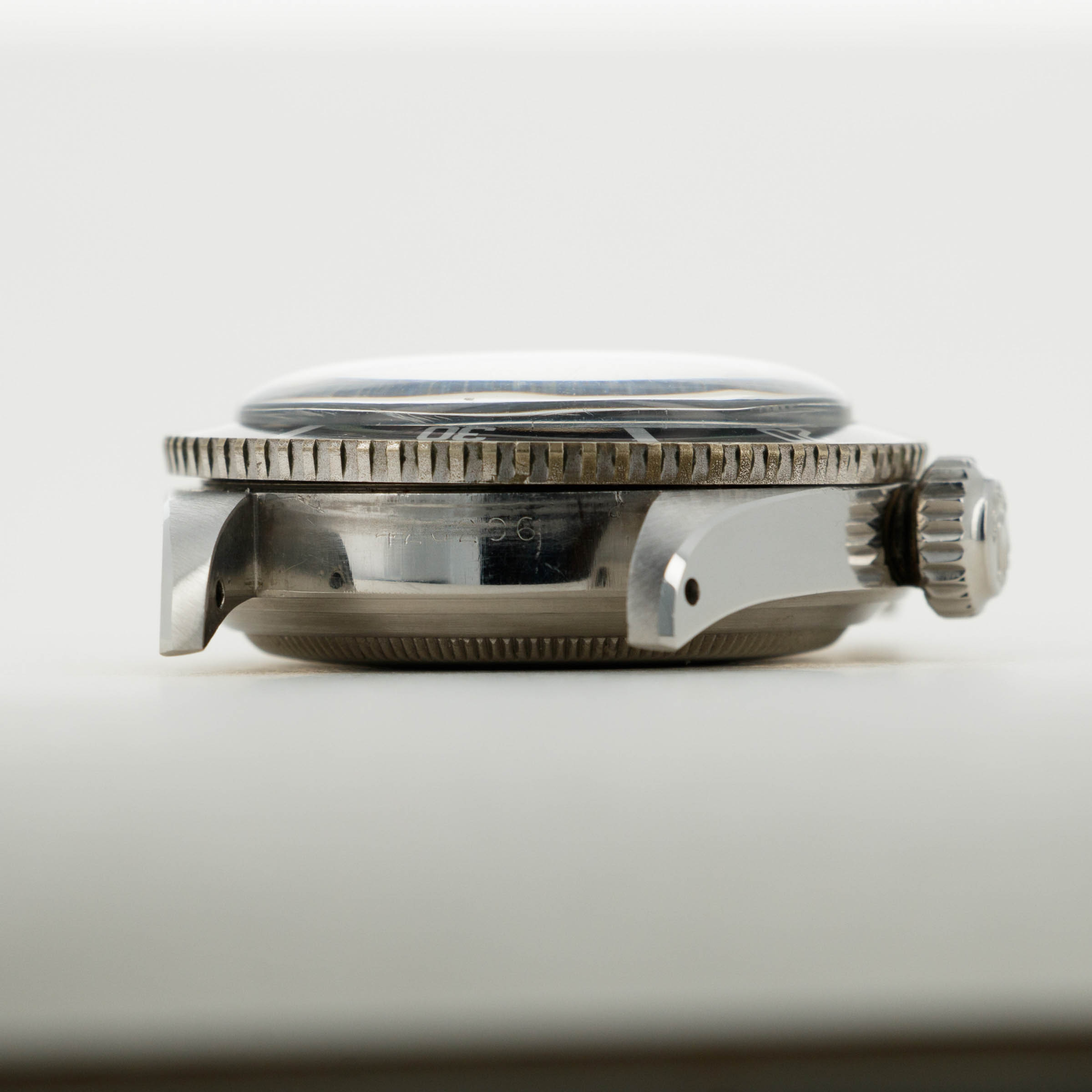Famed for its time on Sean Connery’s wrist as James Bond in the 1962 Bond movie Dr. No, the Rolex Submariner ref. 6538 is one of the most highly-coveted Submariner references around today. Released in 1955, the ref. 6538 introduced the upgraded cal. 1030 to the Submariner collection alongside a thinner case with increasingly beveled lugs and a noticeably larger 8mm winding crown, which is left uncovered thanks to the reference’s lack of crown guards – a feature only added with the ref. 5512. Iconic for its unique design and time on the silver screen, the ref. 6538 is available as either a two-line or four-line variant. Aside from the extra lines of text, the four-line variant features a COSC-certified movement, which was a first for the Submariner collection, with the two-line variants, as we have here, lacking that COSC certification, yet retaining the cleaner-looking dial, which collectors often prefer in lieu of the upgraded movement.