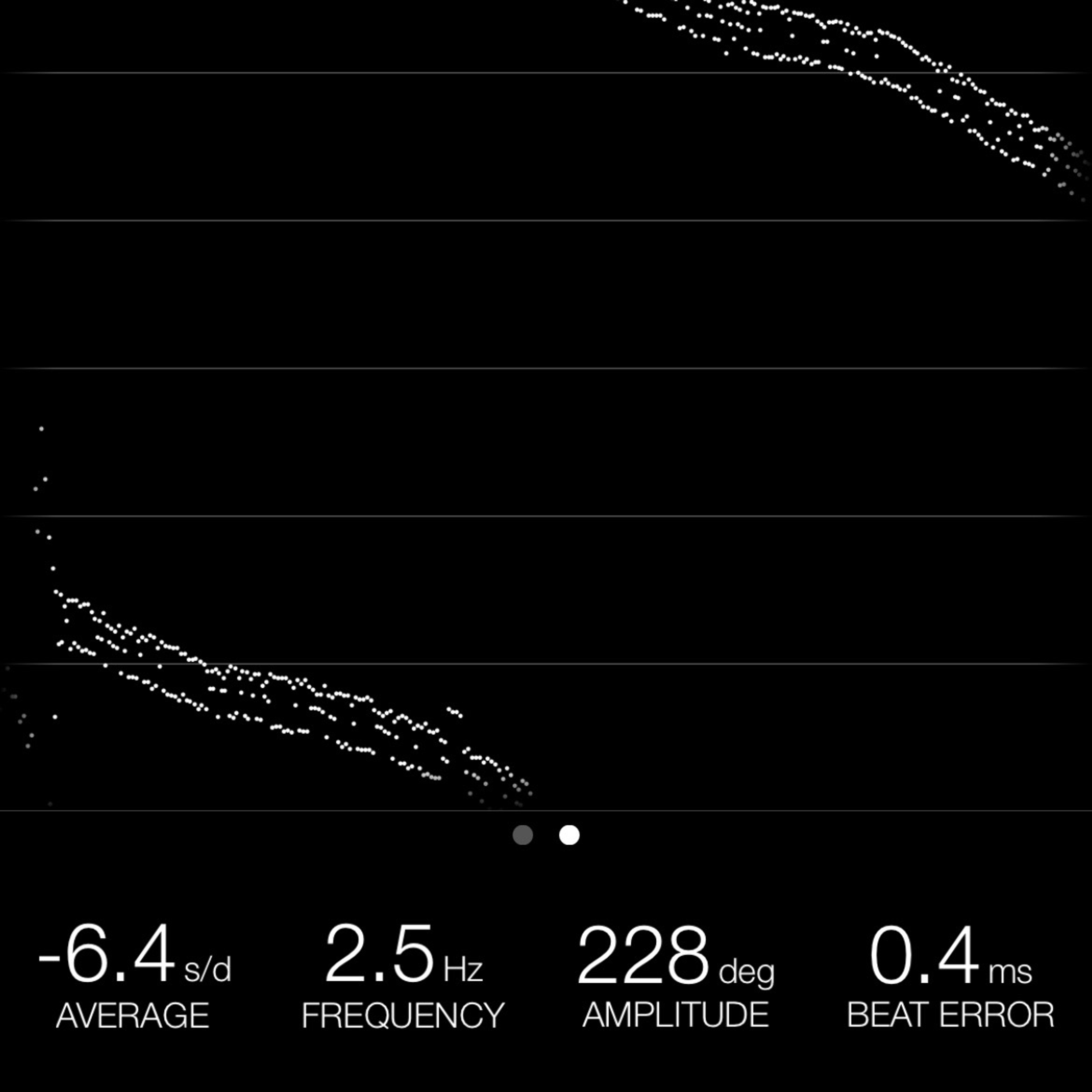 This reading was taken (crown down) with a ONEOF Accuracy Boutique Edition timing machine at time of cataloging. It is provided as a courtesy only, and shall not be construed as a warranty or guarantee of any kind. Please refer to our terms and conditions of sale for more information.