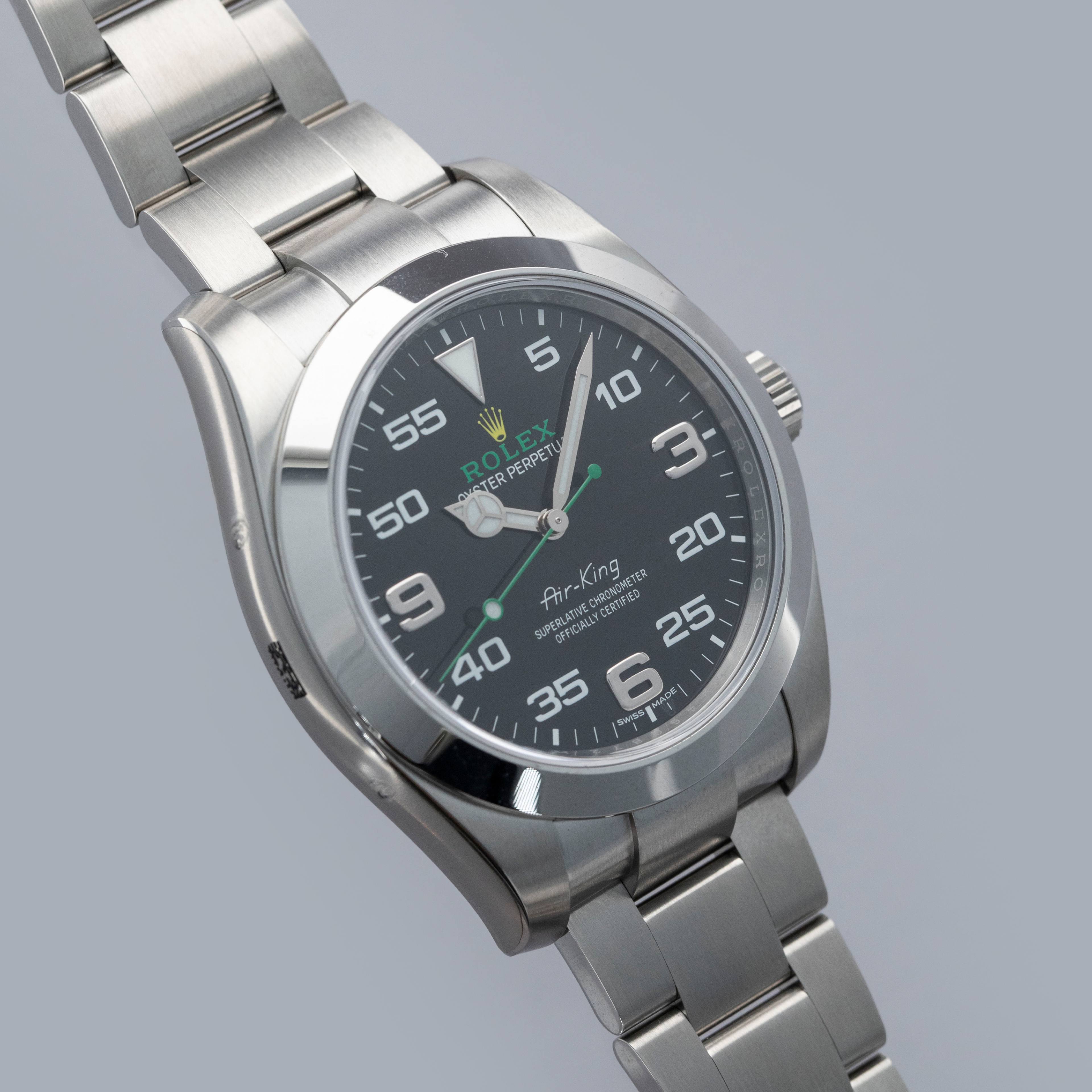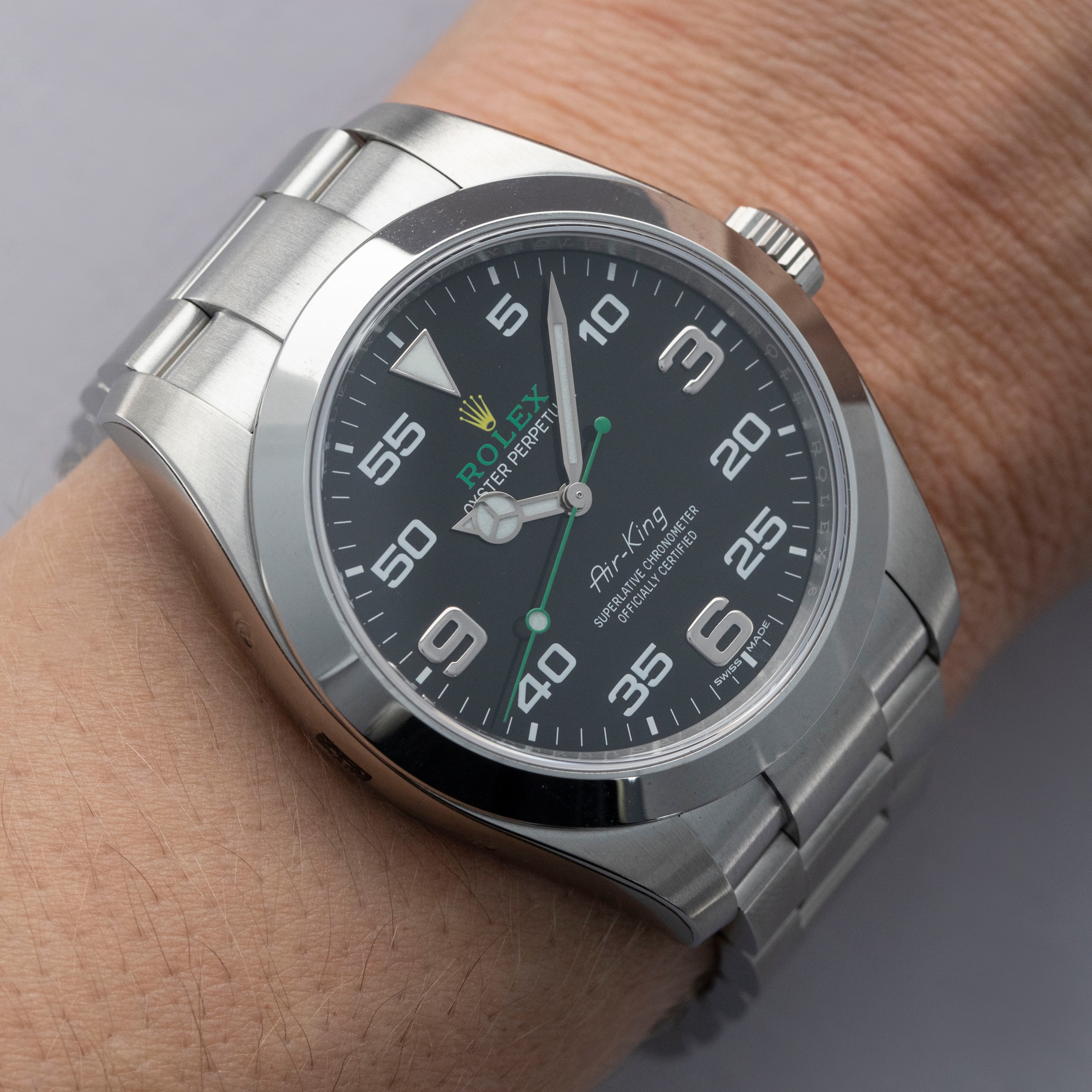 First released in 1945 in honor of the British RAF following their efforts in WWII, the Air-King has become one of the longest-serving members of Rolex’s catalog, with its official debut as a standalone collection, as we know it today, tracing its origins a little bit more recently to 1958. Since then, the collection has become one of Rolex’s most unique collections, with its design and construction often used as a means to push aesthetic boundaries and experiment with design in a way that few other collections within the Rolex family could. As such, the Air-King collection has been found to sport a vast expanse of dial colors and set-ups, with different bezel configurations and a large variety of sizes.