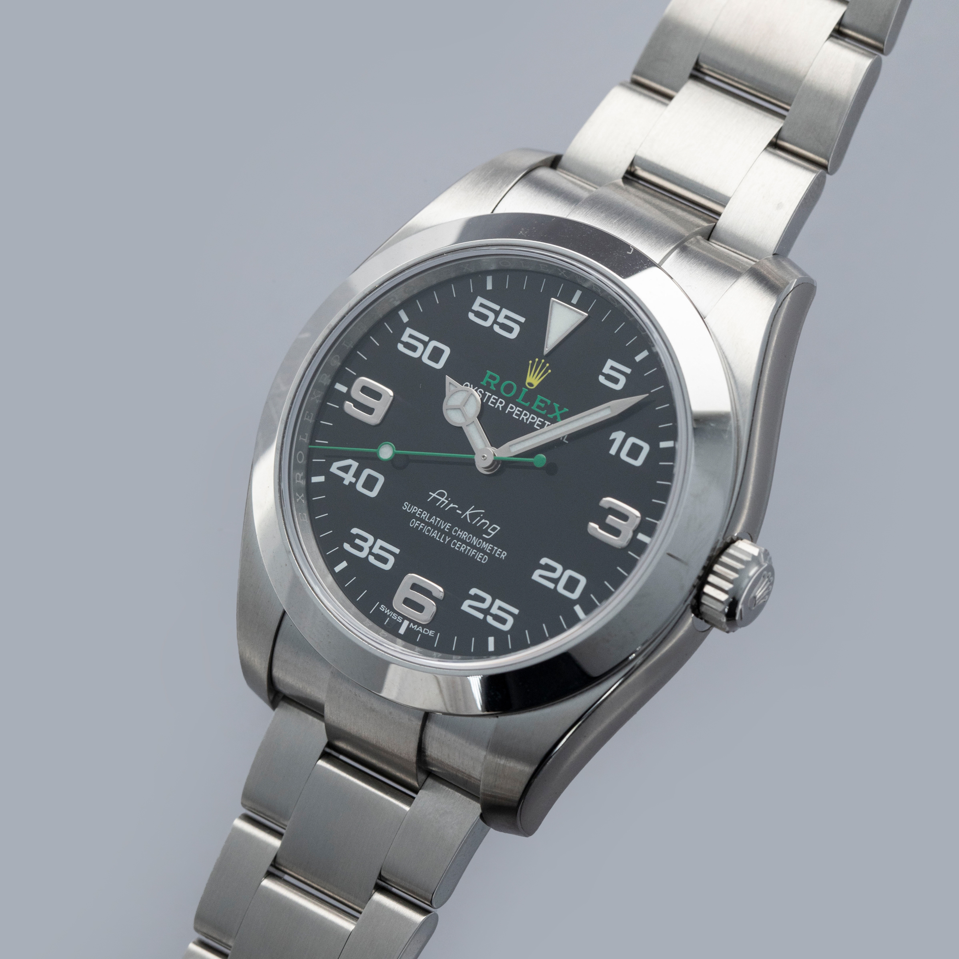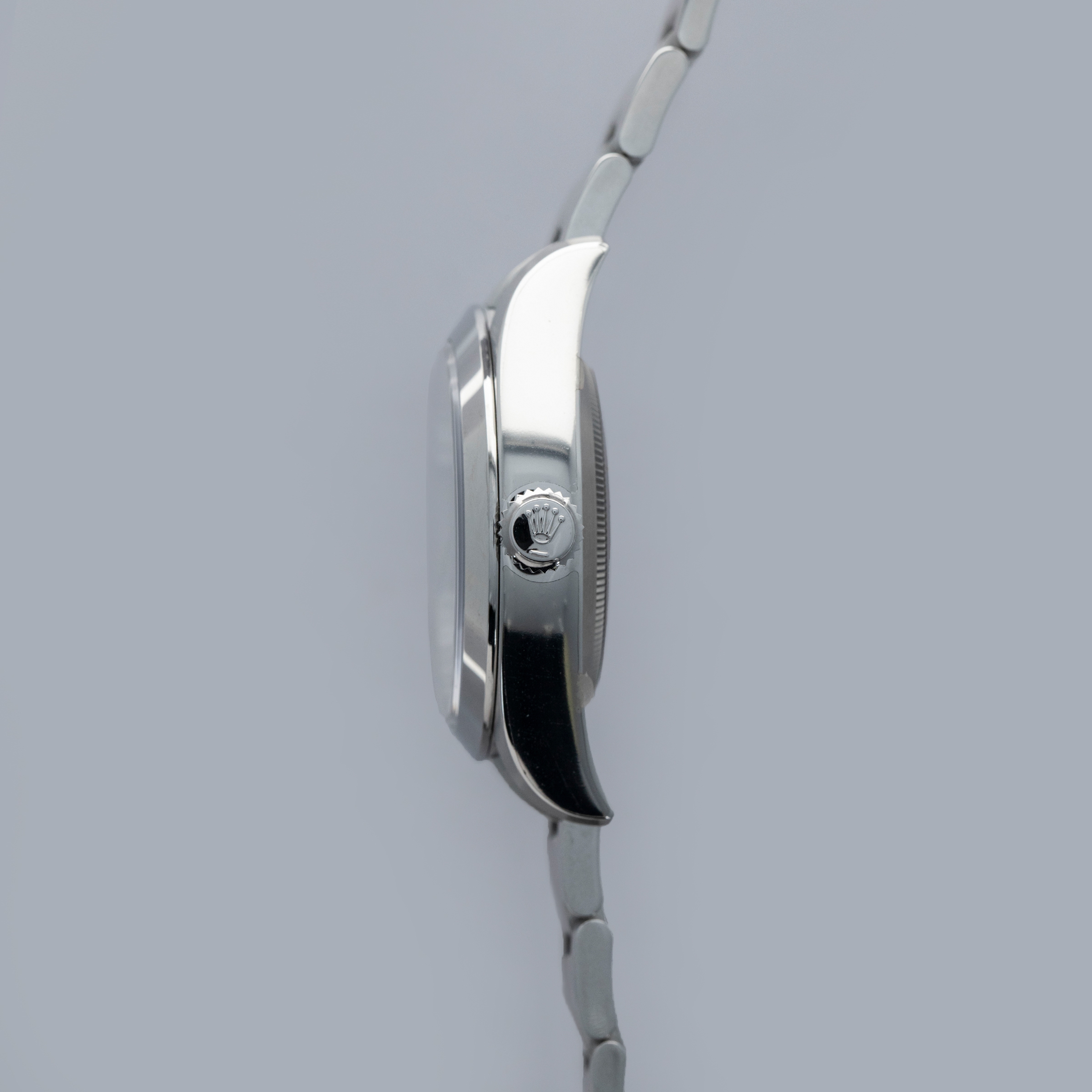 Released in 2016 following a 2-year hiatus, the Air-King ref. 116900 reintroduced the iconic collection back to Rolex’s catalogue with a bang. Modernized with a new 40mm case, a new movement and a fresh, playful dial design donning a large set of 3, 6 and 9 numerals, the Air-King was crowned with an inverted triangle at the 12 position and a minute scale that replaced traditional hour markers, so the 1 o’clock position showed 5 minutes, 2 o’clock 10 minutes and so on. Inspired by the Bloodhound LSR, a vehicle used to try break the land speed record, that Rolex supplied the gauges and dials for, the ref. 116900 showcased Rolex’s desire to continue pushing boundaries and supporting those who endeavour to do so. Discontinued in 2022, the ref. 116900 will always be remembered for reviving the Air-King collection and keeping a part of Rolex’s heritage alive.