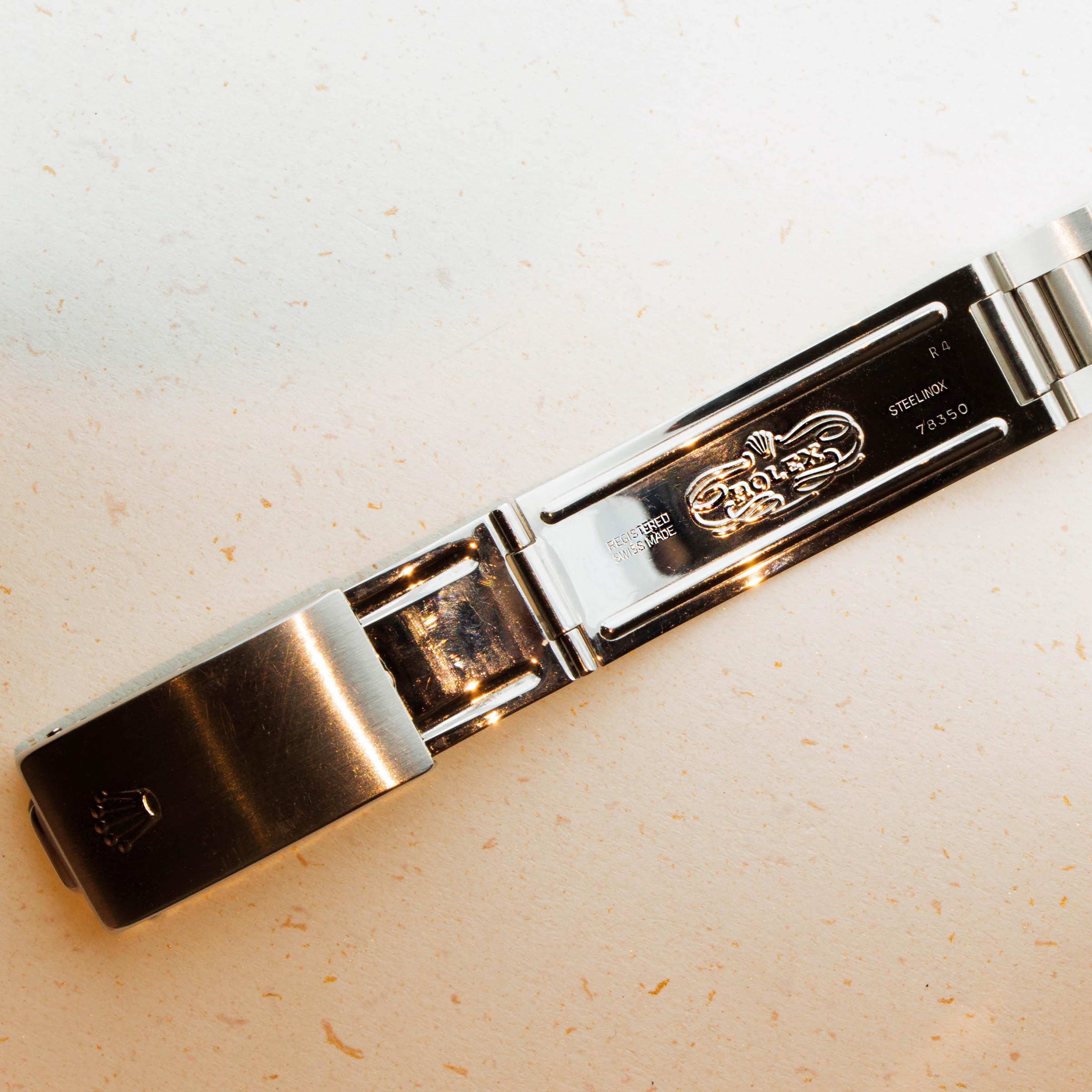 Watch is in excellent overall condition. Case has sharp edges and clean surfaces, with only minor wear visible. A worn caseback sticker is still affixed to the caseback. Dial has a custom-printed Ferrari logo applied at 6 o'clock. It was not done by Rolex and is an aftermarket customization done by a previous owner. The watch comes on an oyster bracelet with 12 links total, 2 of which are removable. It currently fits a 7" wrist. There is an additional like included with the sale. The bracelet shows minimal stretch.