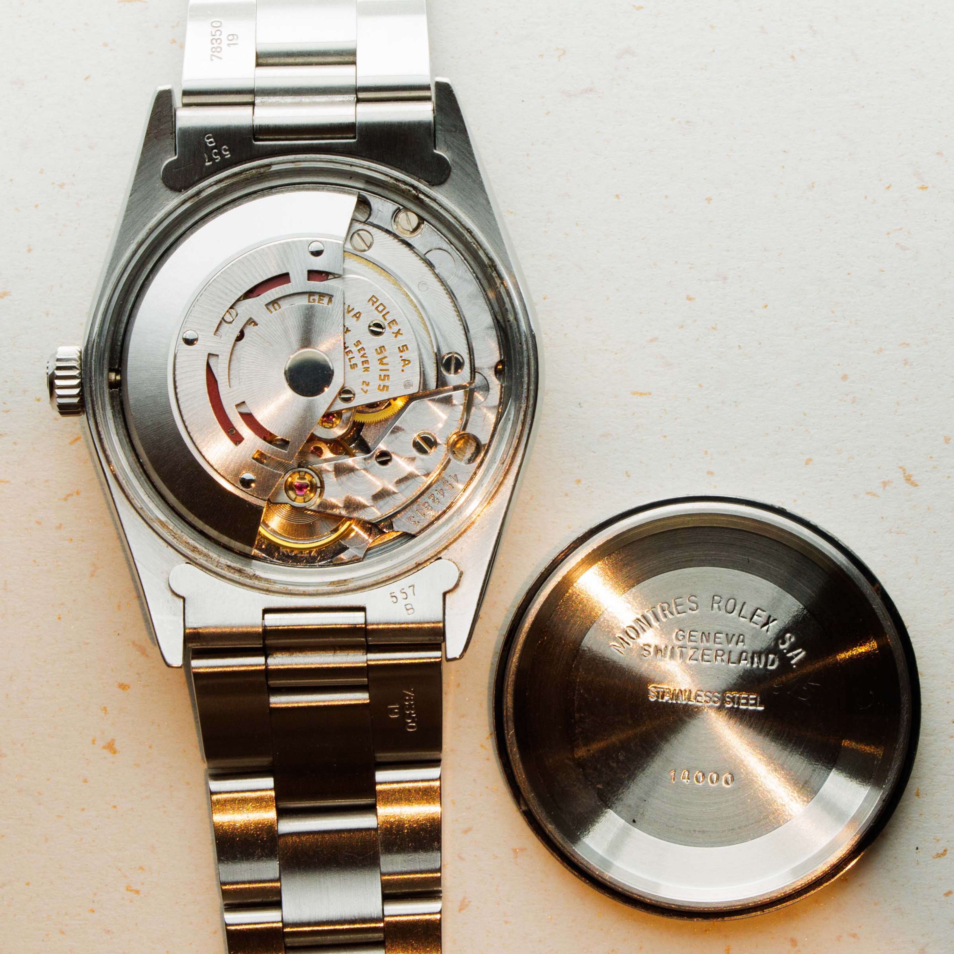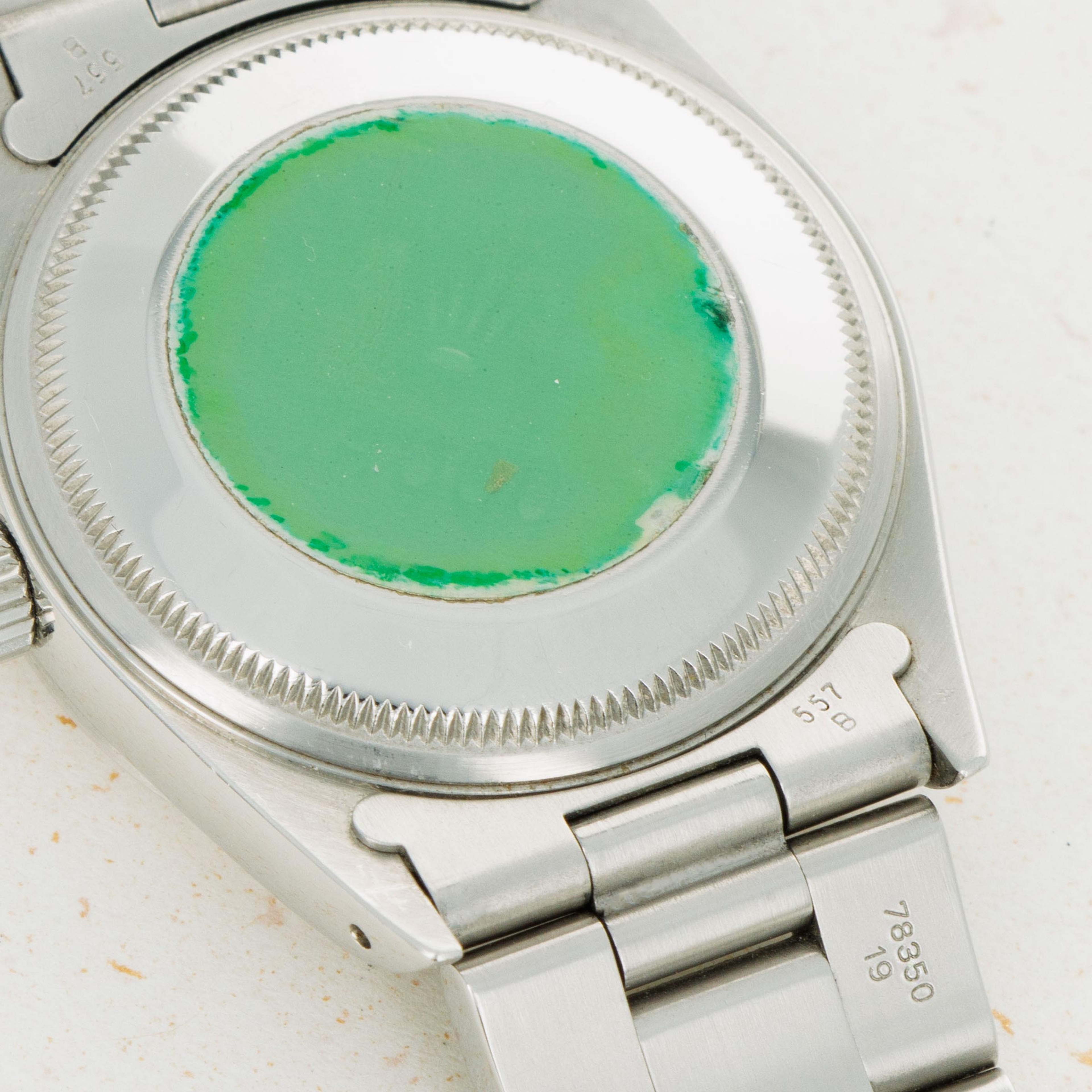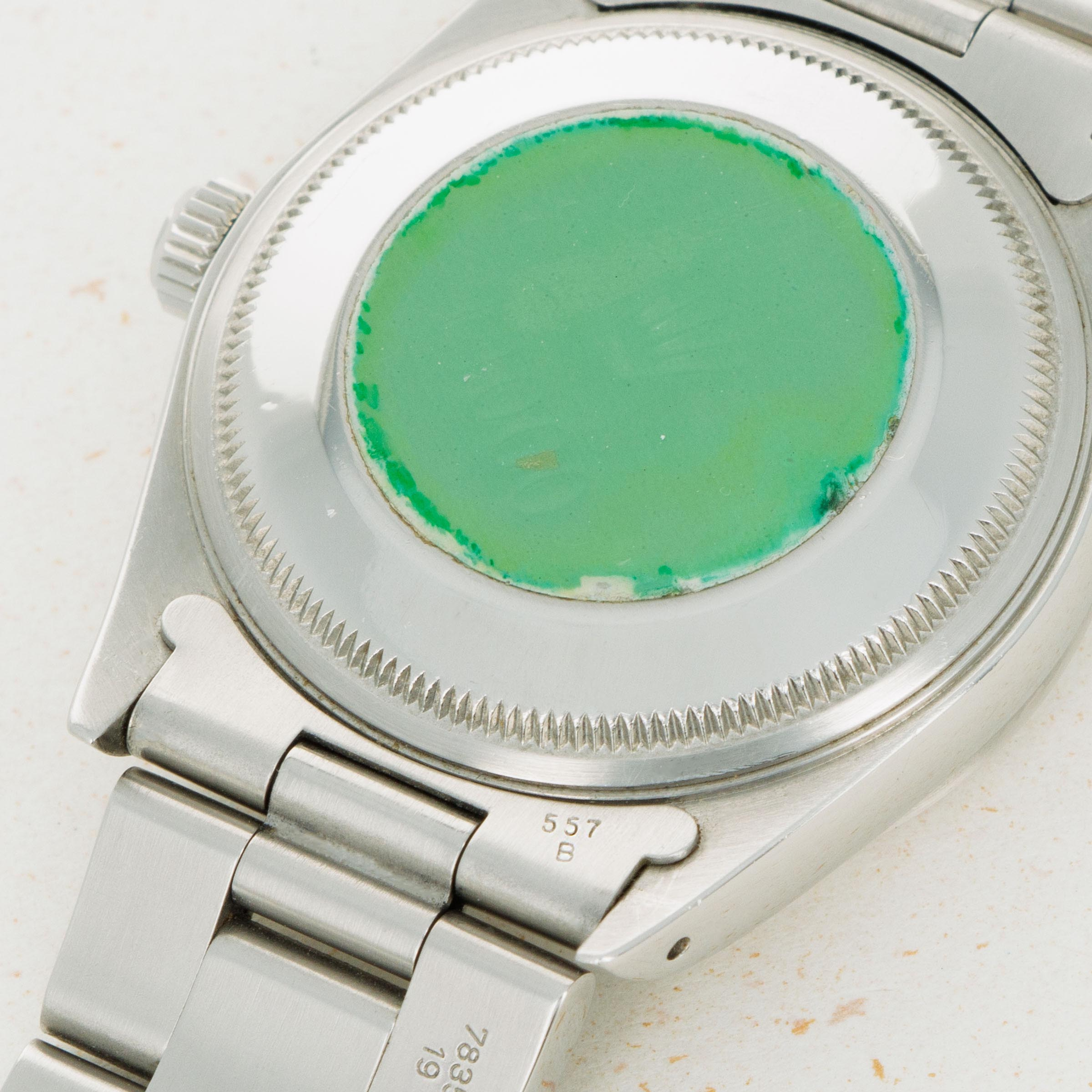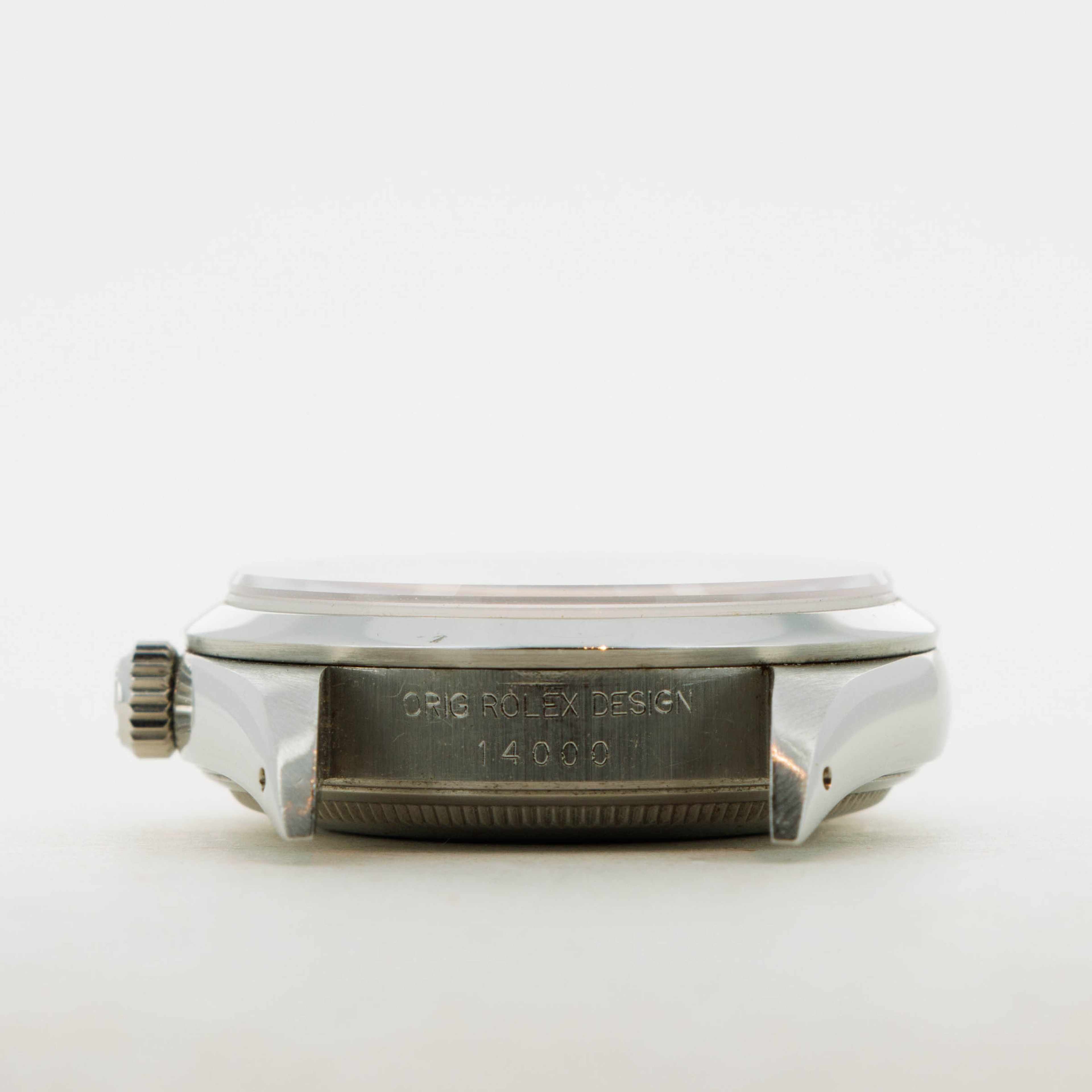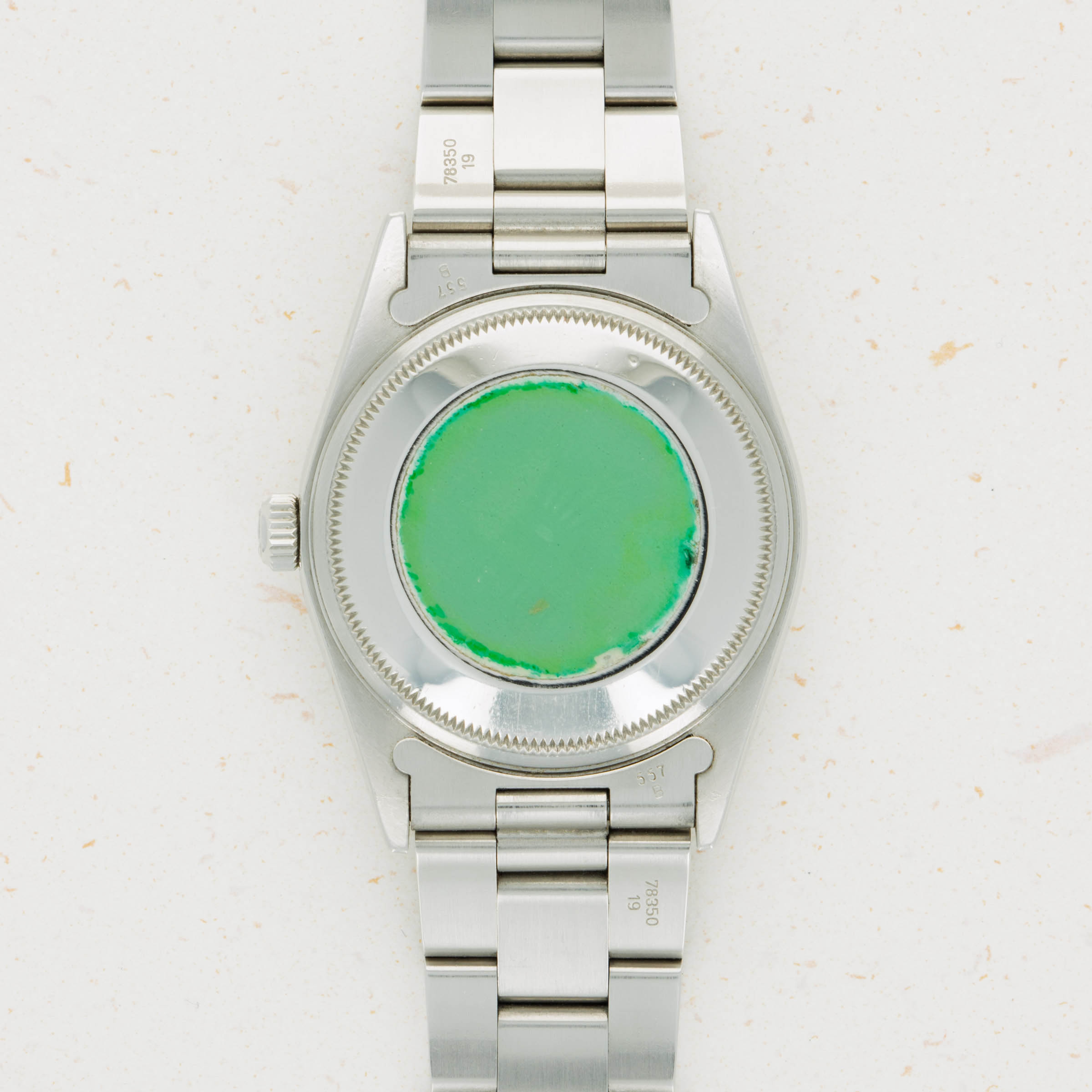 Combining a customized dial with the ref. 14000's famously understated aesthetic with its flat bezel, Oyster bracelet and silver dial, this example injects a fun and unique twist to one of Rolex's most restrained Air-King variants.
