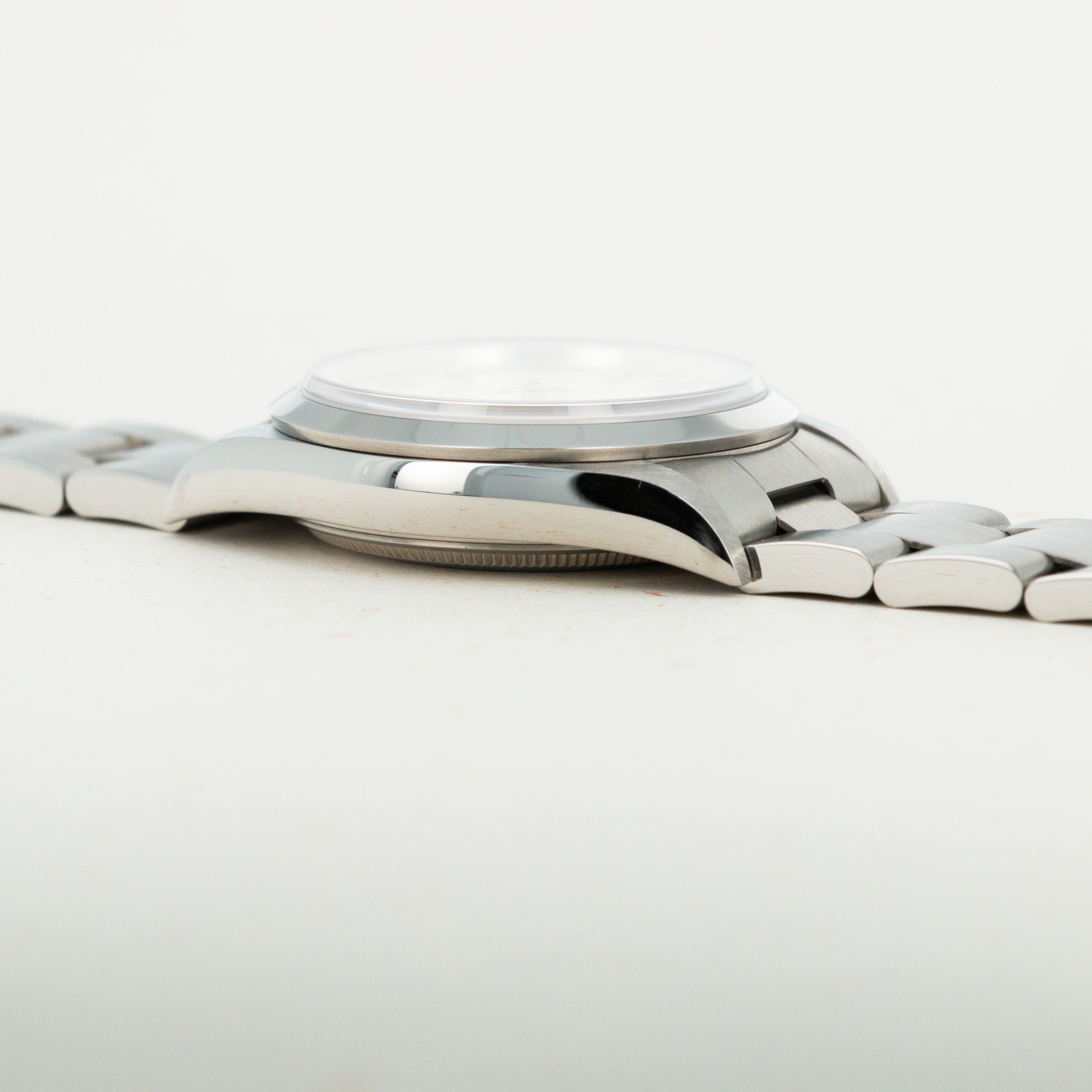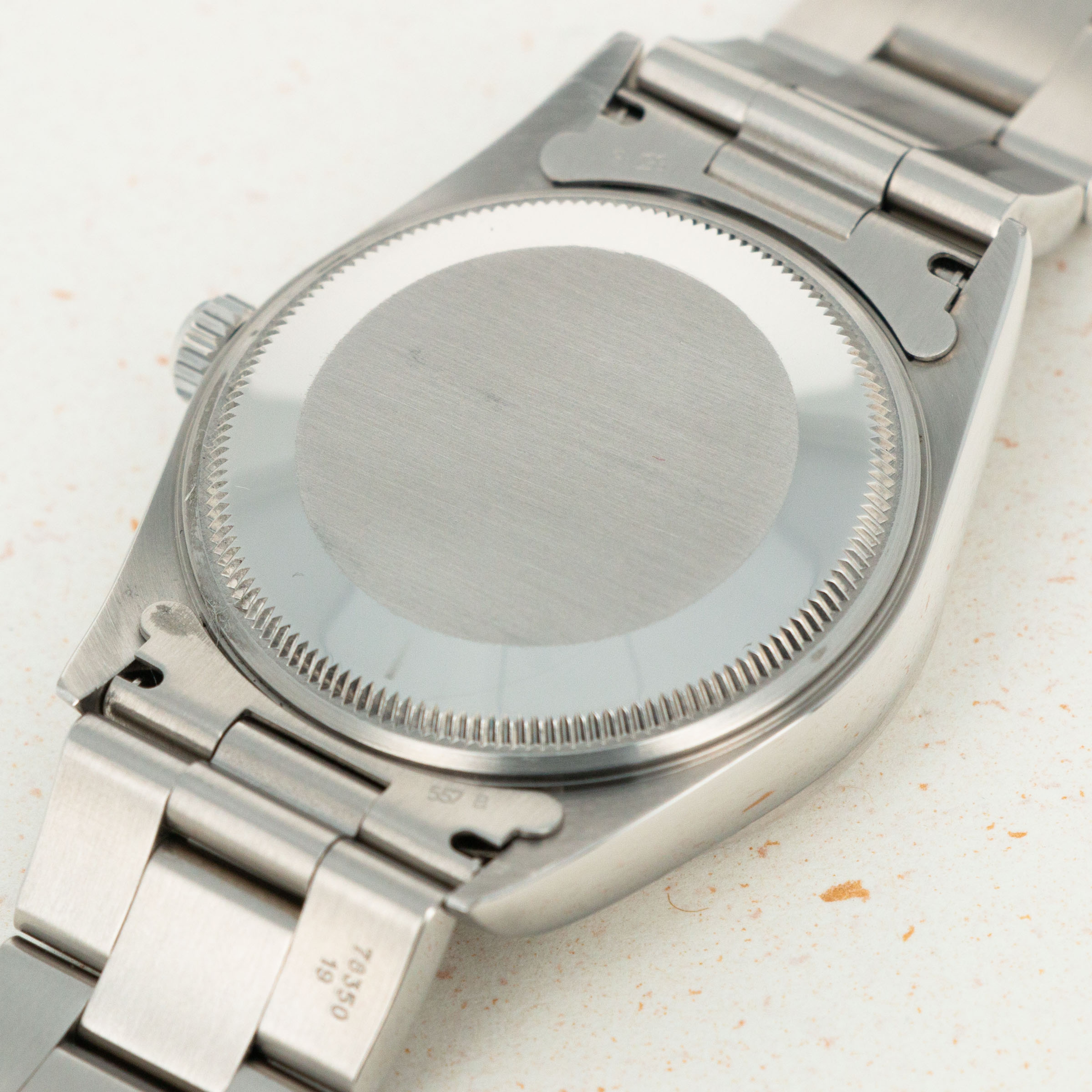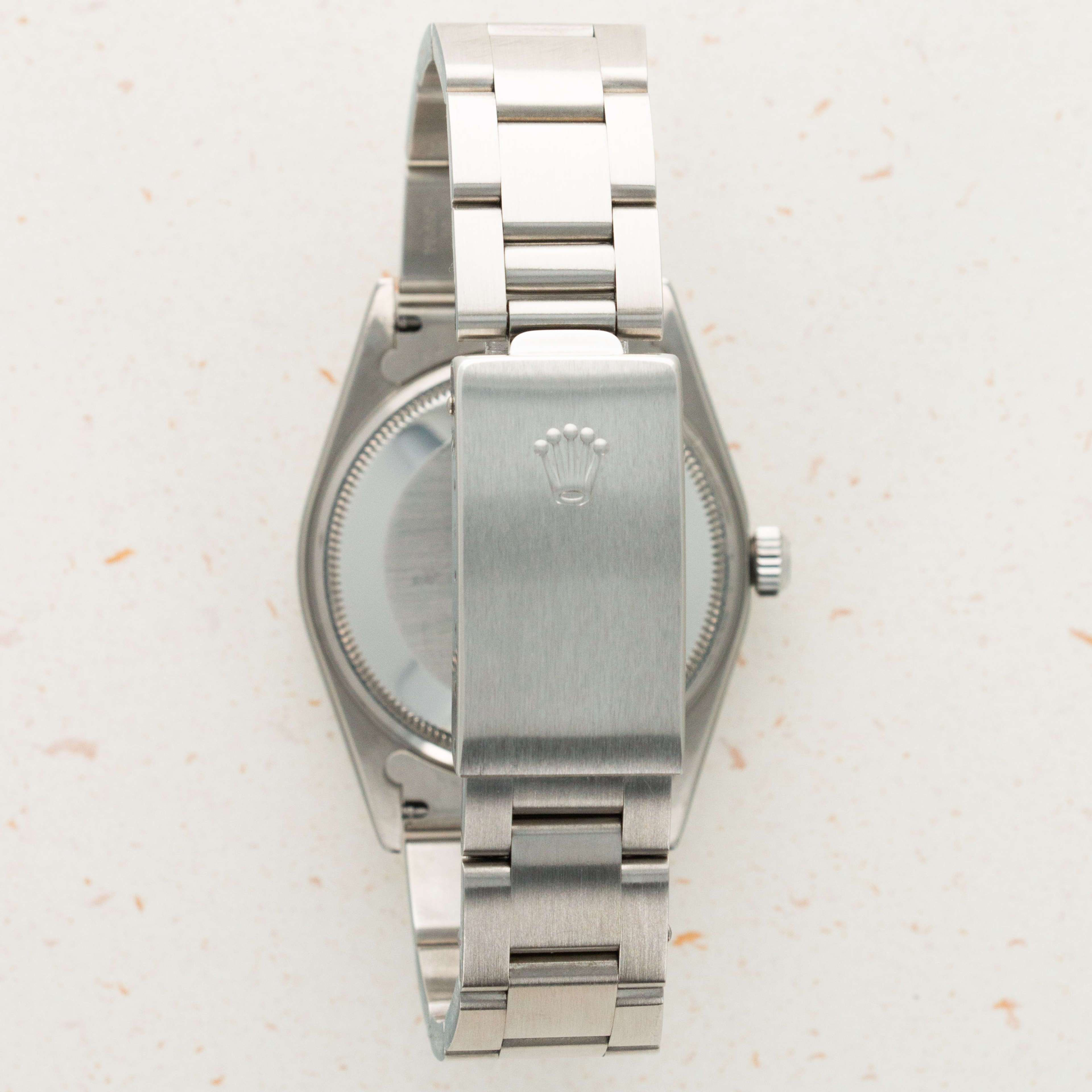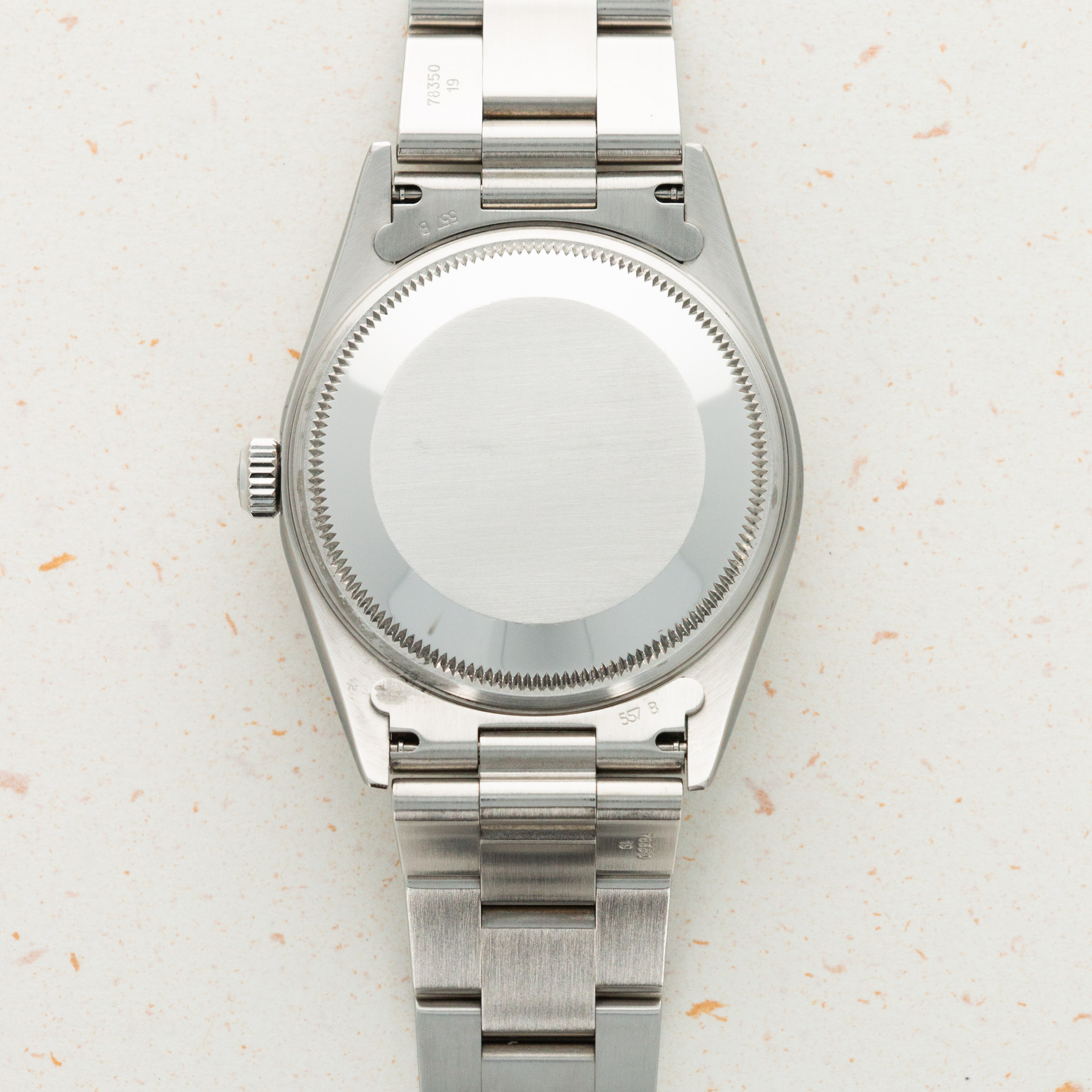 The overall condition is exceptional. The bezel and case are very sharp and show no indication of polishing. The caseback has light hairline scratches, in particular on the glossy section. The bracelet has a few needlelike abrasions on the buckle. It exhibits no signs of stretching.