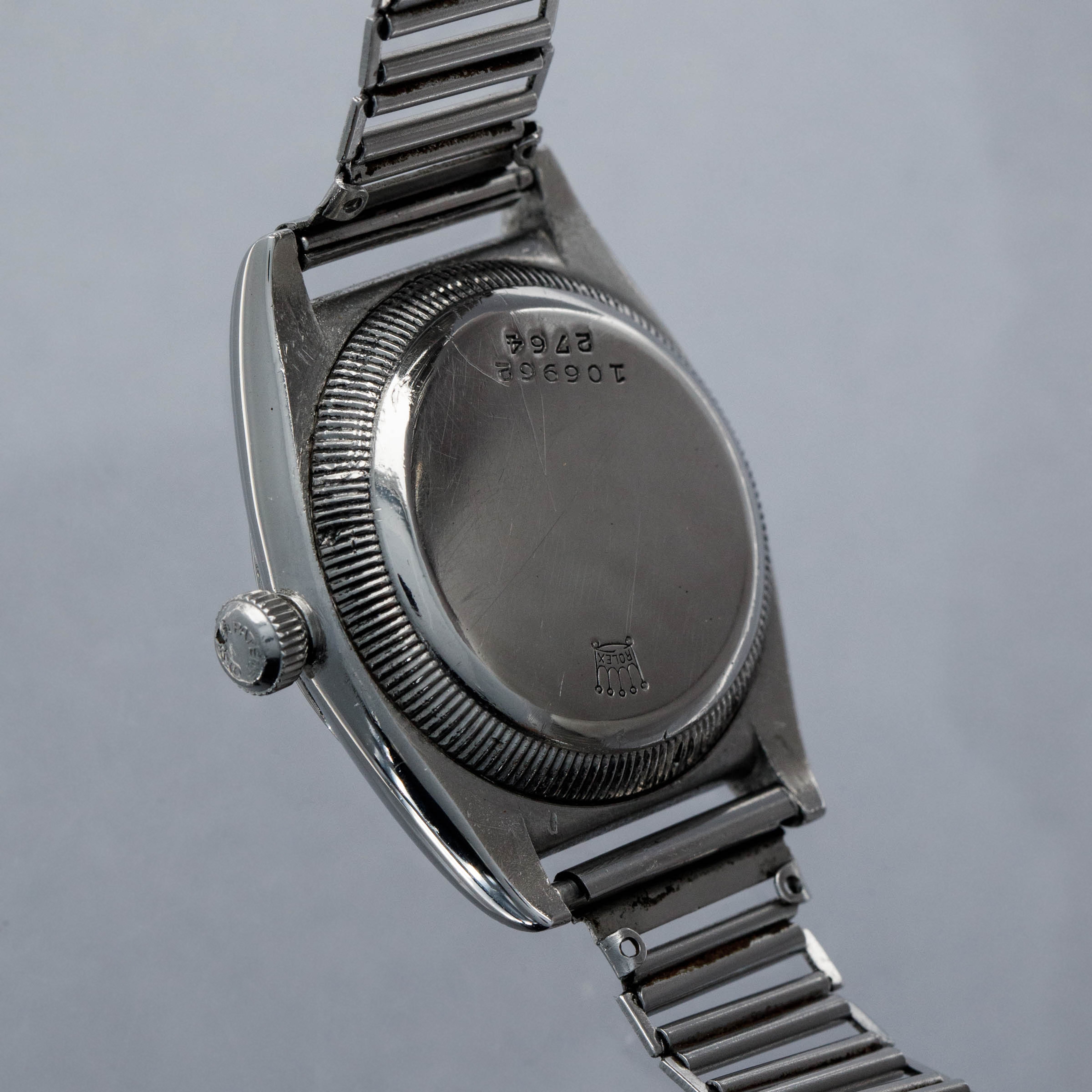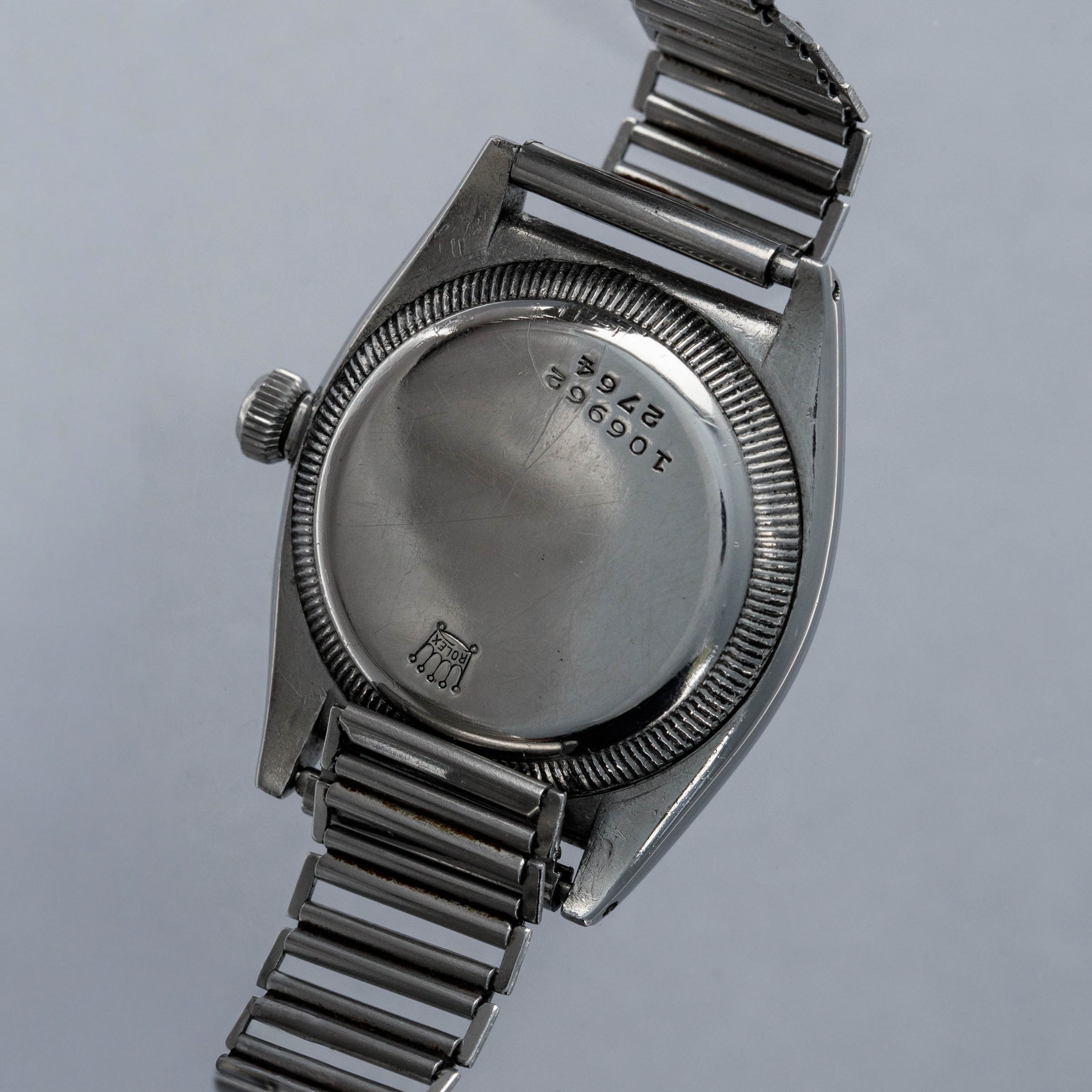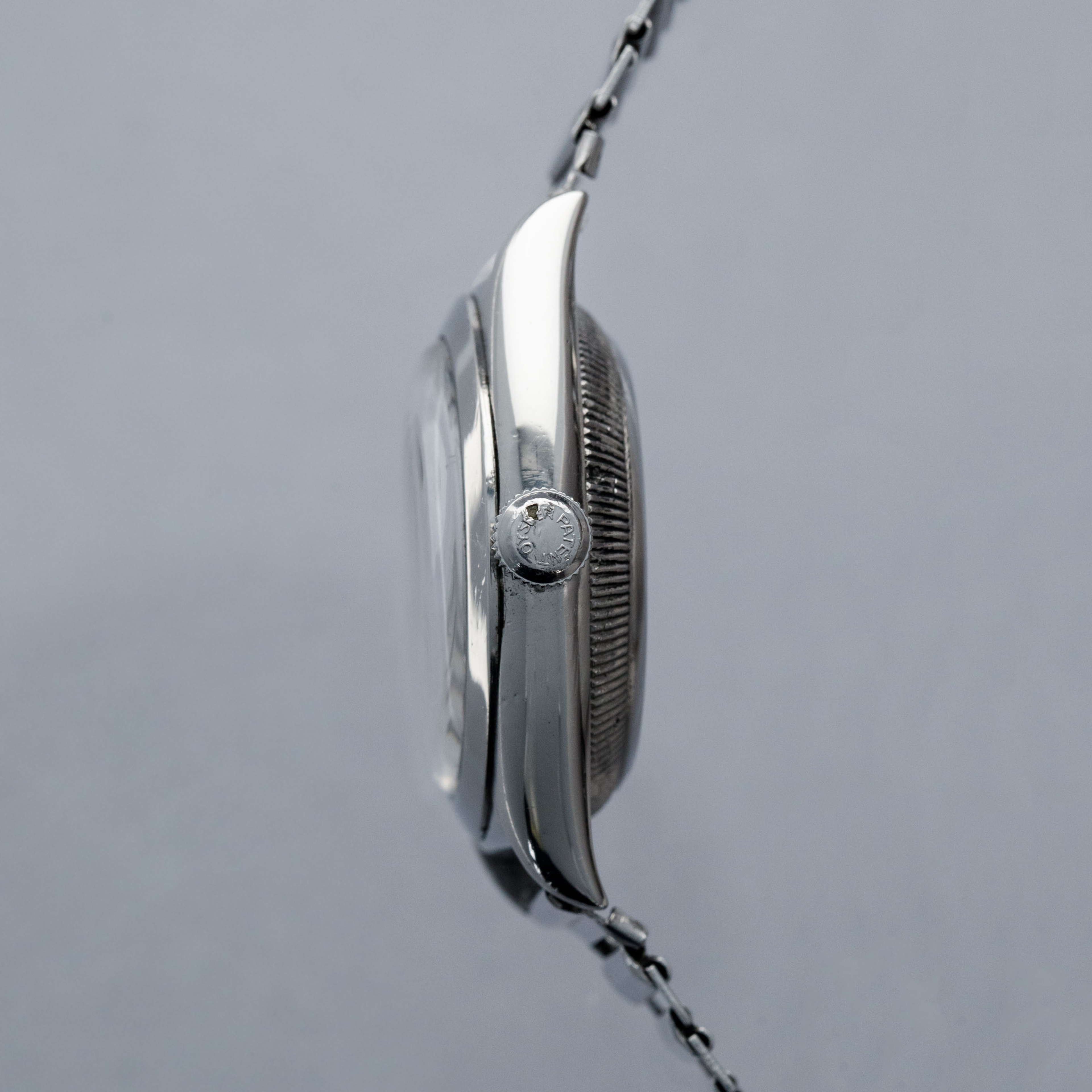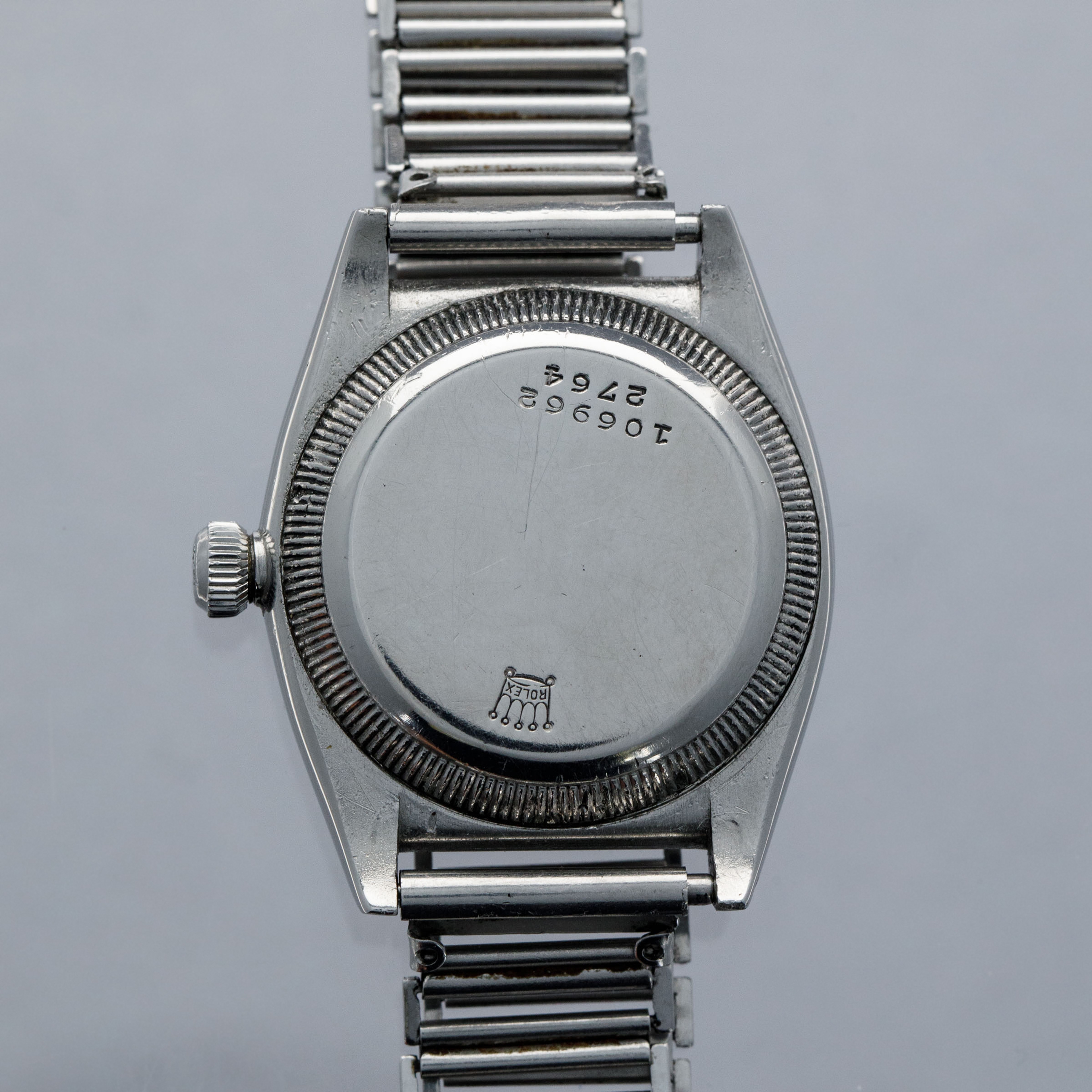 A beautifully designed watch with its understated flat bezel, bubbleback, expandable bracelet, and appealing salmon dial, this Rolex ref. 2764 will certainly make for a unique addition to any collection.