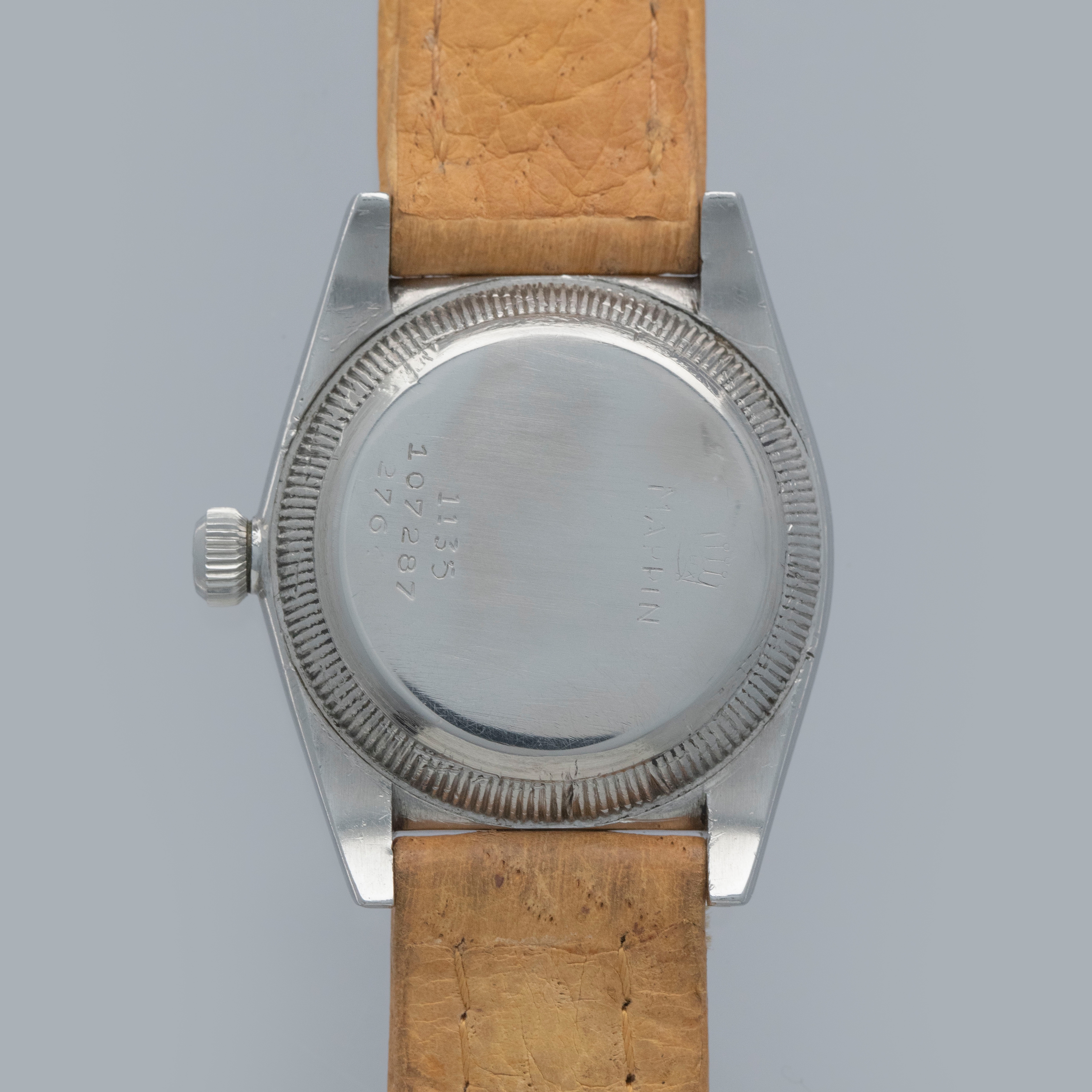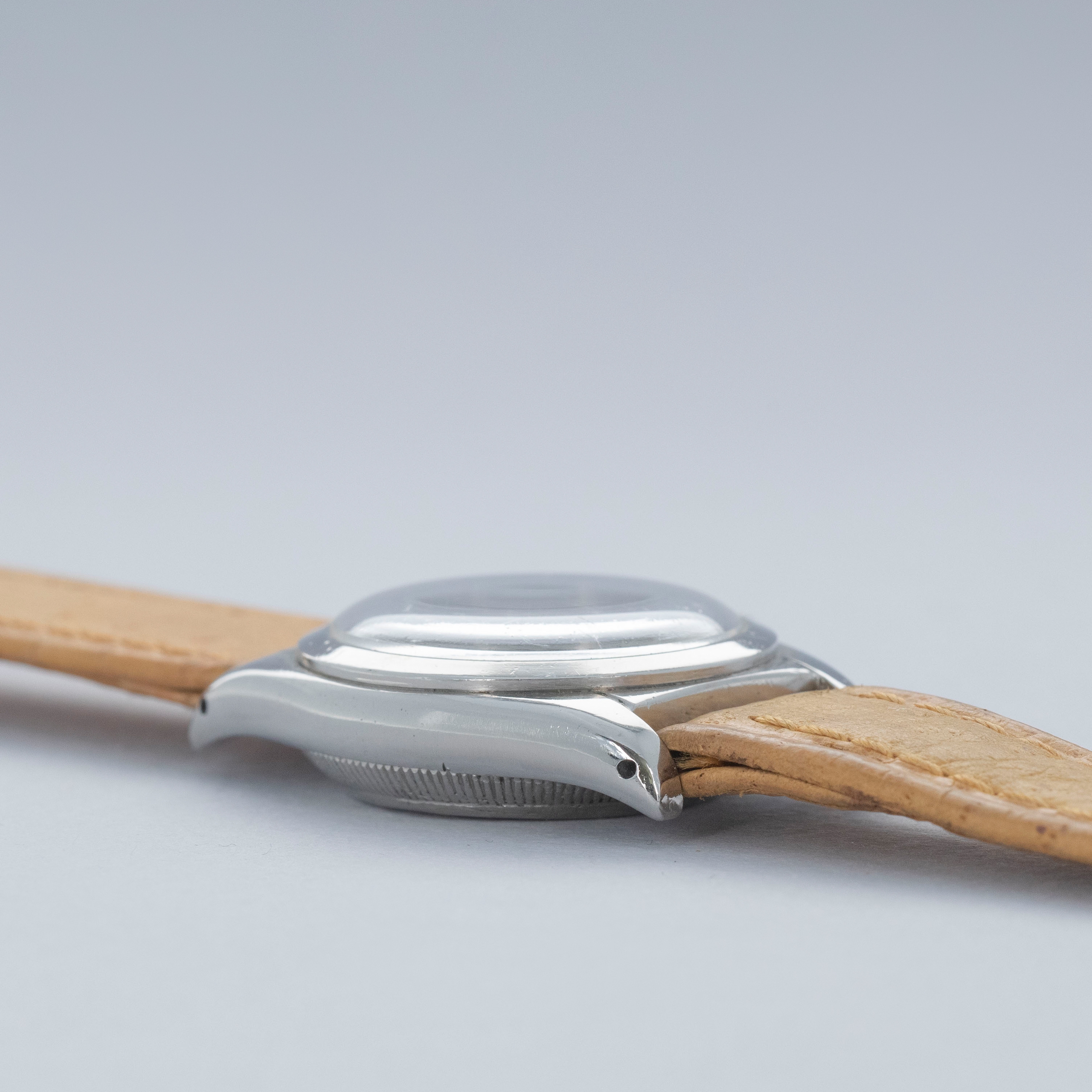 Featuring its eponymous bubbled caseback (signed by Mappin & Webb as the original retailer), the ref. 2764 that we have here is full of character, thanks to its svelte 32mm case diameter and humped caseback that was used to accommodate its automatic movement.