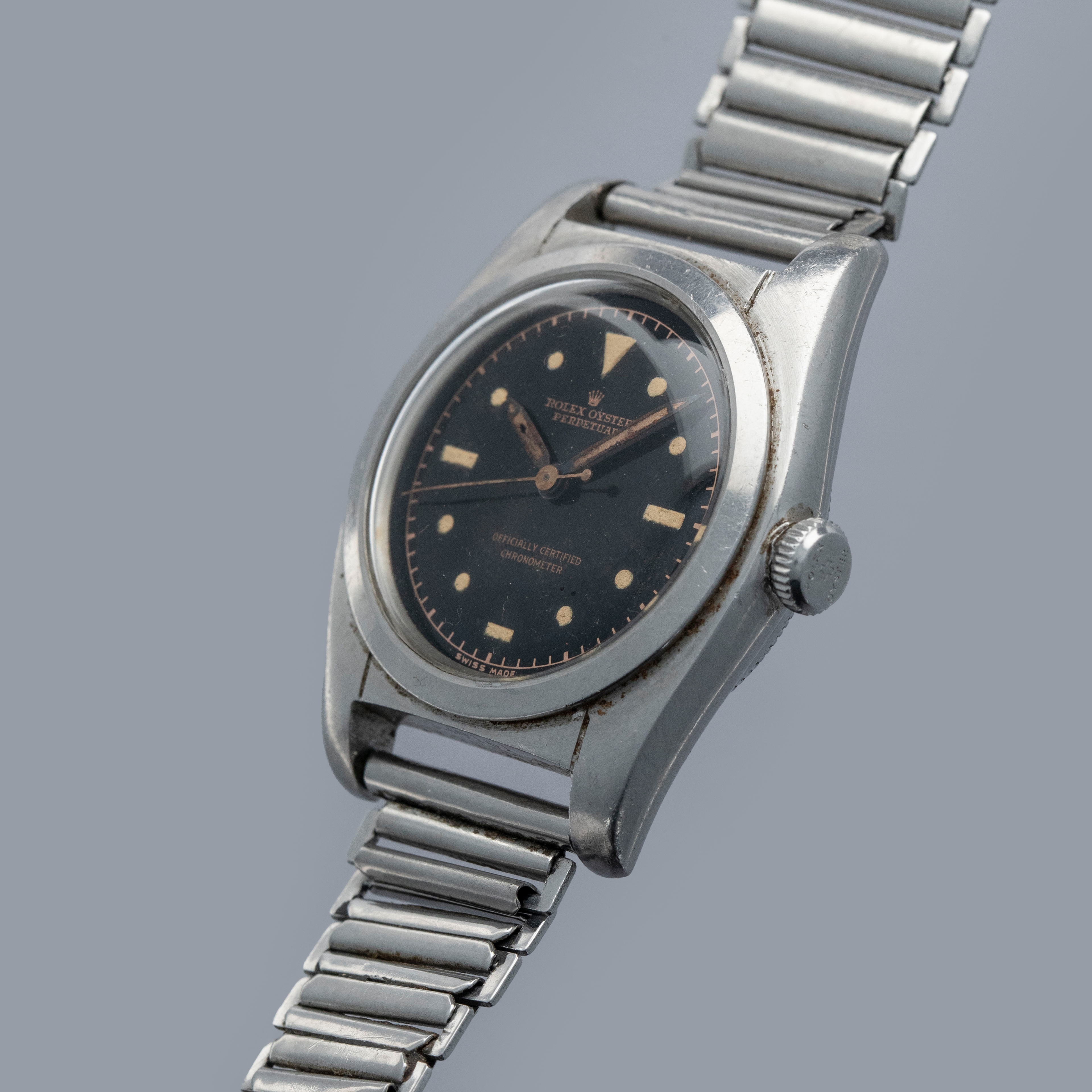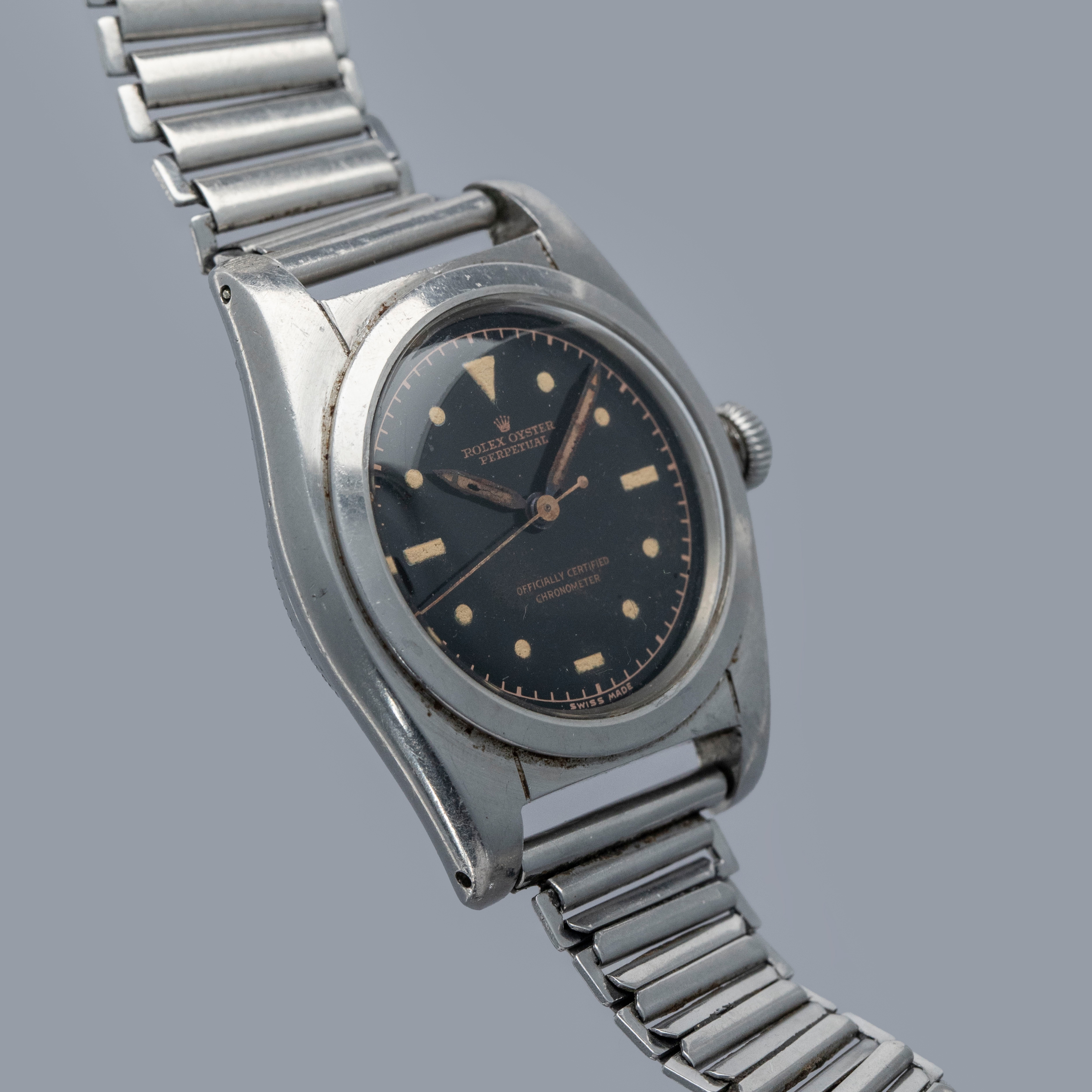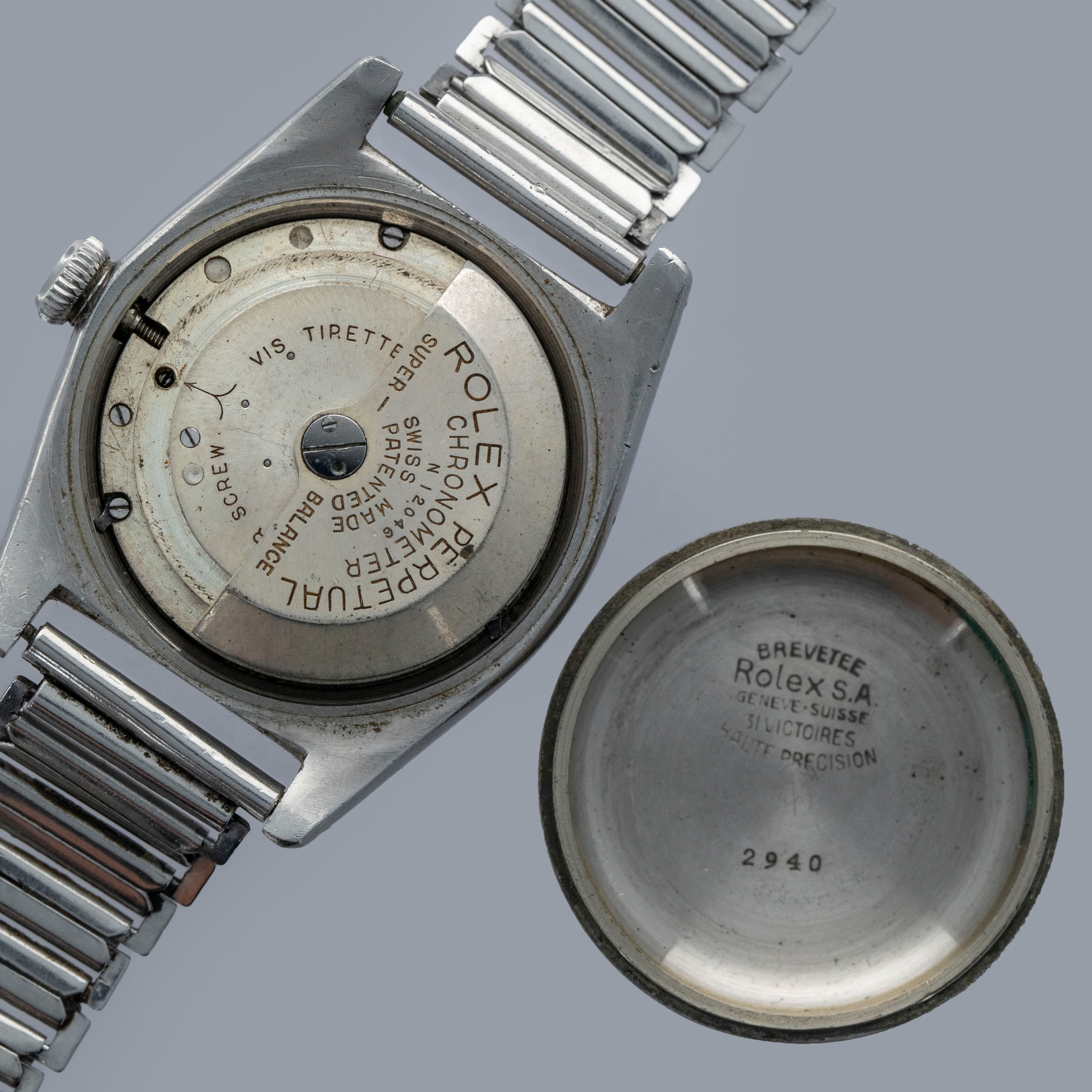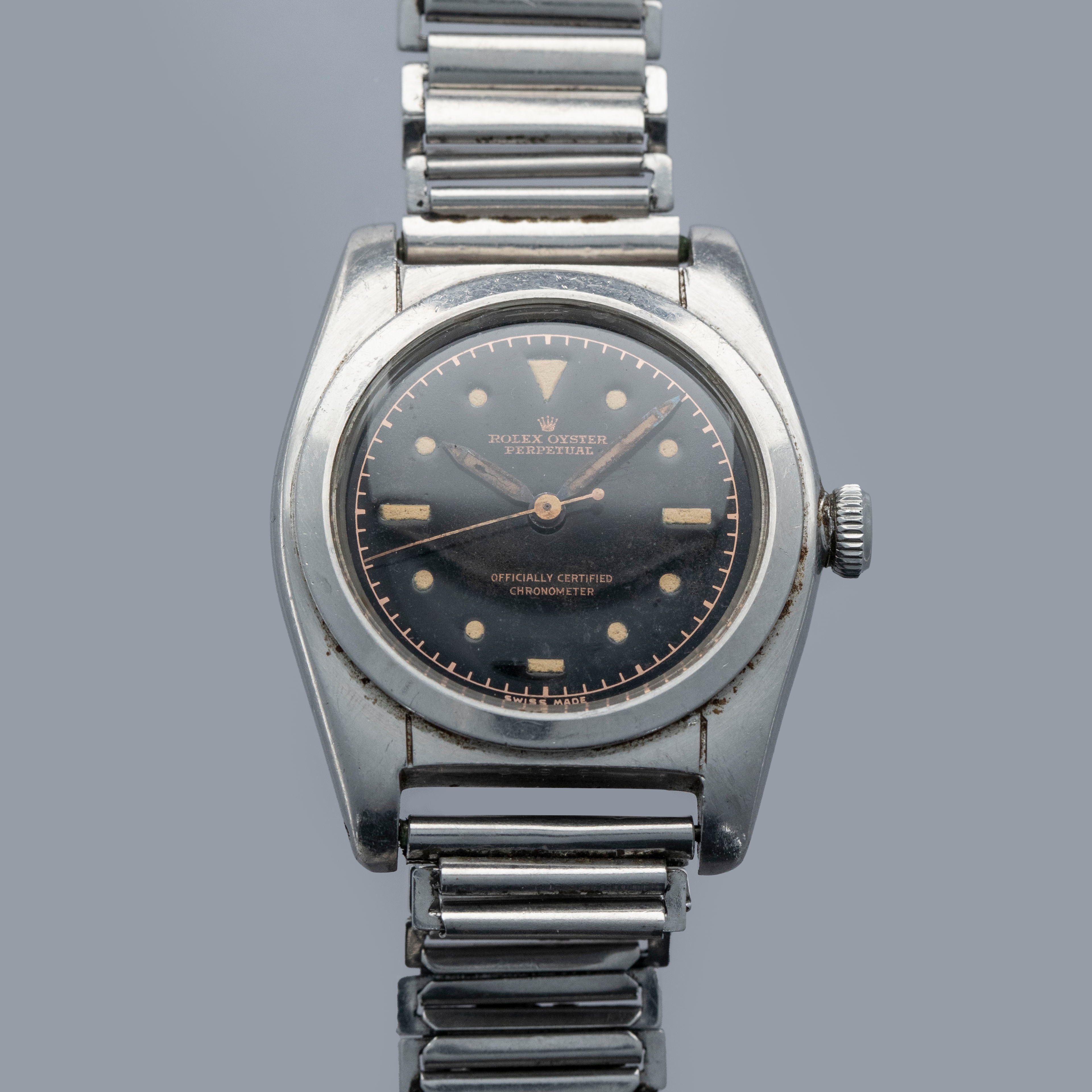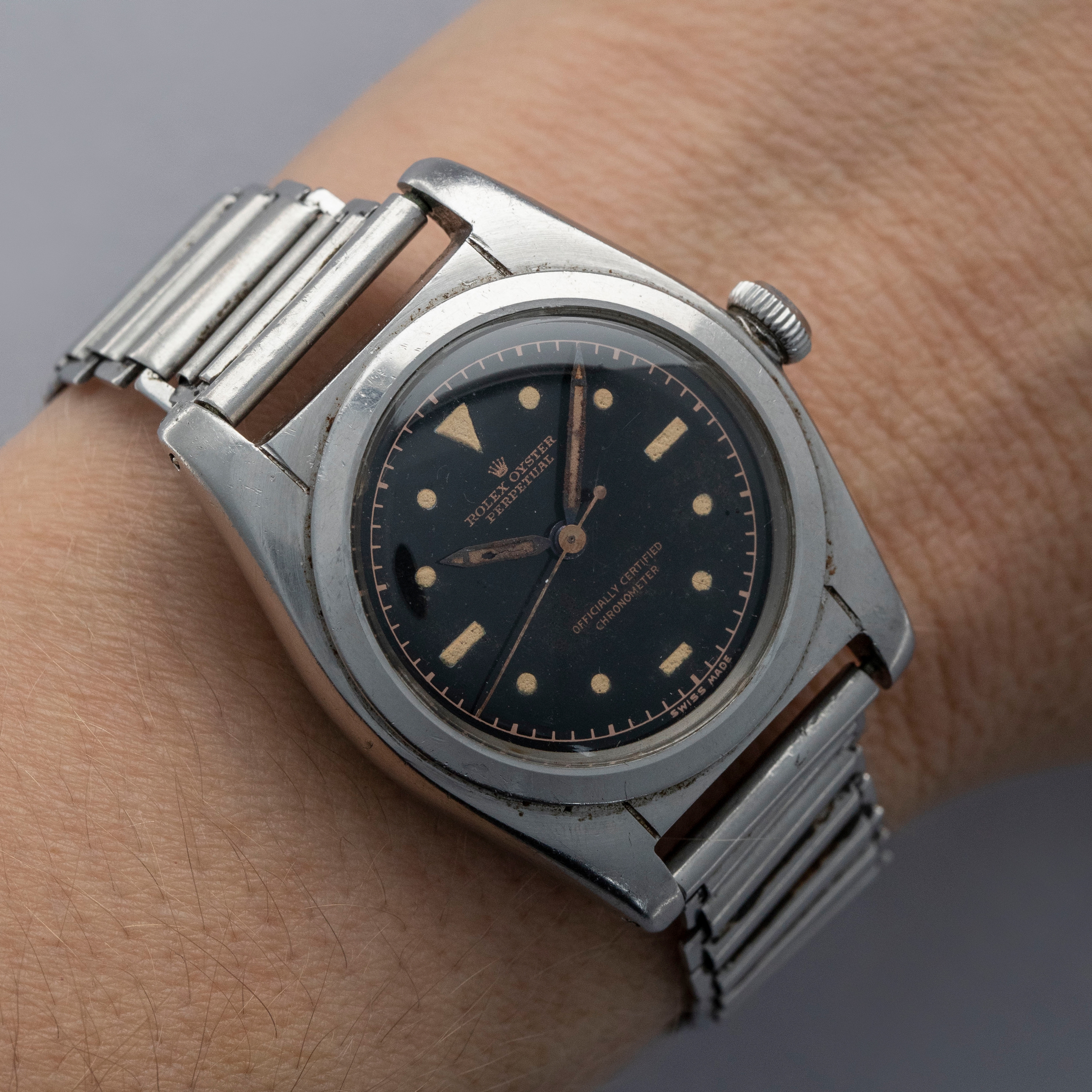 Featuring its eponymous bubbled caseback, the ref. 2940 we have here is full of character thanks to its svelte 32mm case diameter, humped caseback that was used to accommodate its automatic movement, and its stainless steel bamboo-style bracelet.