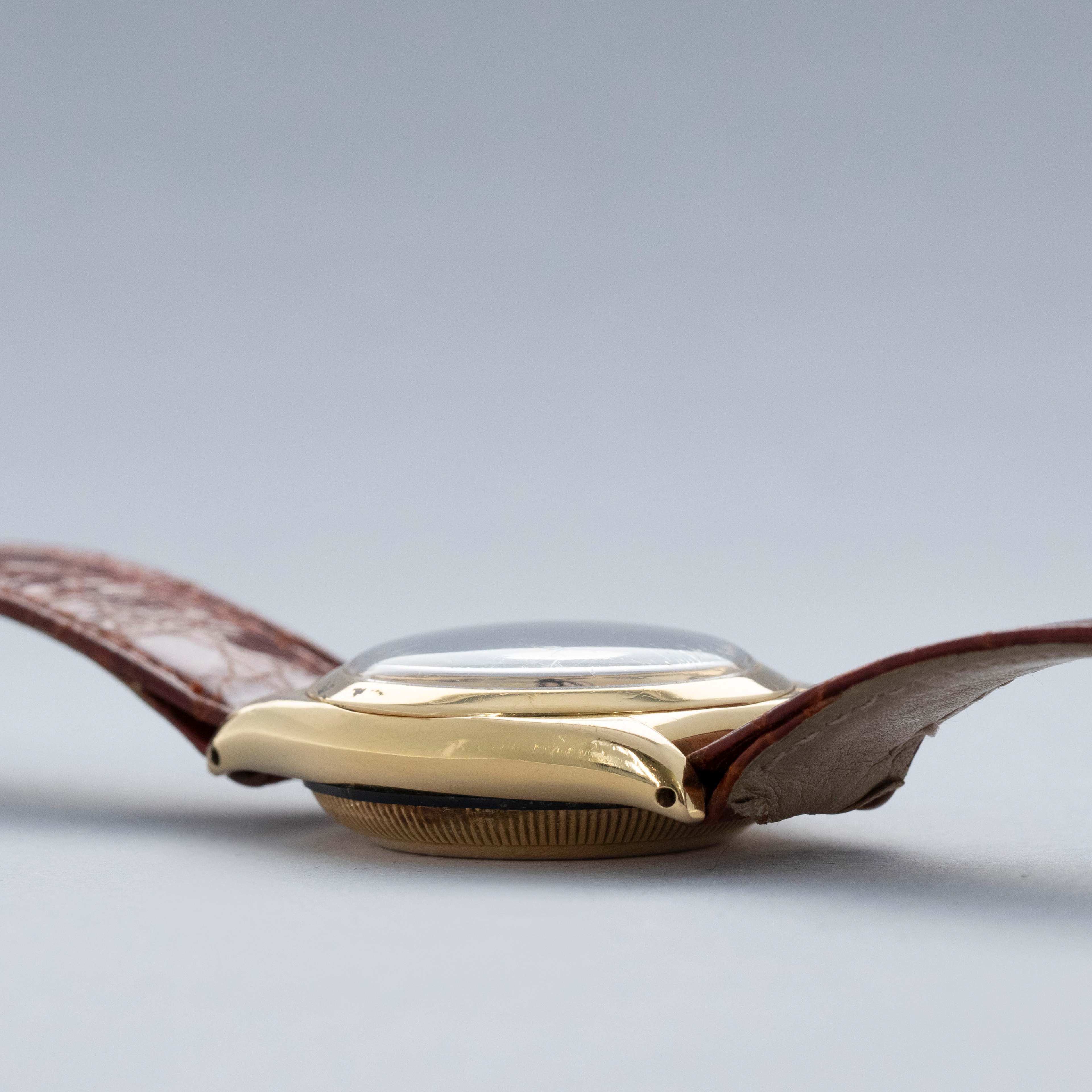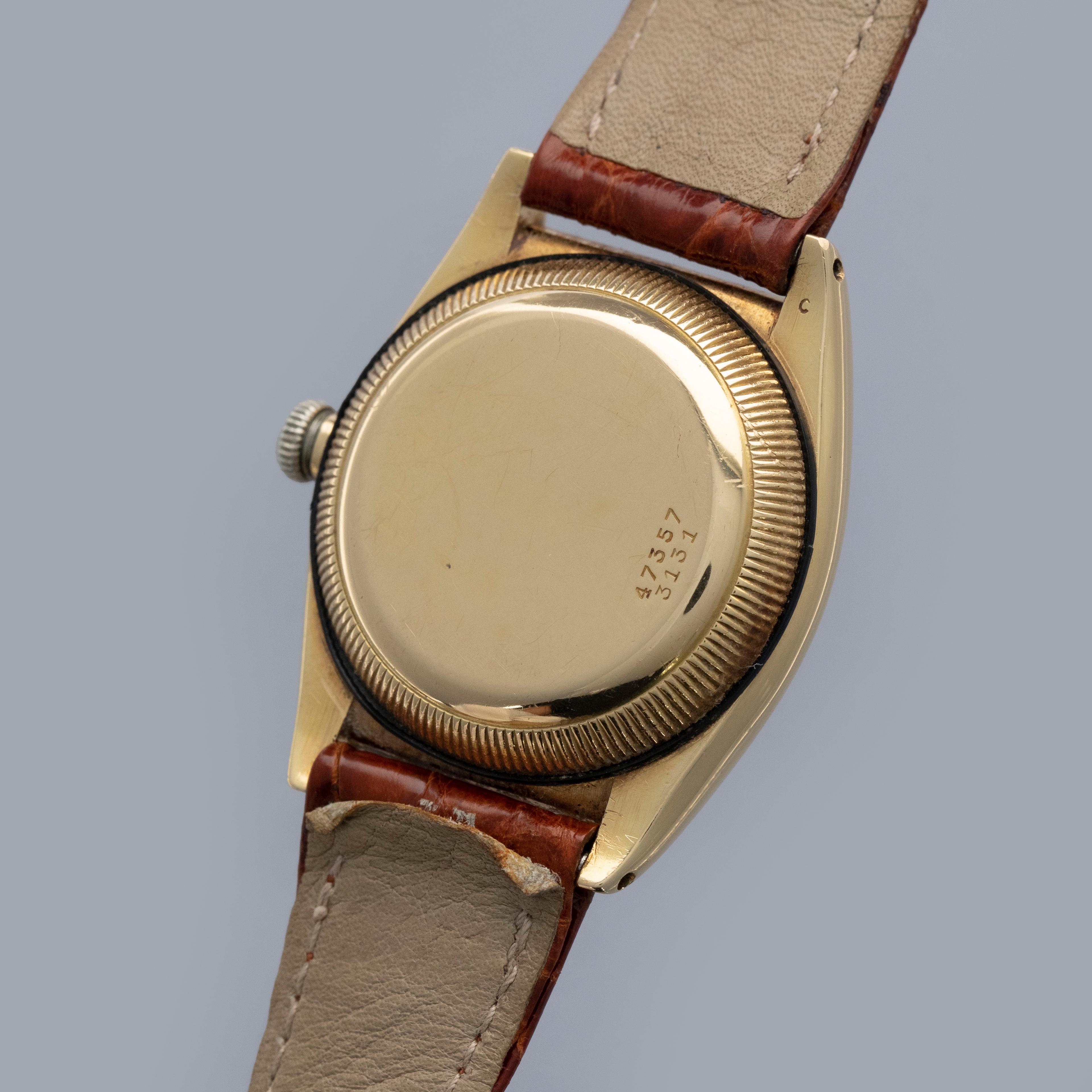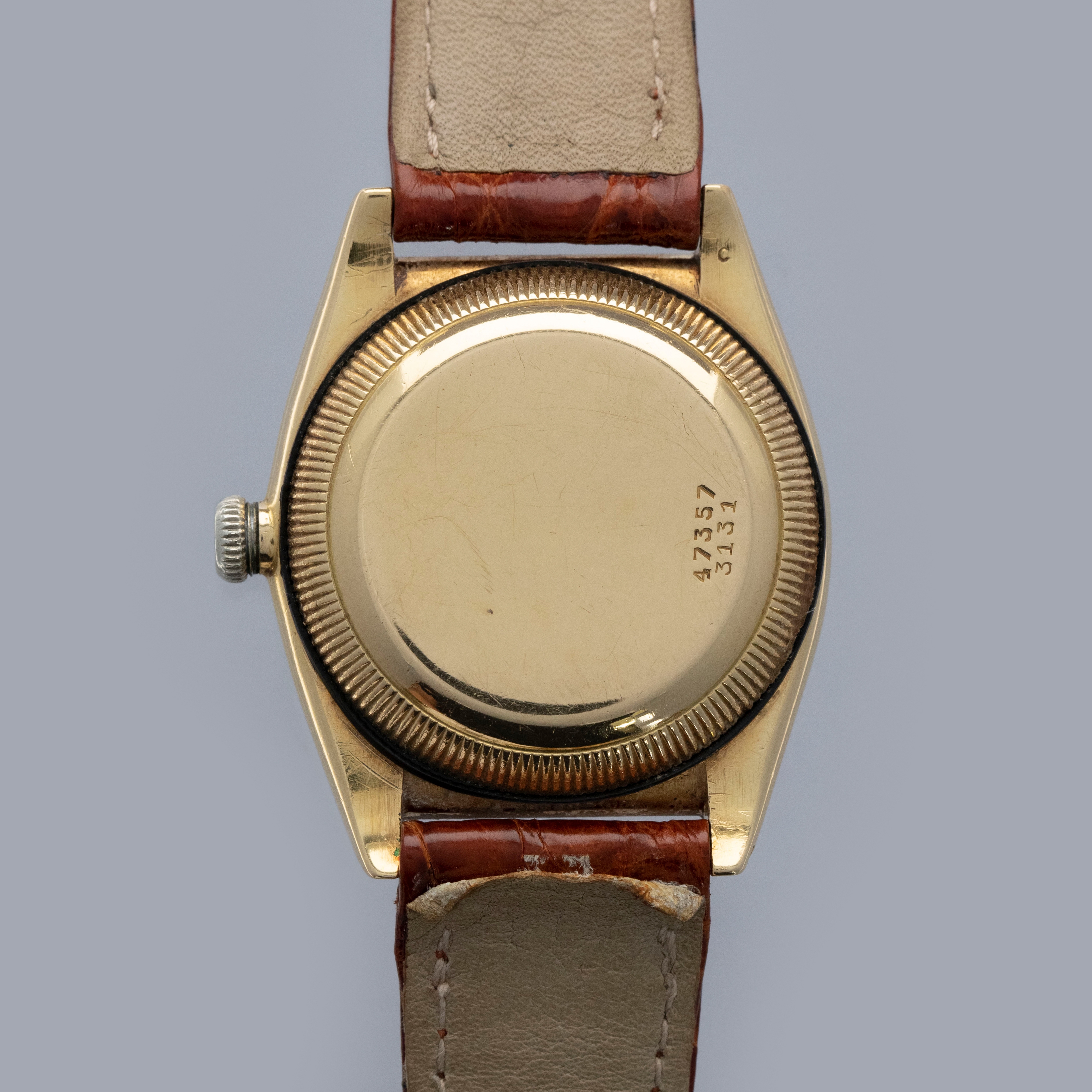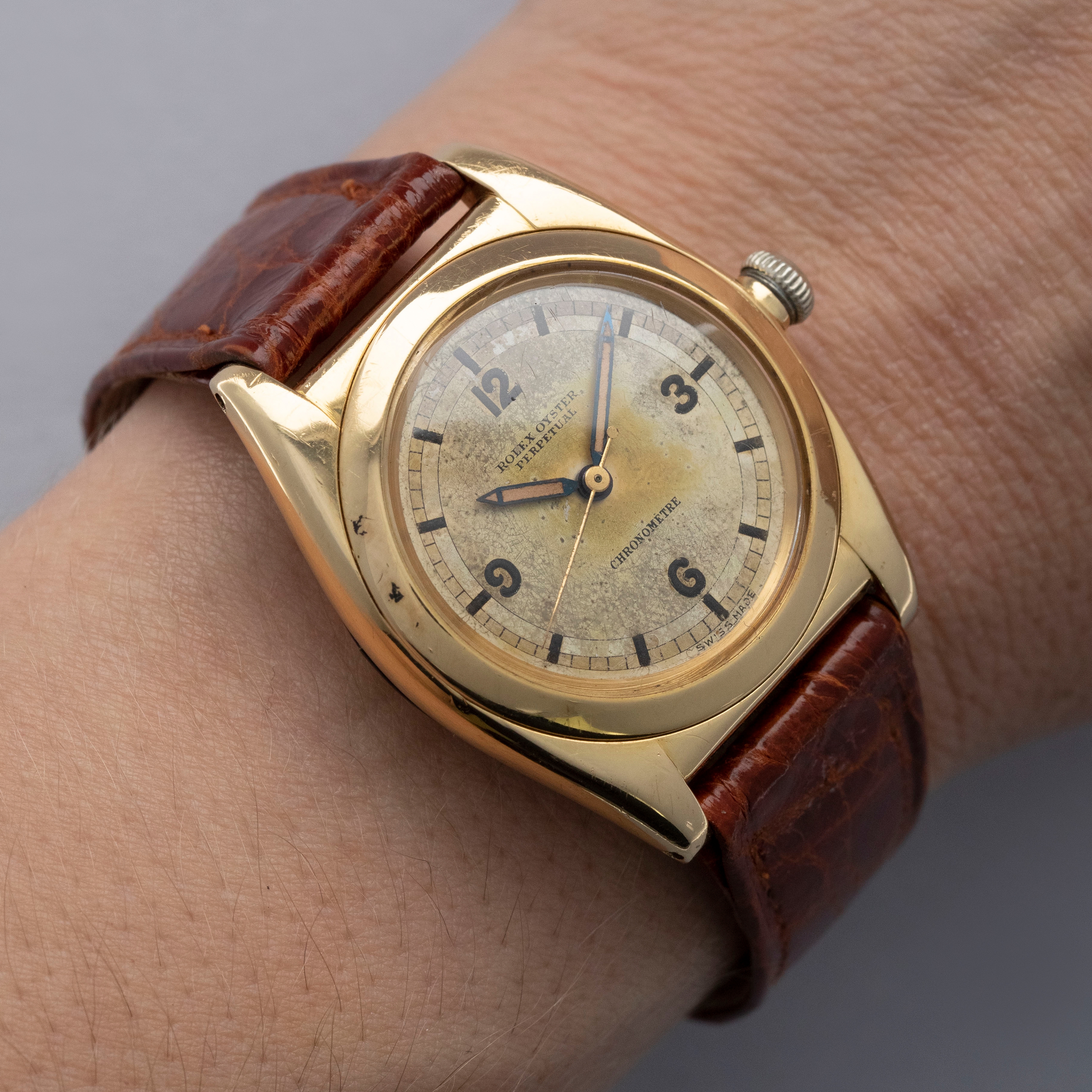 Featuring its eponymous bubbled caseback, the 18kt yellow gold ref. 3131 that we have here is full of character thanks to its svelte 32mm case diameter and humped caseback that was used to accommodate its automatic movement.