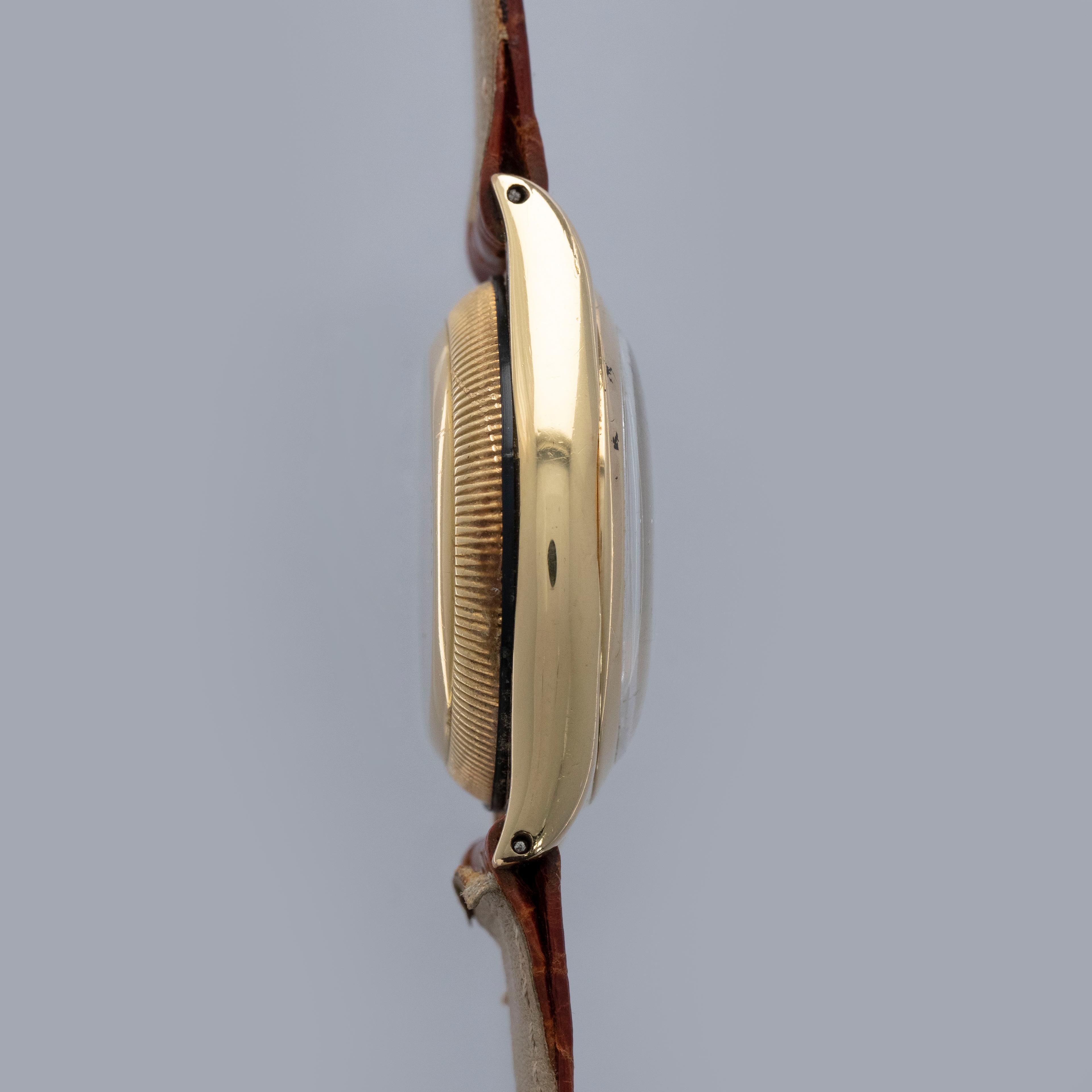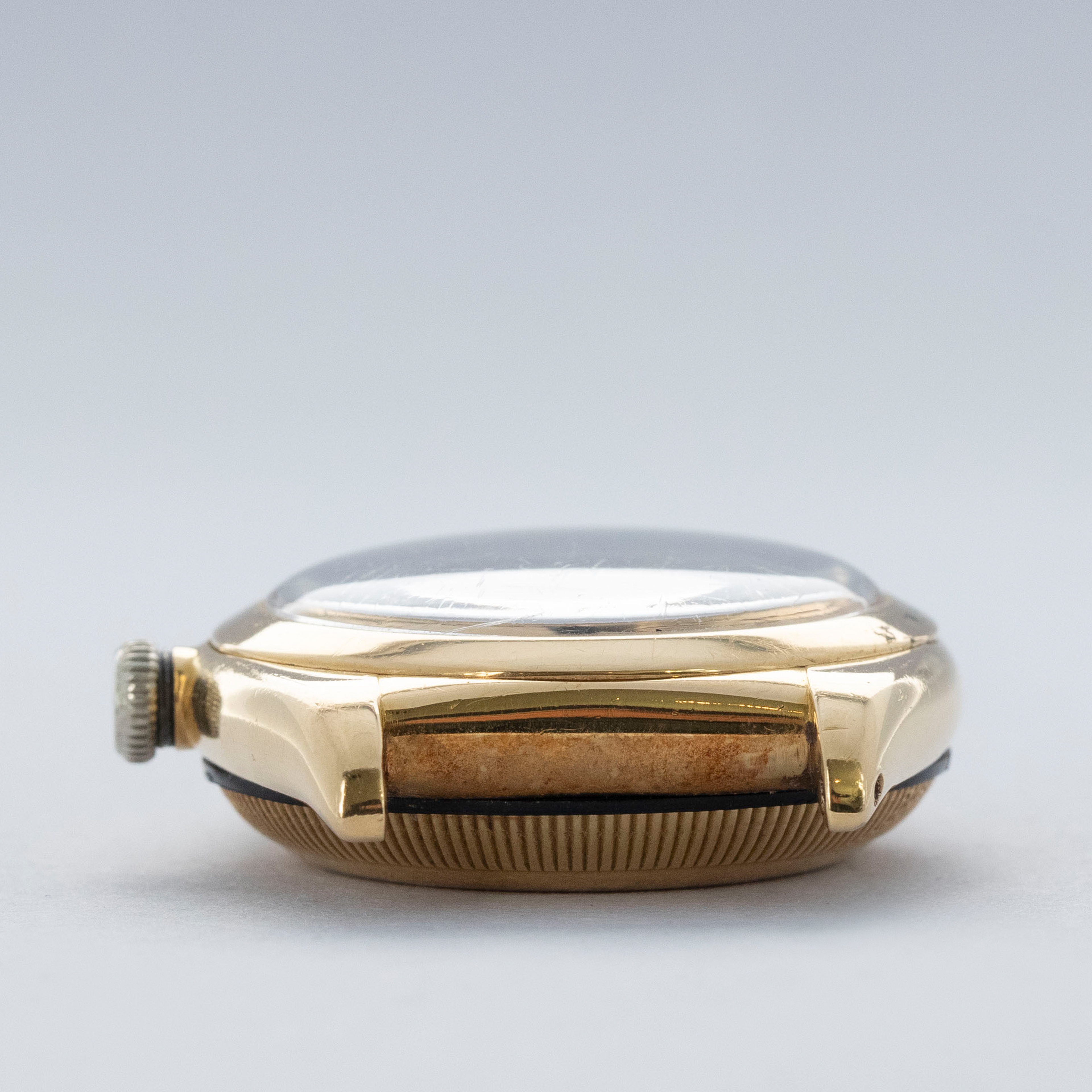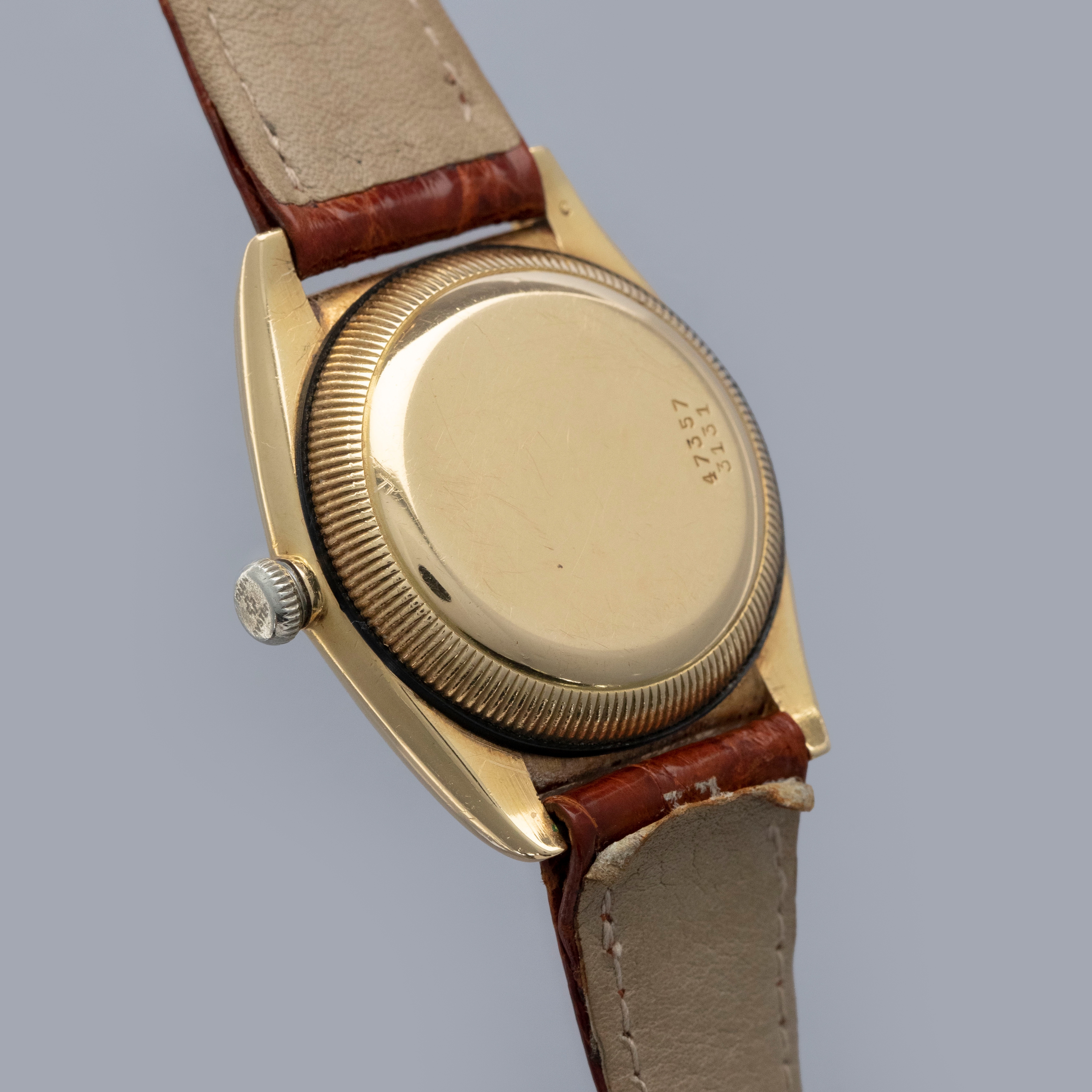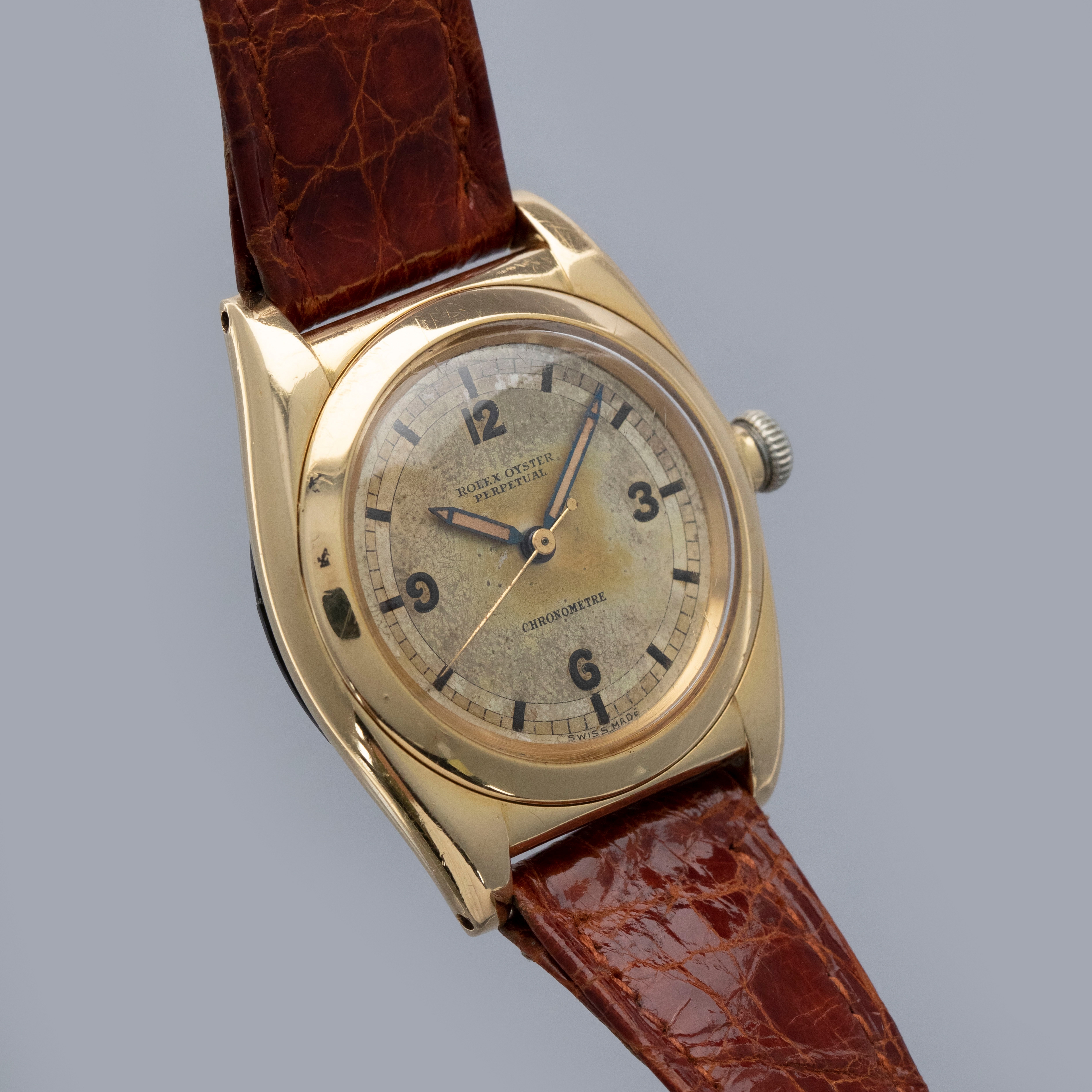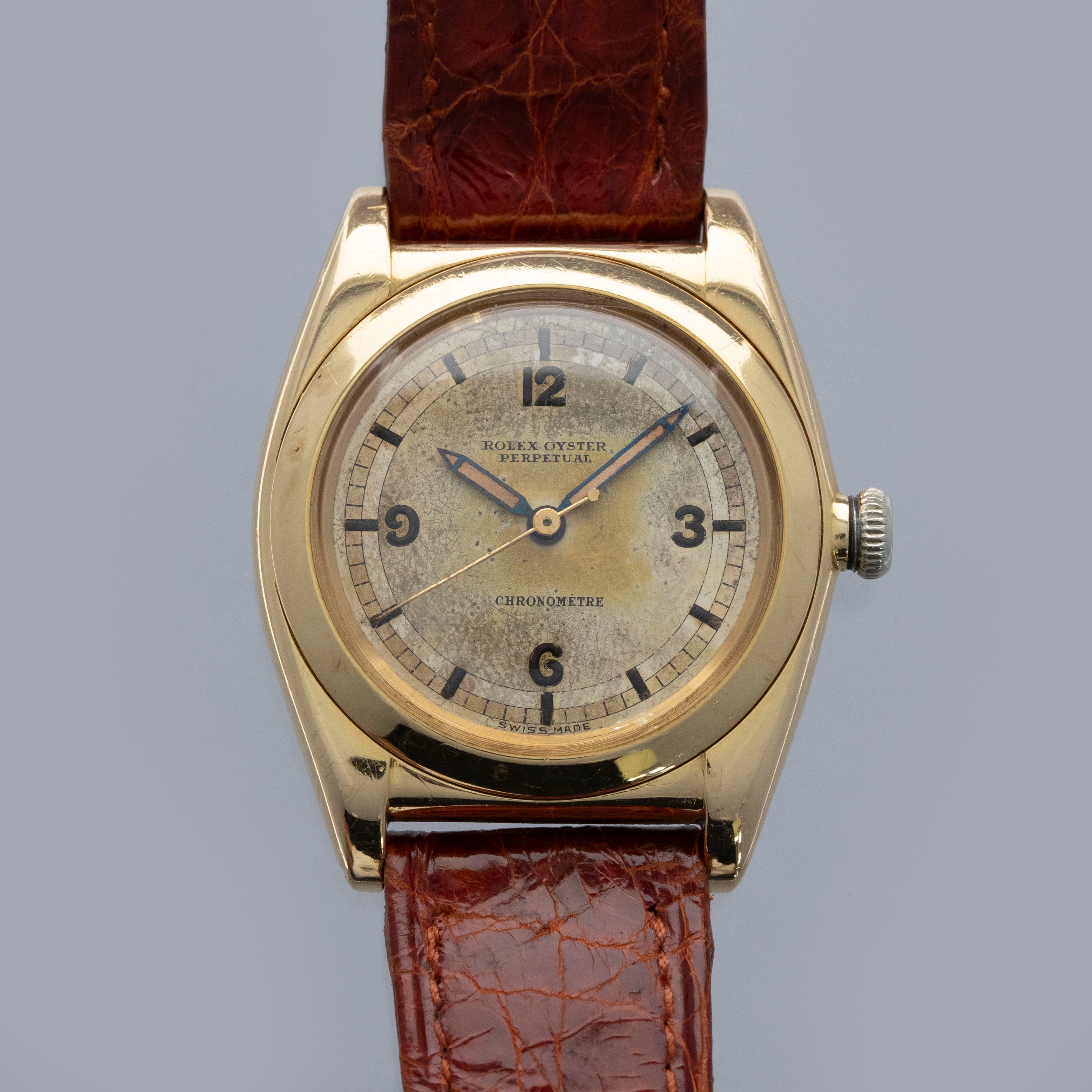 Featuring its eponymous bubbled caseback, the 18kt yellow gold ref. 3131 that we have here is full of character thanks to its svelte 32mm case diameter and humped caseback that was used to accommodate its automatic movement.