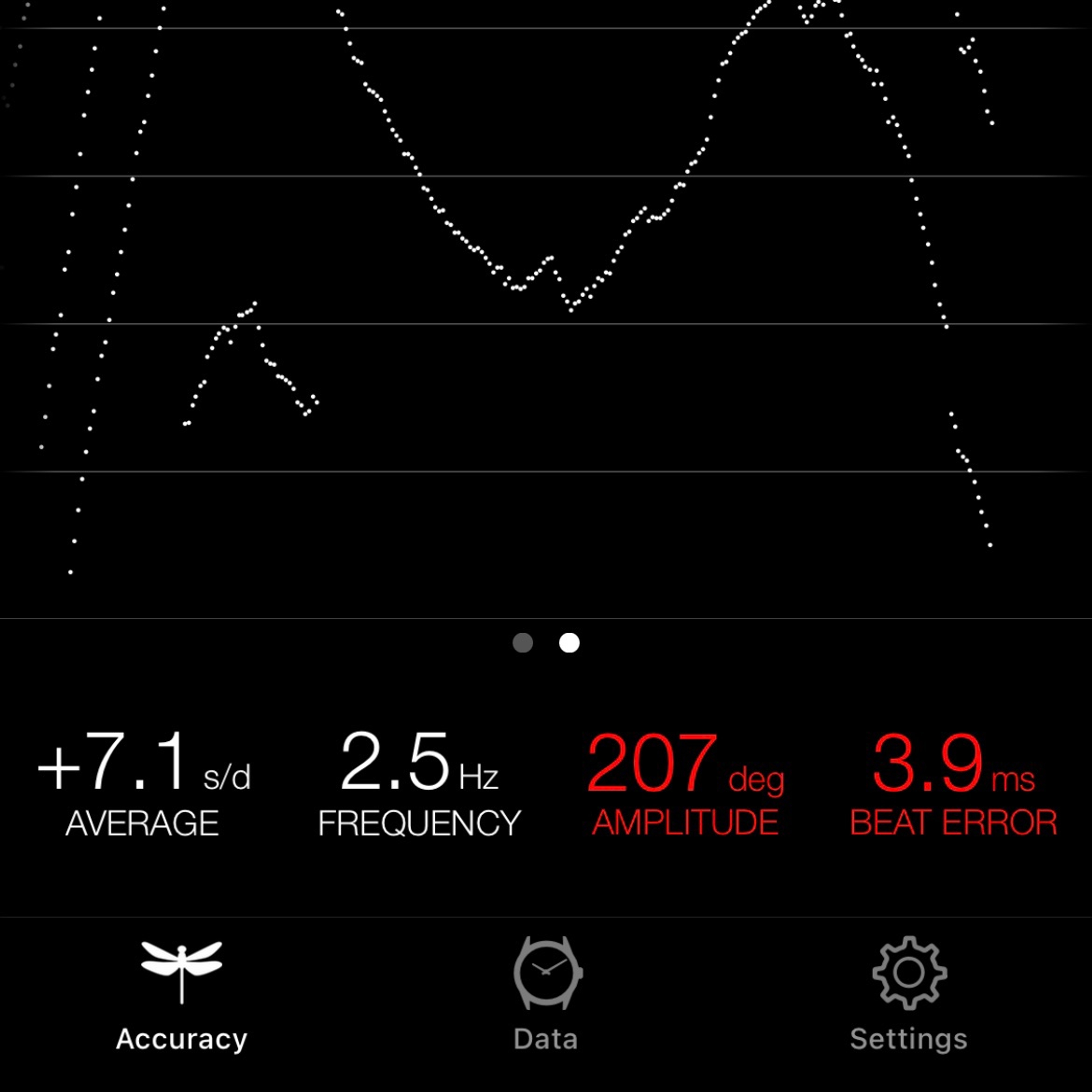 This reading was taken (crown down) with a ONEOF Accuracy Boutique Edition timing machine at time of cataloging. It is provided as a courtesy only, and shall not be construed as a warranty or guarantee of any kind. Please refer to our terms and conditions of sale for more information.