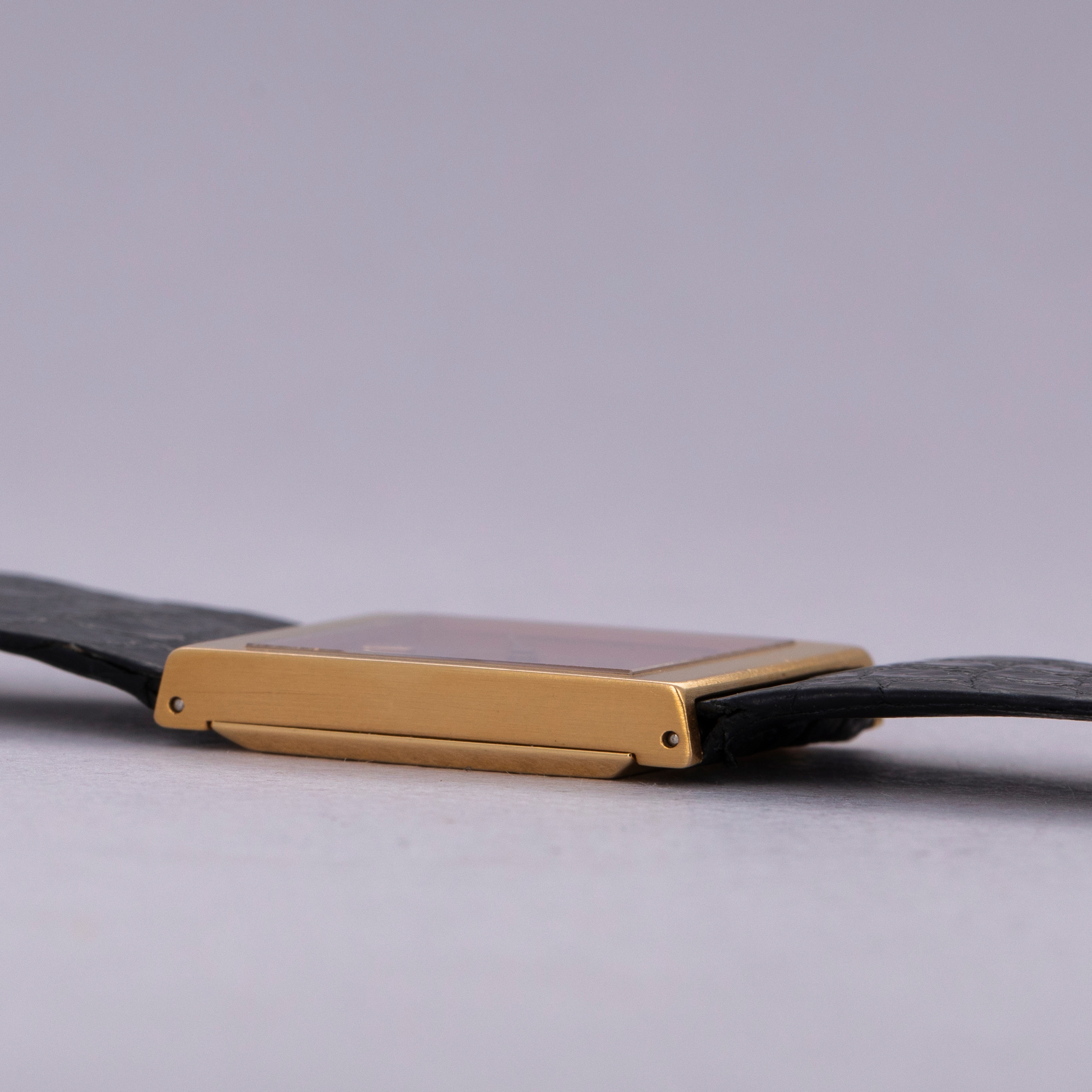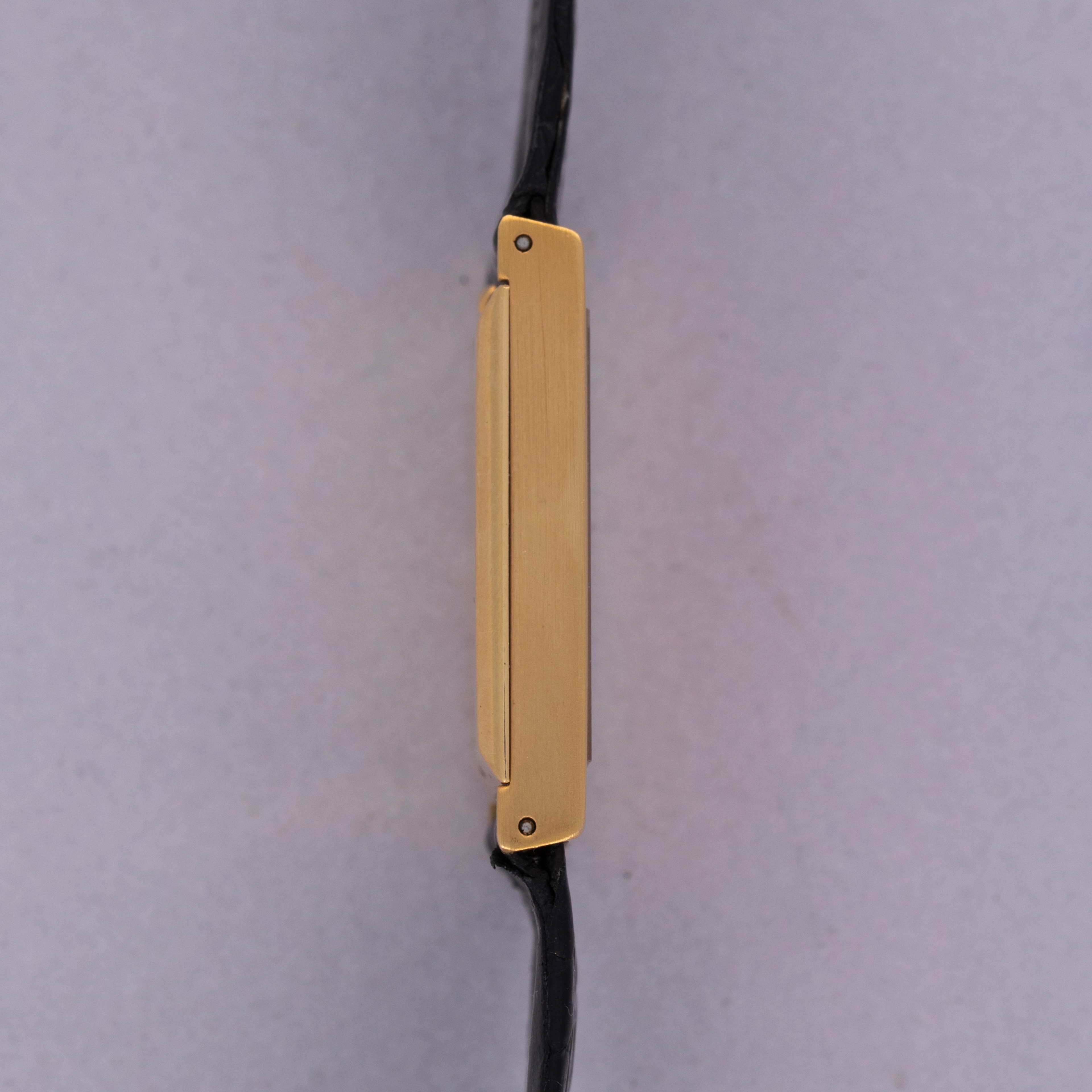 Featuring a rectangular design with a flat bezel and sharp corners, the ref. 4014 wears much like a Cartier Tank but with an even more seemless presence thanks to its complete lack of lugs.