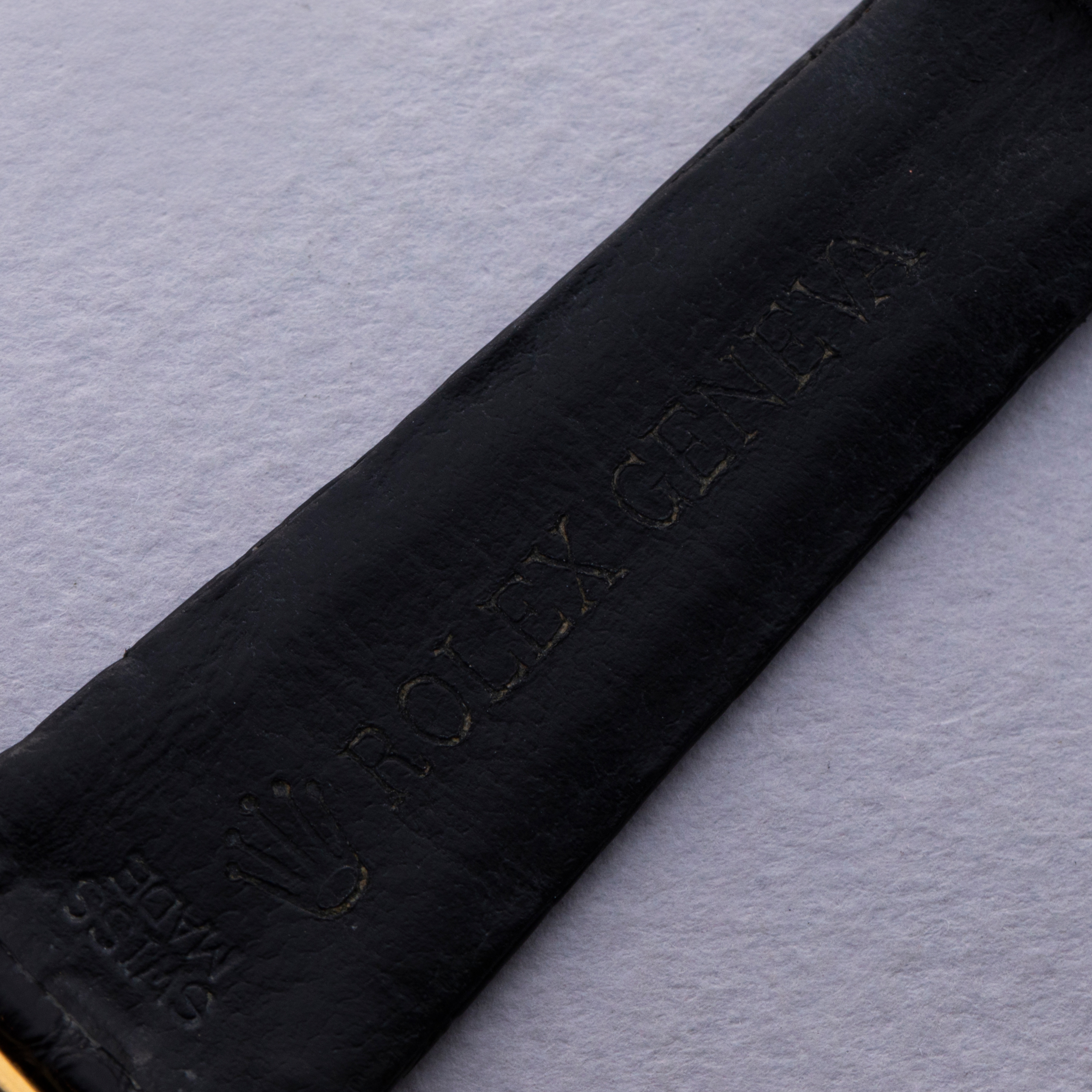 Watch is in very good overall condition. Case shows signs of wear and previous polishing, with soft surfaces edges and some surface wear. Caseback hallmark is visible, as is the Rolex cornet, but the serial number on the lower edge has been worn to the point only 6 of the digits are visible with a loupe. The original orange dial is in very good condition. Edge of dial has some areas of discoloration and scratches. Surface has light spotting visible in some angles. Watch comes with a Rolex signed plated tang buckle.