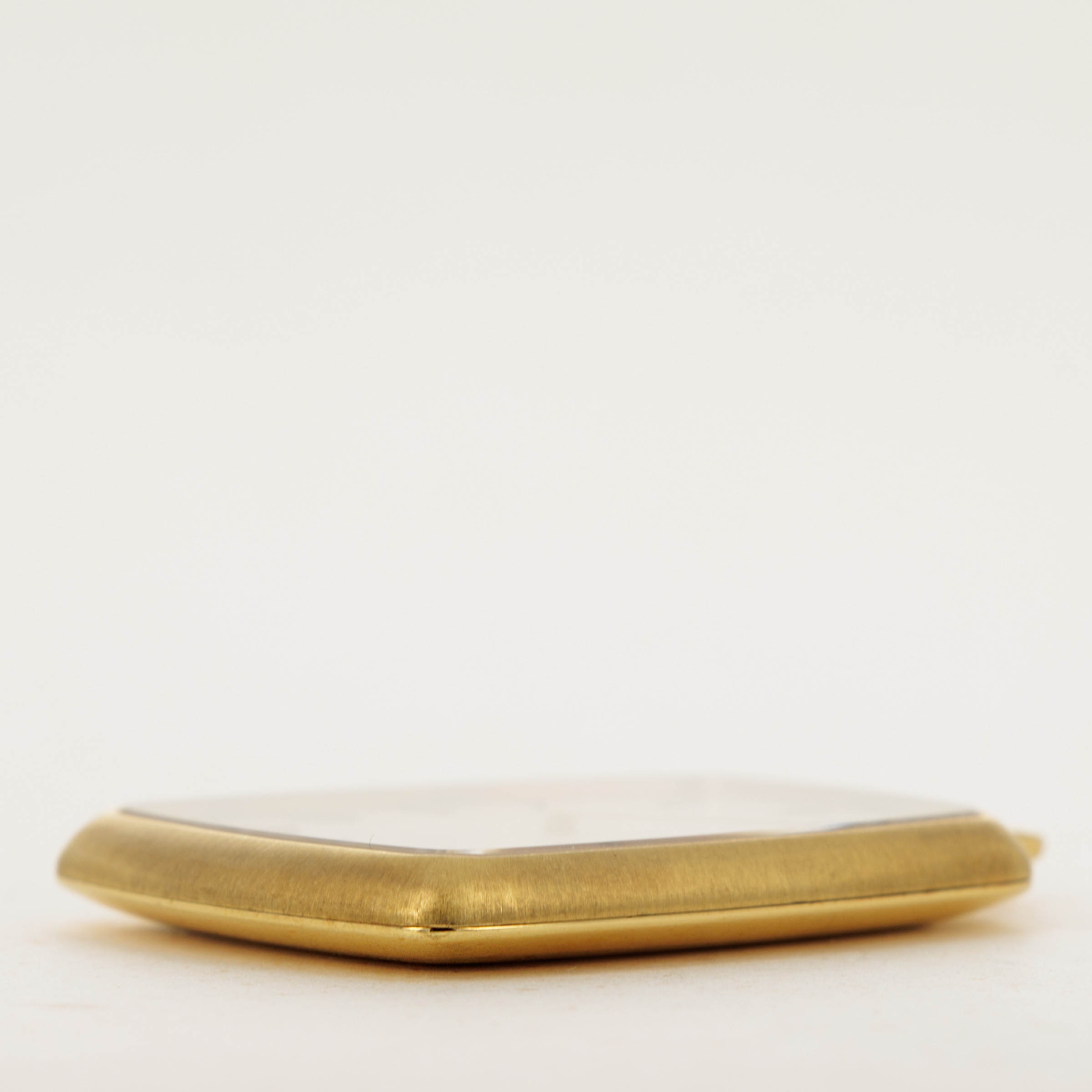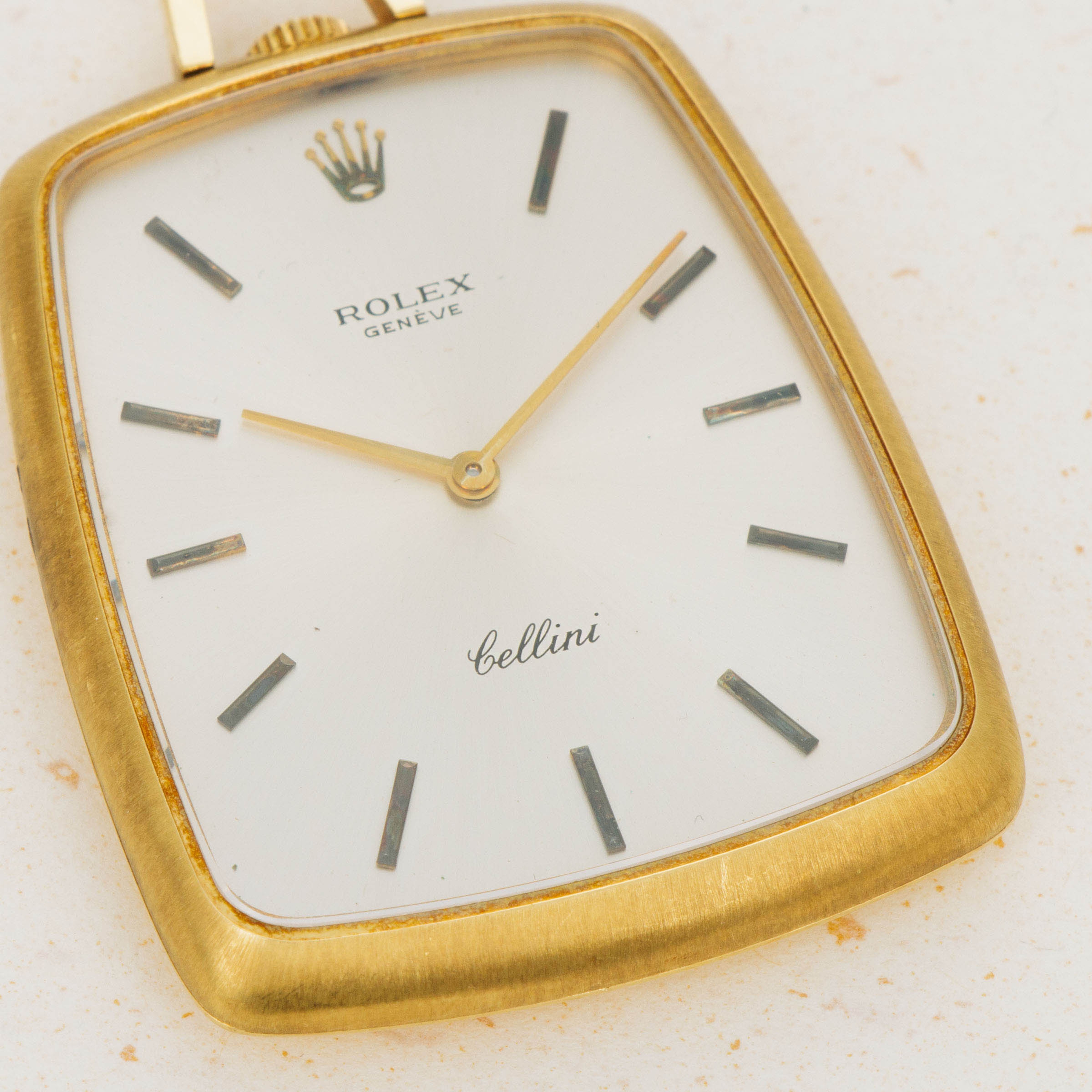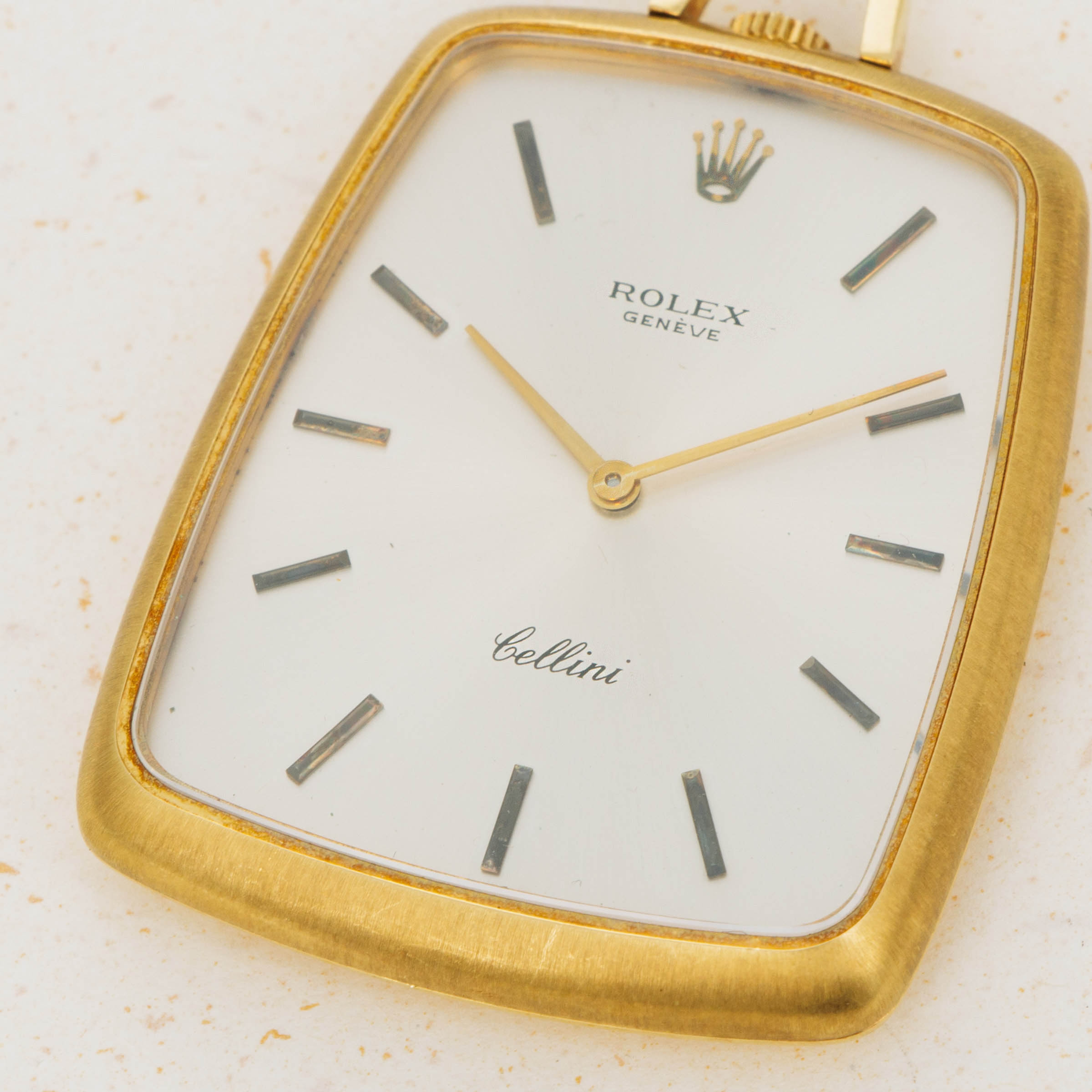 While they might be best-known for their impeccably-made tool watches and variety of luxurious dress watches, Rolex have a history of making other timepieces too, namely pocket watches like the Cellini ref. 3728 that we have here. Launched as part of the Cellini collection, which was itself a collection created to offer Rolex’s customers with a style of watch that Rolex had not offered, the ref. 3728 is an understated pocket watch that breaks away from Rolex’s typical design language. Thin with a clean silver dial and an interesting shape whereby its base is wider than its top, the ref. 3728 is a timepiece that challenges Rolex’s typical design language. Made of 18kt yellow gold that has accumulated a rich patina throughout, this example is as fine a ref. 3728 as you could ever hope to find.