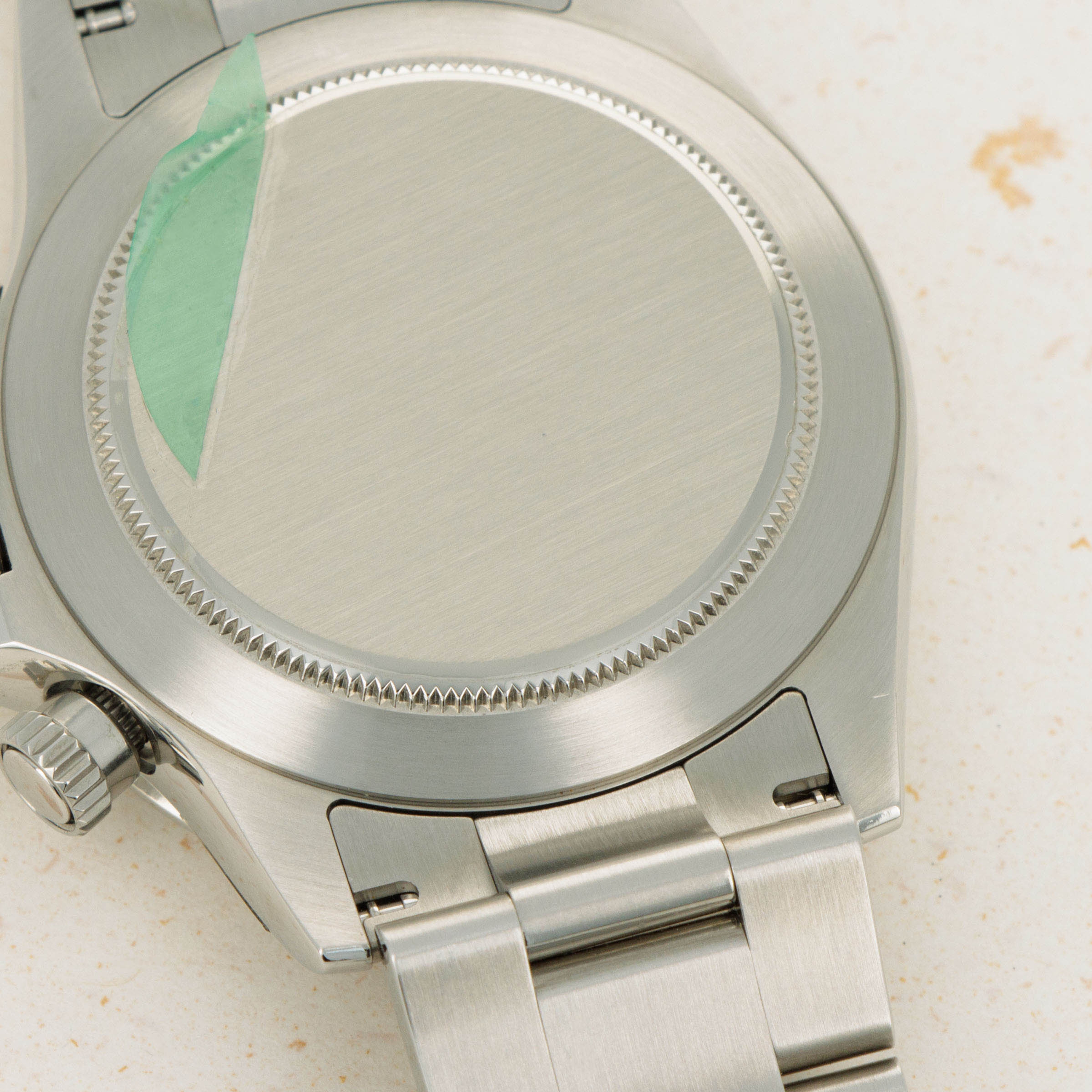 Watch is in like new condition with plastic on the case still. Minor springbar marks are visible on the back of lugs. There are some signs of handling visible on case where some of the plastic has been removed.