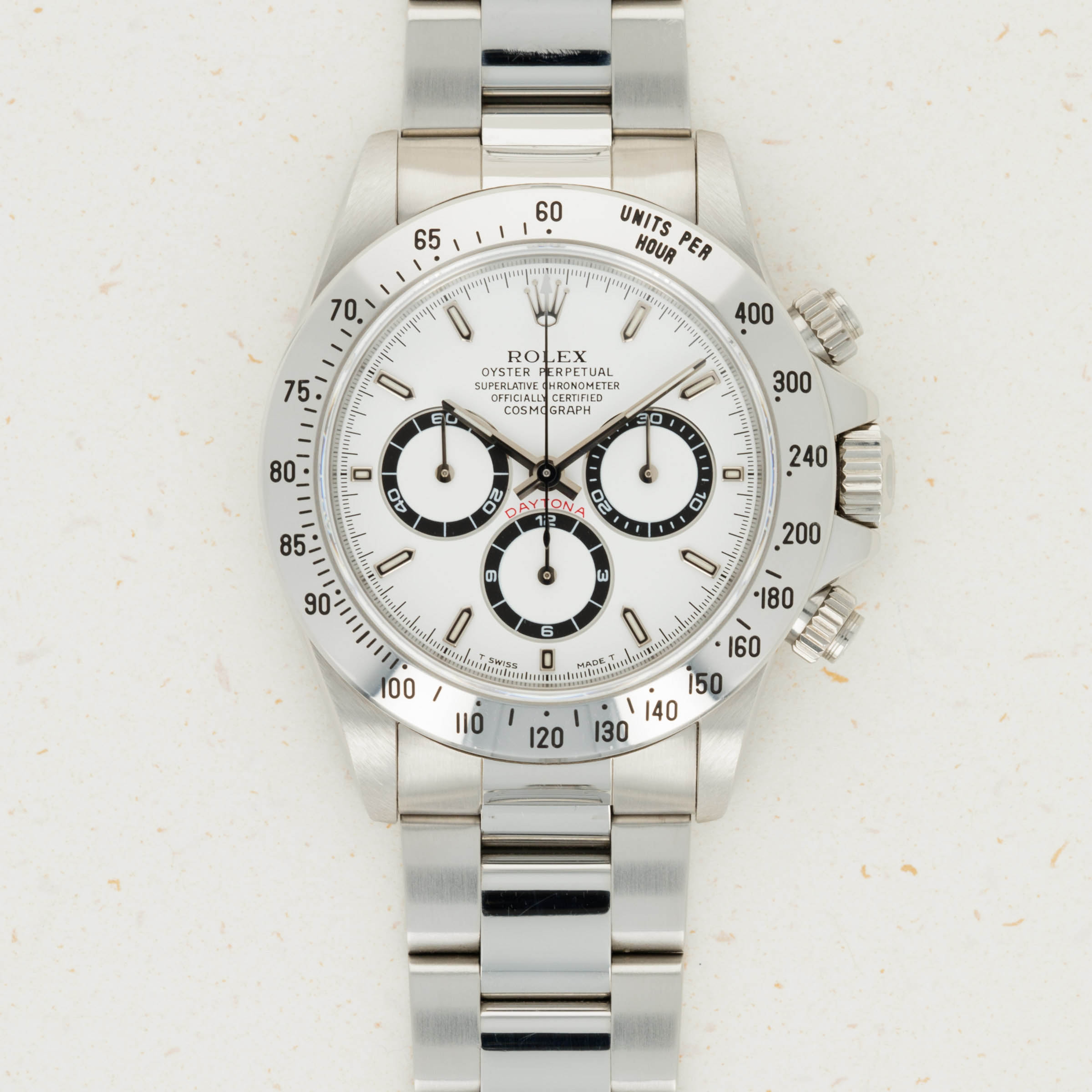 Fitted with the Daytona's most sought-after dial variant, this ref. 16520 features the white "Panda" dial with its charming tritium lume.