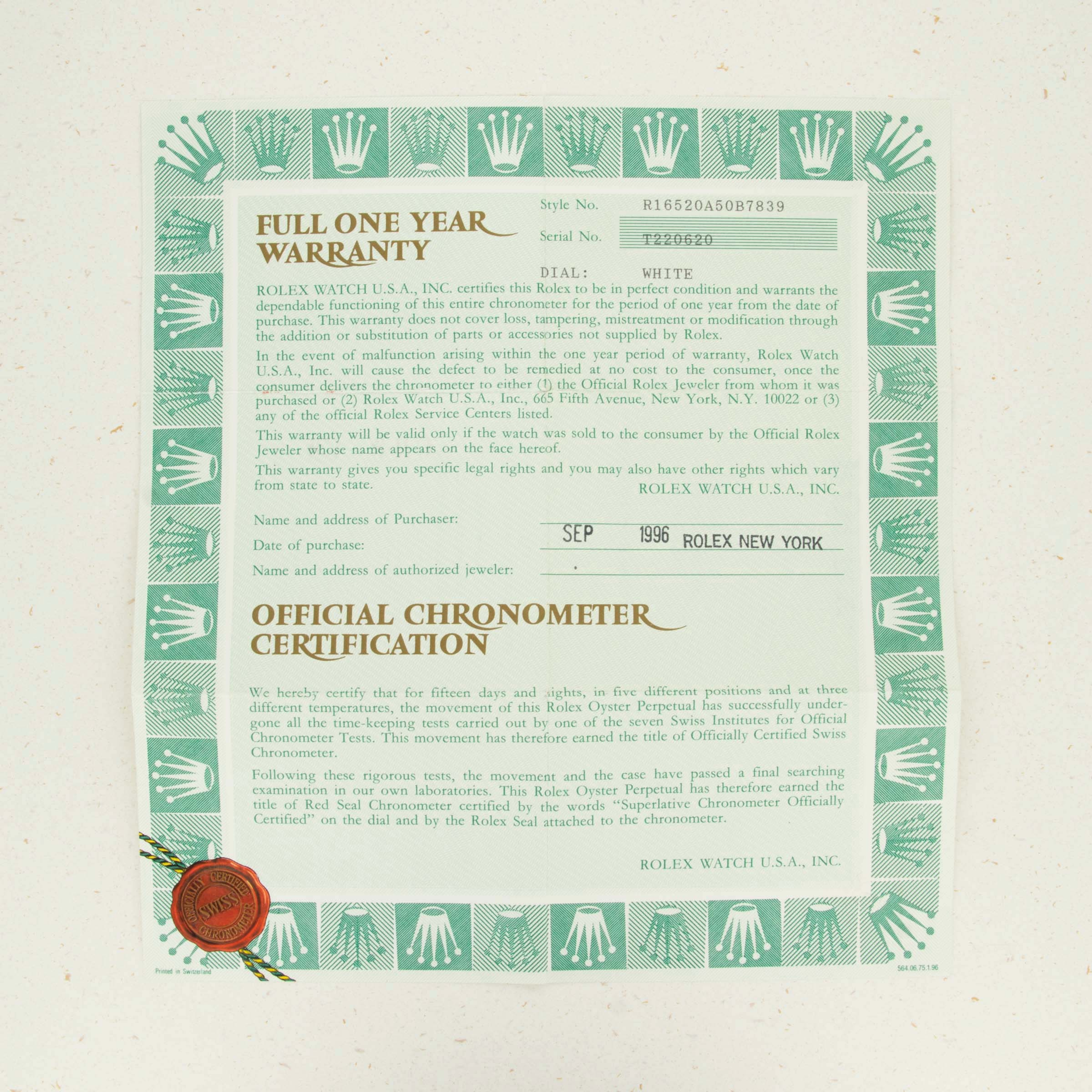 This reading was taken (crown down) with a ONEOF Accuracy Boutique Edition timing machine at time of cataloging. It is provided as a courtesy only, and shall not be construed as a warranty or guarantee of any kind. Please refer to our terms and conditions of sale for more information.