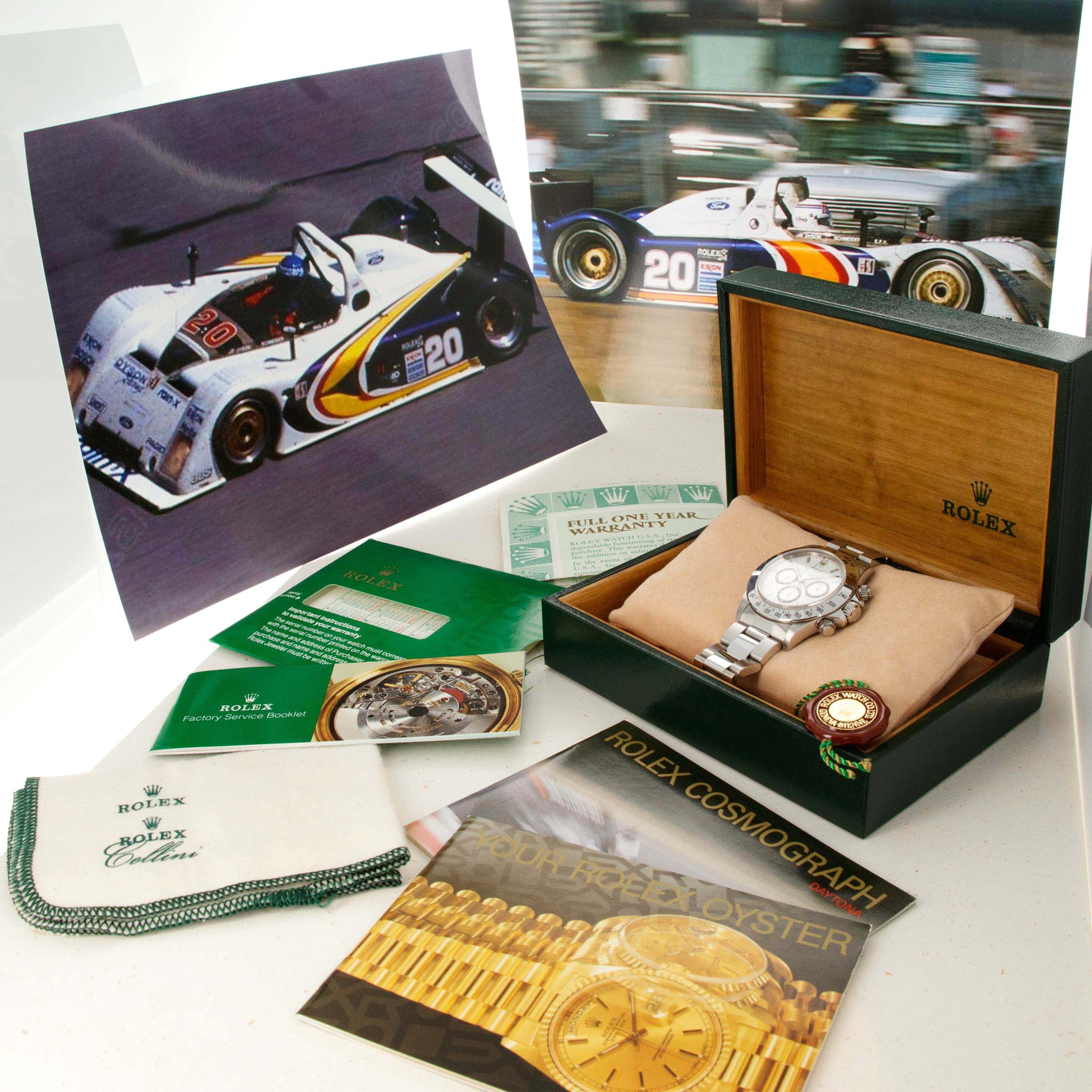Watch, Box, Papers, Booklets and Daytona Race Photographs
