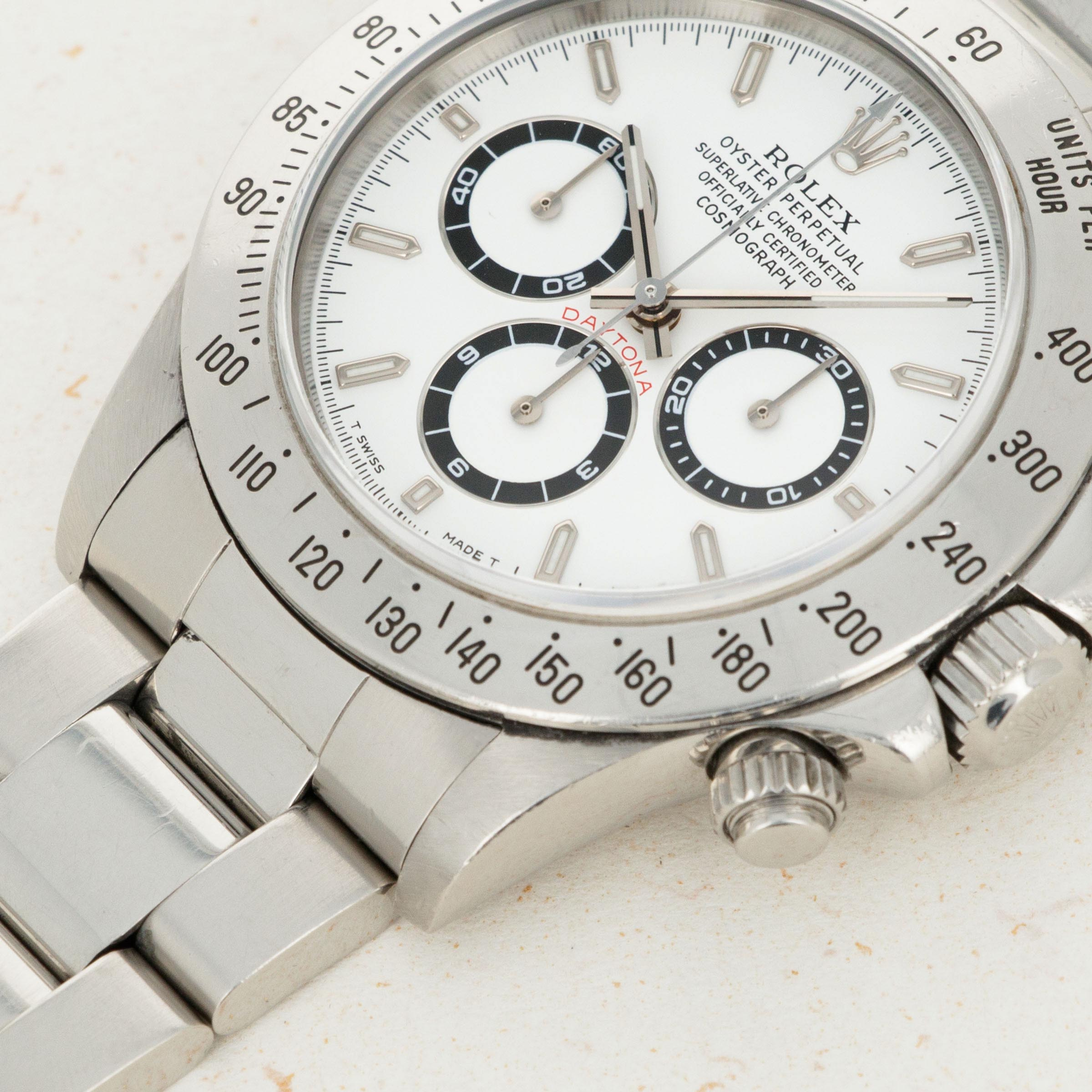 Offered with the Daytona's most sought-after dial, this example's pristine white dial is in truly stunning condition with perfect luminescent material and graphics.