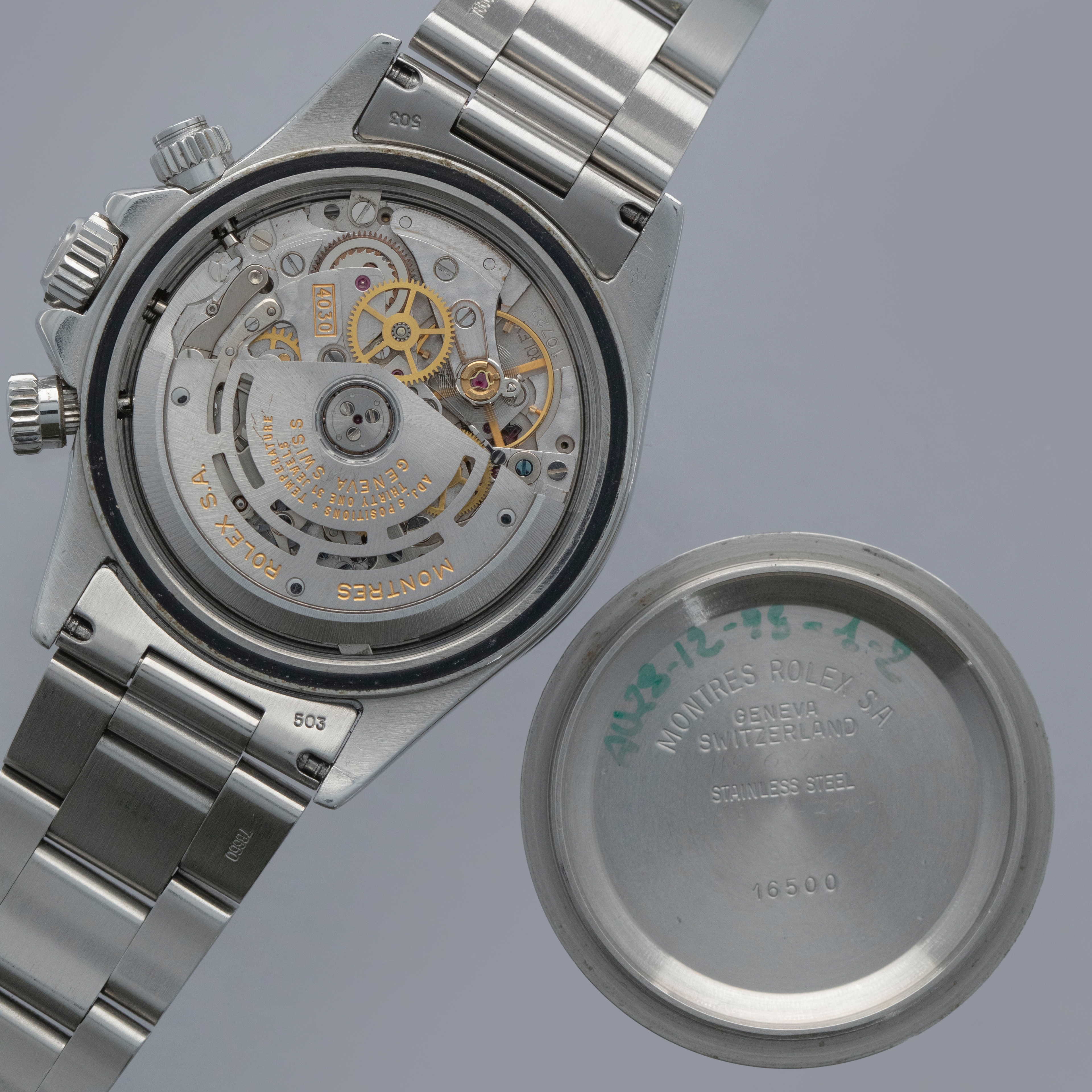 The very thing that made the Daytona so highly-revered in watchmaking circles was its movement. The Zenith-based cal. 4030 was used in the Daytona from 1988-2000, and it oscillates at 28,800 beats per minute. This was the last time Rolex was to use a movement not designed in-house.