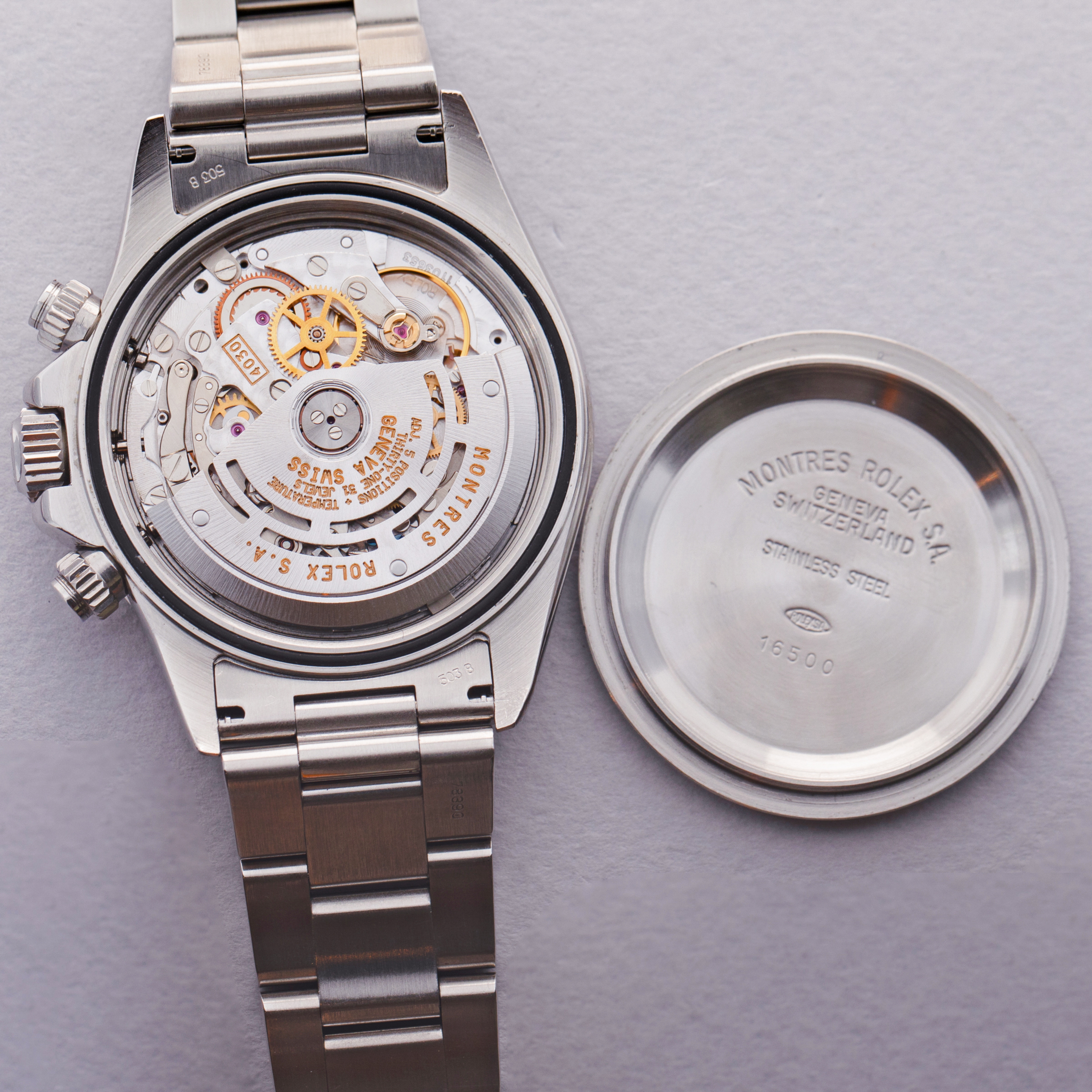 The very thing that these Daytonas are so highly-revered in watchmaking circles is its movement. The Zenith-based cal. 4030 was used in the Daytona from 1988-2000 and it oscillates at 28,800 beats per minute. This was the last time Rolex was to use a movement not designed in-house.