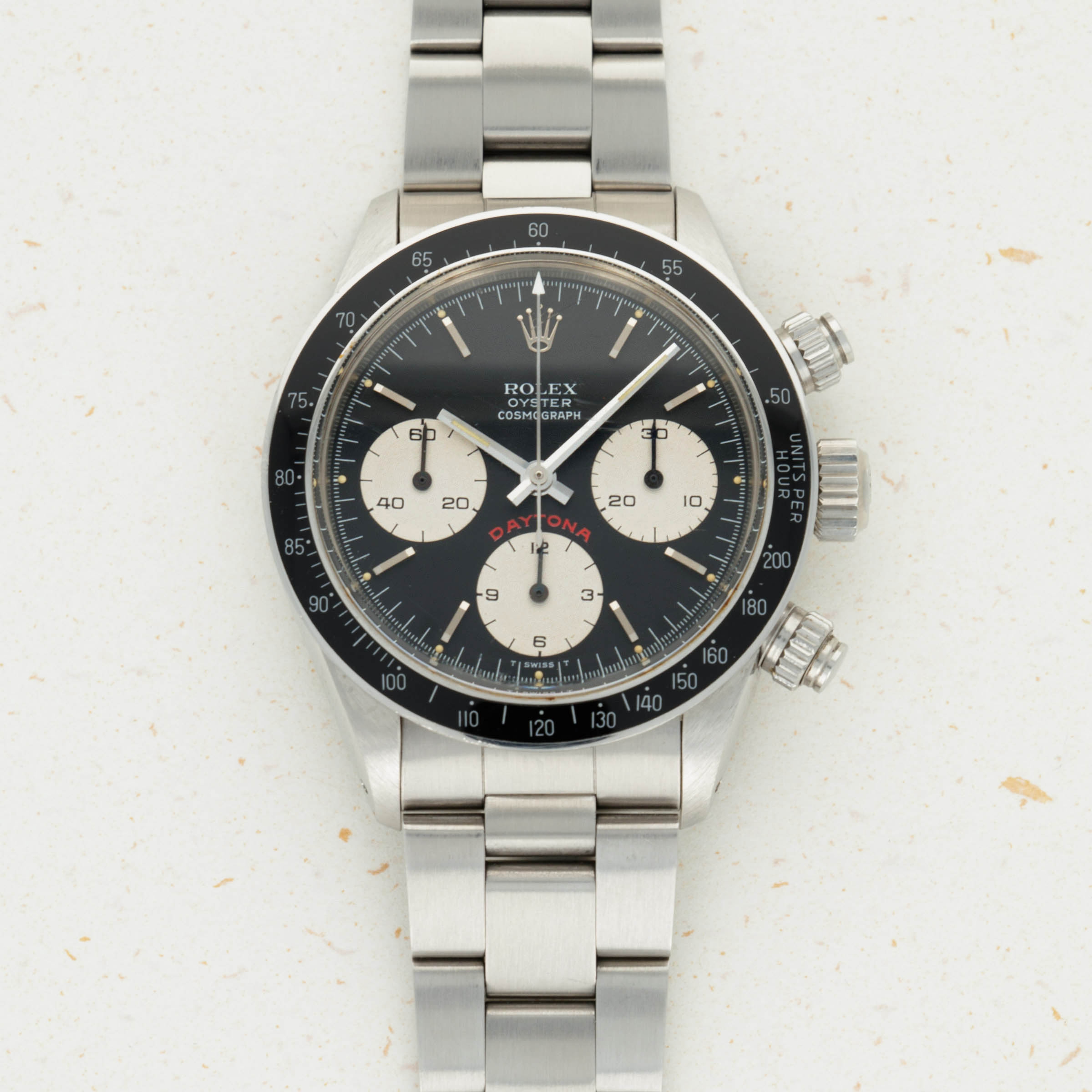 Famed as one of the most desirable Daytona variants, the ref. 6263 Big Red is nicknamed after the "Big Red" Daytona inscription above its 12-hour chronograph register. This particular example has a gorgeous dial with perfect domed luminous dots.