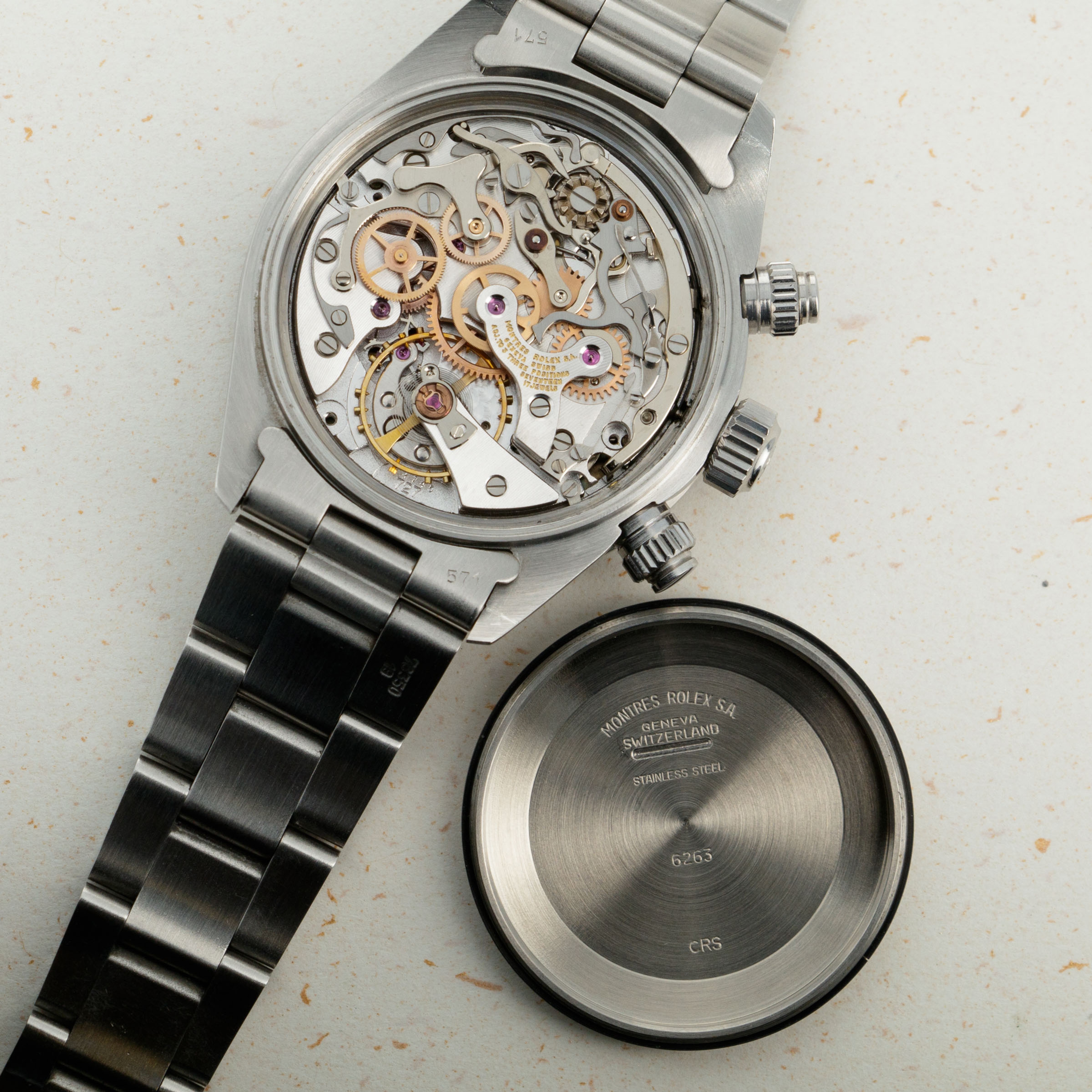 Sitting within the pantheon of greats, the Rolex Daytona is a legendary watch that every watch lover can admire. With its long history, a lengthy list of famous wearers, and an array of intricacies, the Daytona has become the most sought-after timepiece the Genevan Giants have offered. Releasing the first generation Daytona in 1963, this legendary watch was made famous by the iconic actor and racecar driver Paul Newman following some years of obscurity. Among the long list of Daytona references we have today, the first generation four-digit references are the most desirable, with the ref. 6263 we have here residing as one of the best-known. Released in 1971 and produced until 1988 alongside the ref. 6265, the ref. 6263 was the last of the manually wound Daytona references to be equipped with a Valjoux movement. One of the last four-digit references to be produced, the ref. 6263 has all of the desirable traits that vintage Daytona collectors look for. Featuring screw-down chronograph pushers that modernize its aesthetic with a screw-down caseback and a black acrylic bezel insert, the ref. 6263 merges the modern Cerachrom bezel Daytona with a rich vintage aesthetic to create a timepiece that delights those who wear it.