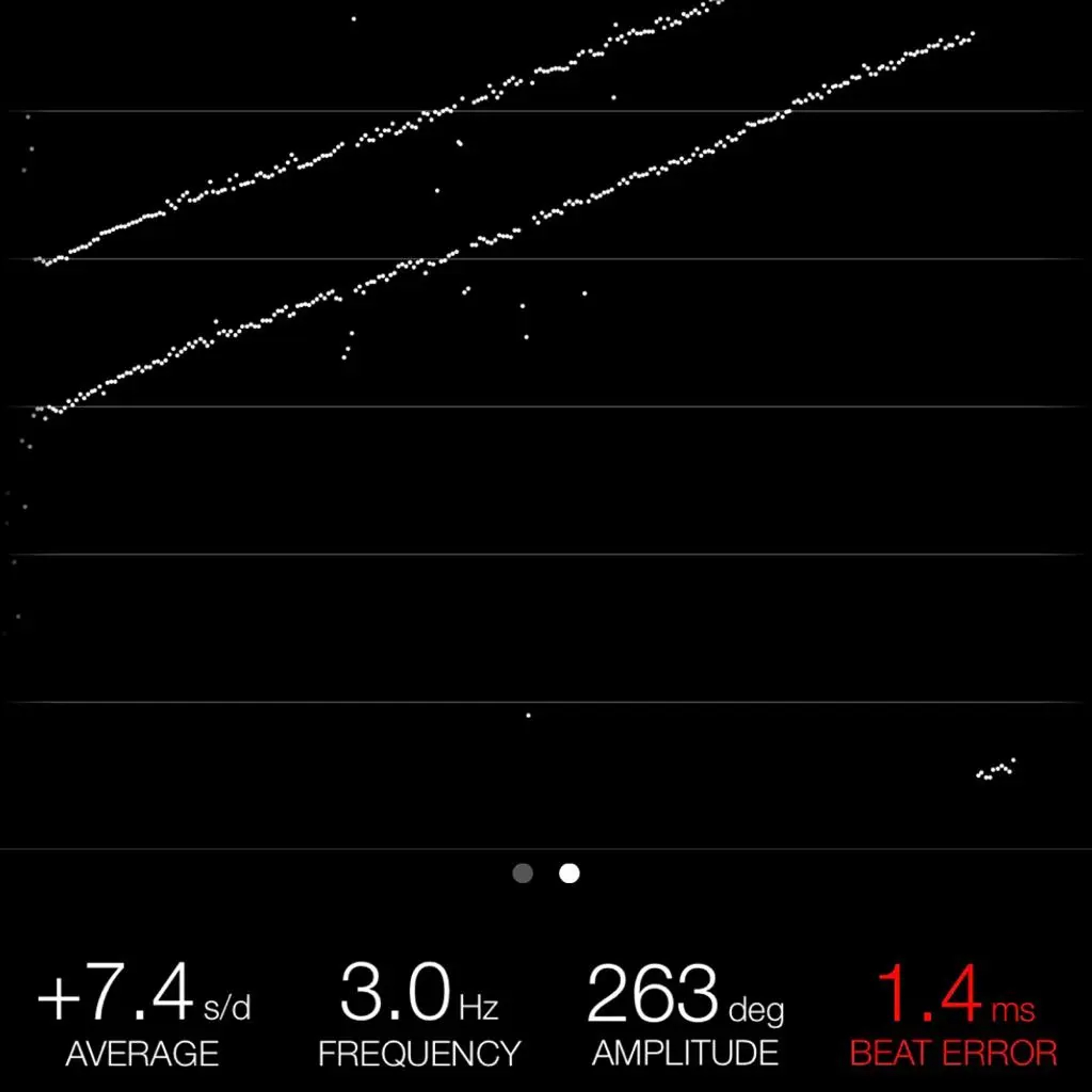 This reading was taken (crown down) with a ONEOF Accuracy Boutique Edition timing machine at time of cataloging. It is provided as a courtesy only, and shall not be construed as a warranty or guarantee of any kind. Please refer to our terms and conditions of sale for more information.