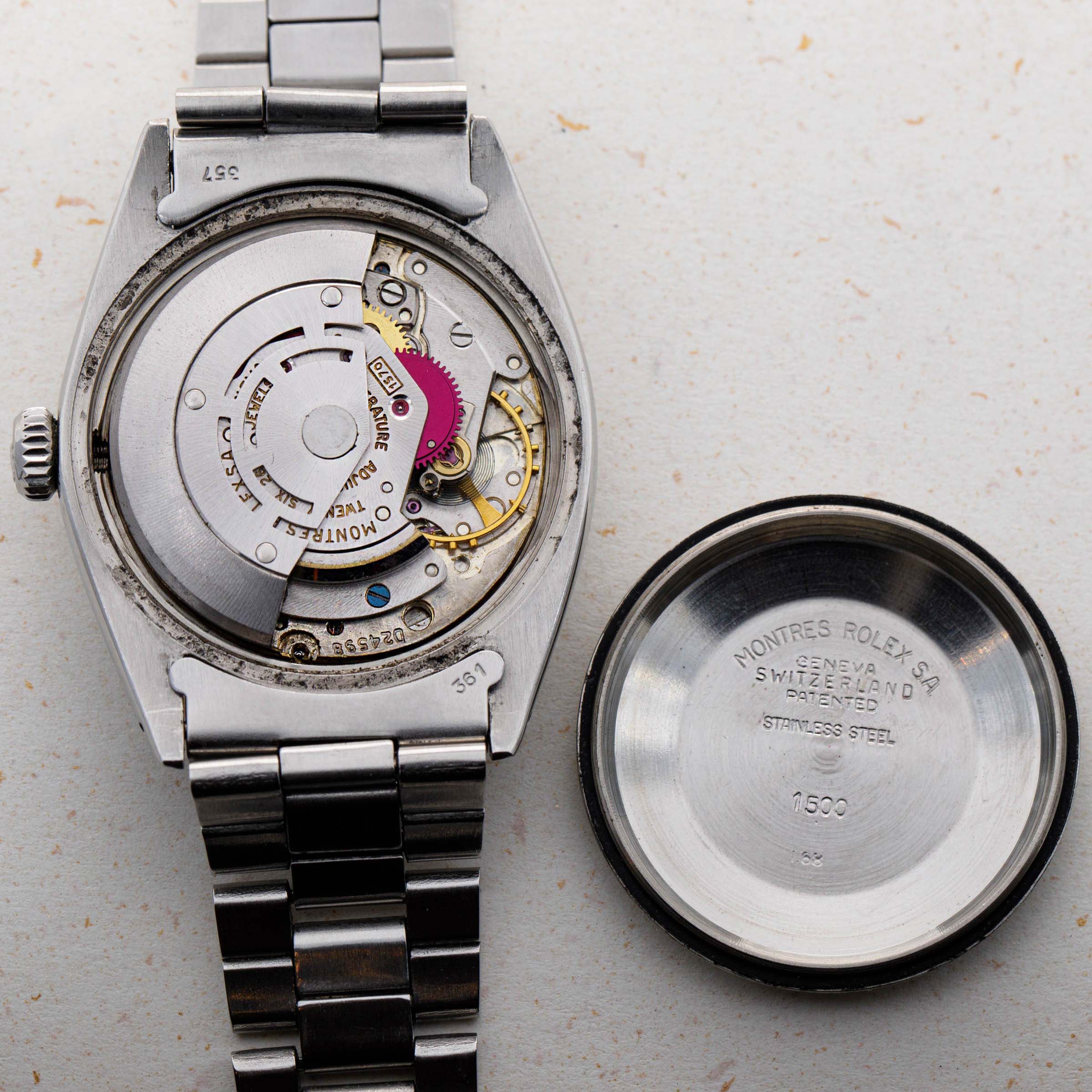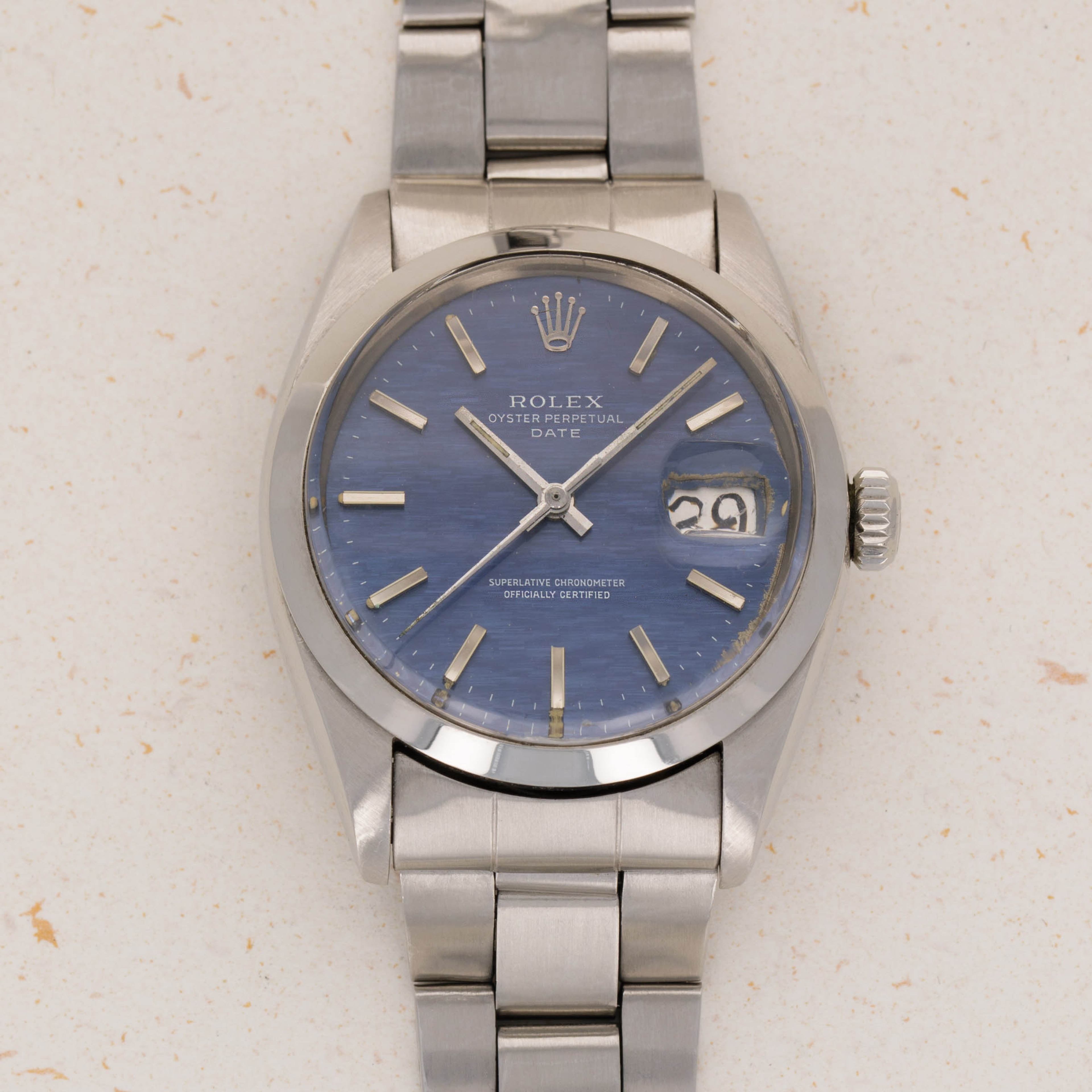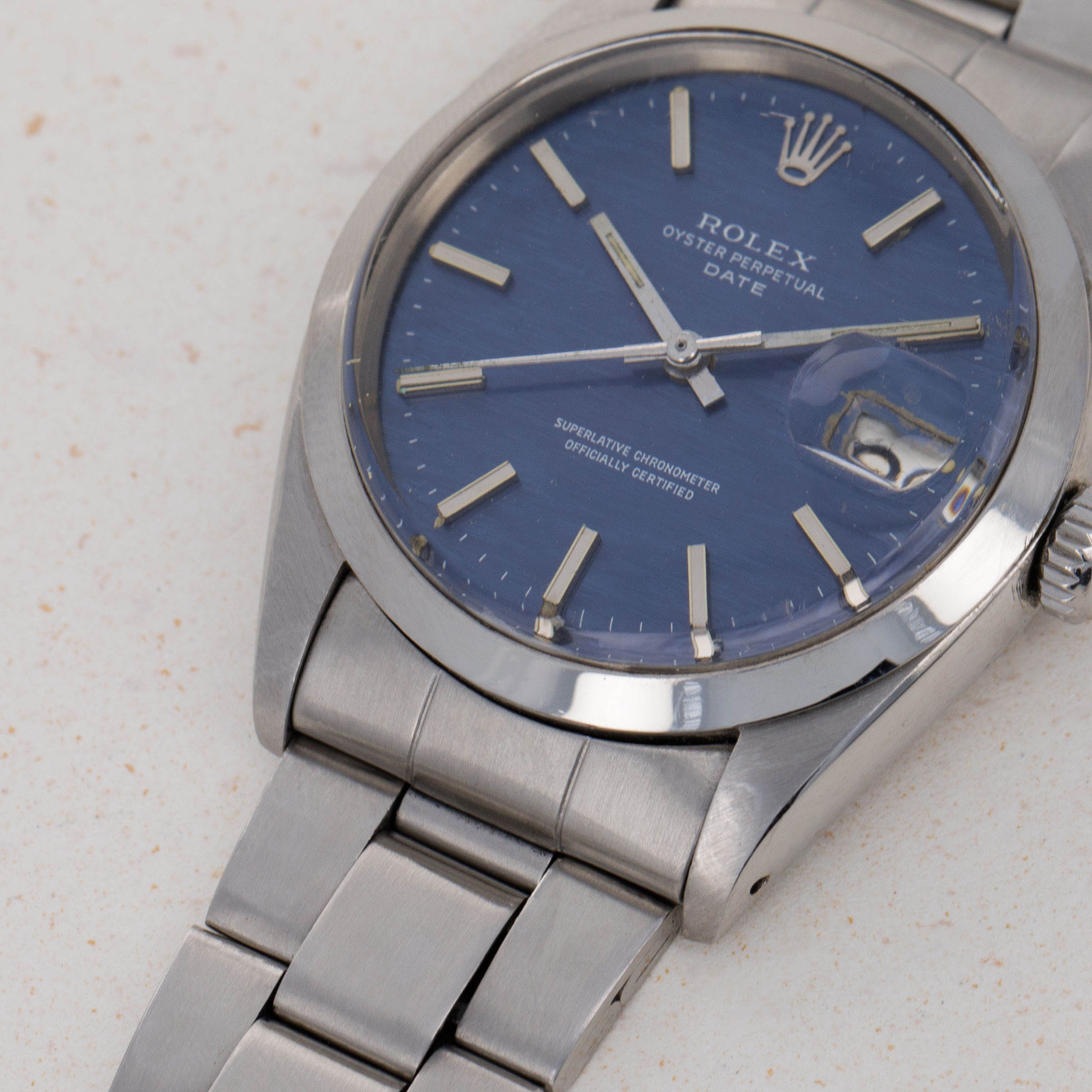 Launched in 1962, the Rolex Oyster Perpetual Date was Rolex's entry-level watch at the time and was designed for daily use. Most often cased in stainless steel, these watches were true workhorses with their flat steel bezel and rugged design providing protection from daily wear and tear. Similarly specced to the Datejust models of its time, the ref. 1500 featured the same automatic movement, and so boasted a date function and cyclops lens like its more expensive sibling. However, the main point of distinction was that the OP was housed within a slightly smaller 34mm case, as opposed to the Datejust’s 36mm case. Offered with a multitude of dial variants until its discontinuation in the late 1970s, there is certainly a version that would appeal to every taste. A smaller watch by today’s standards but filled with a unique charm, the ref. 1500 was undeterred by its svelte proportions and instead buoyed by the robustness of its design and functionality of its movement, with both elements combining to create a timepiece that will still fit the bill as a daily wearer even for a modern collector to this day.