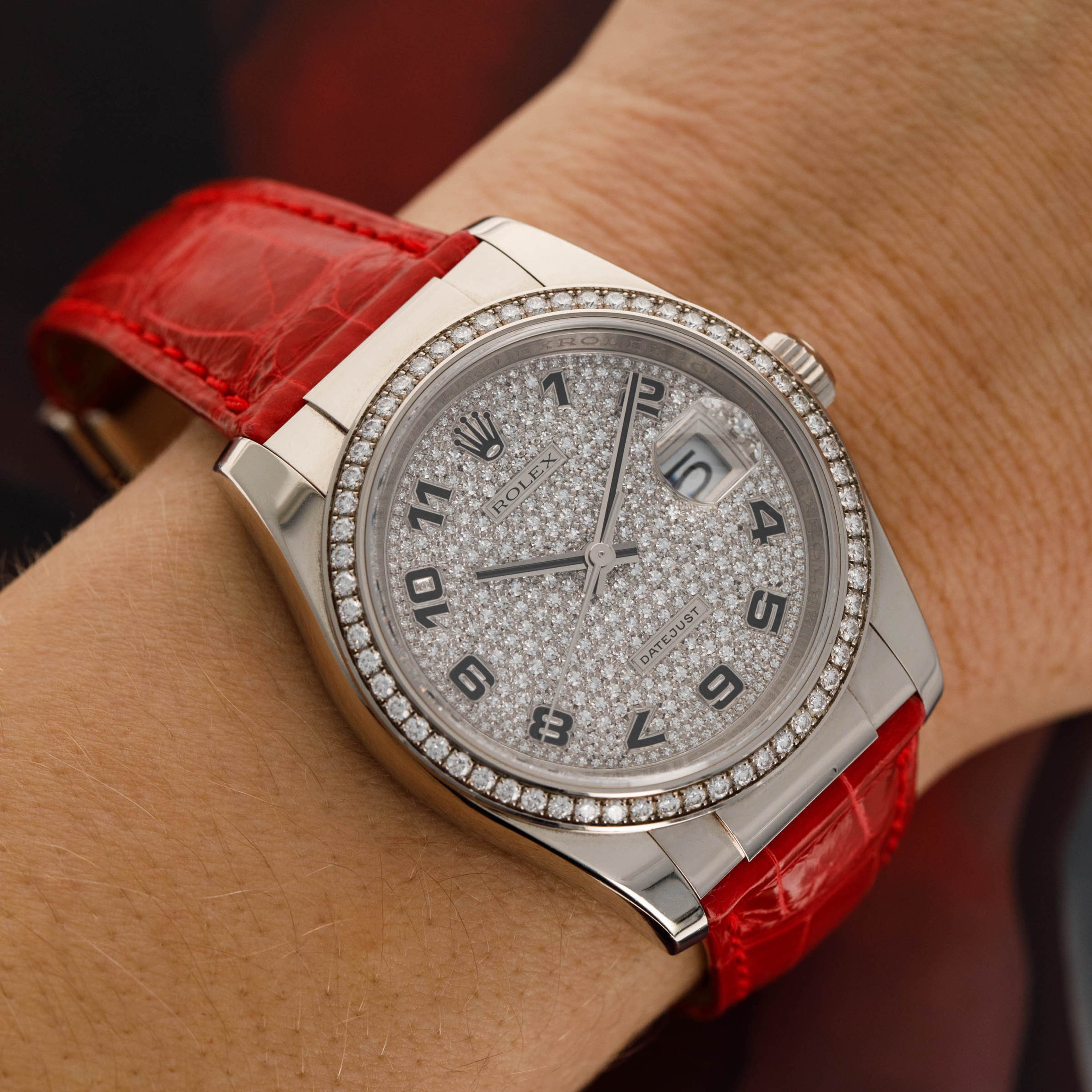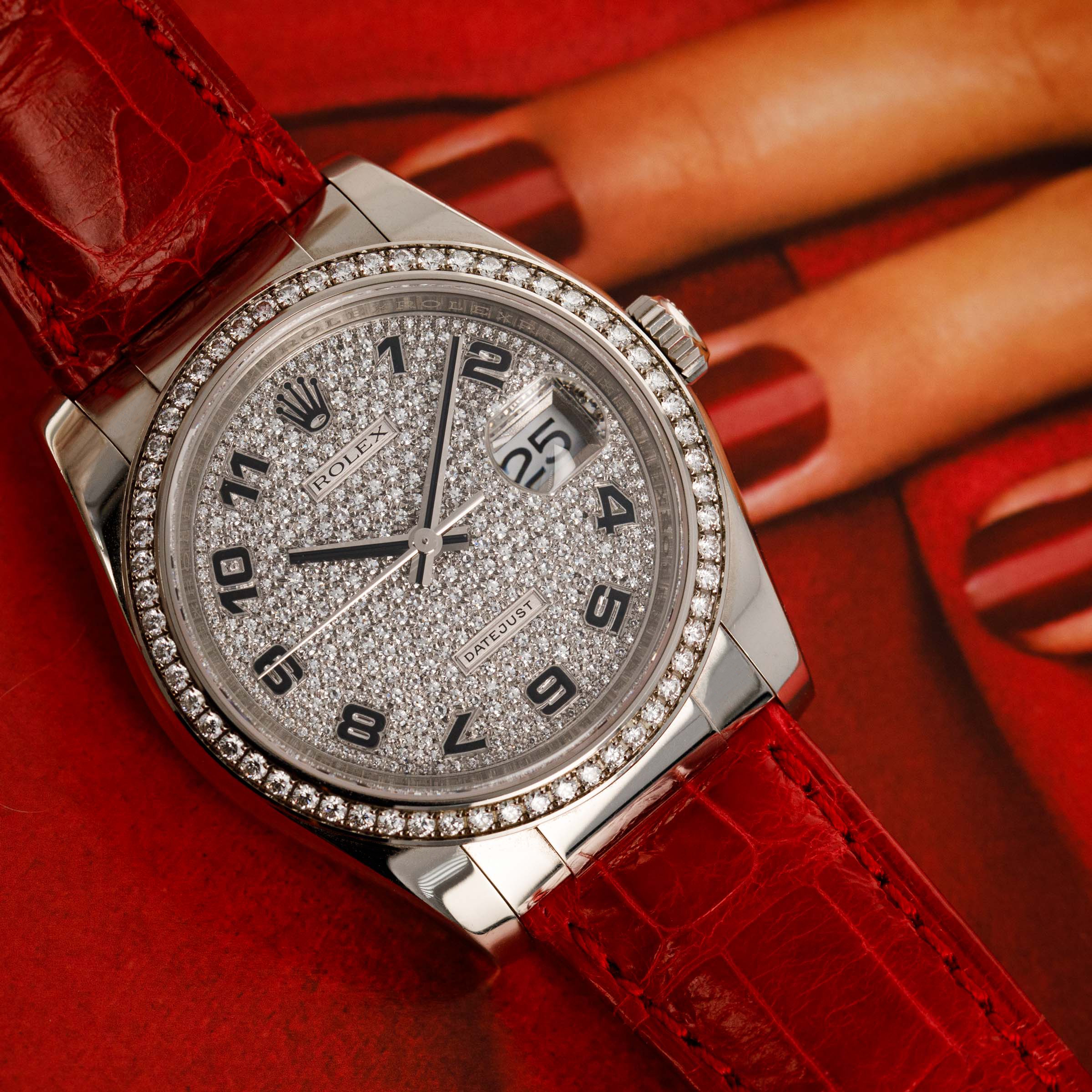 A perfectly understated version of an icon, this precious metal diamond-set Datejust blends one of Rolex's most signature designs with the type of quiet luxury that appeals to so many collectors.