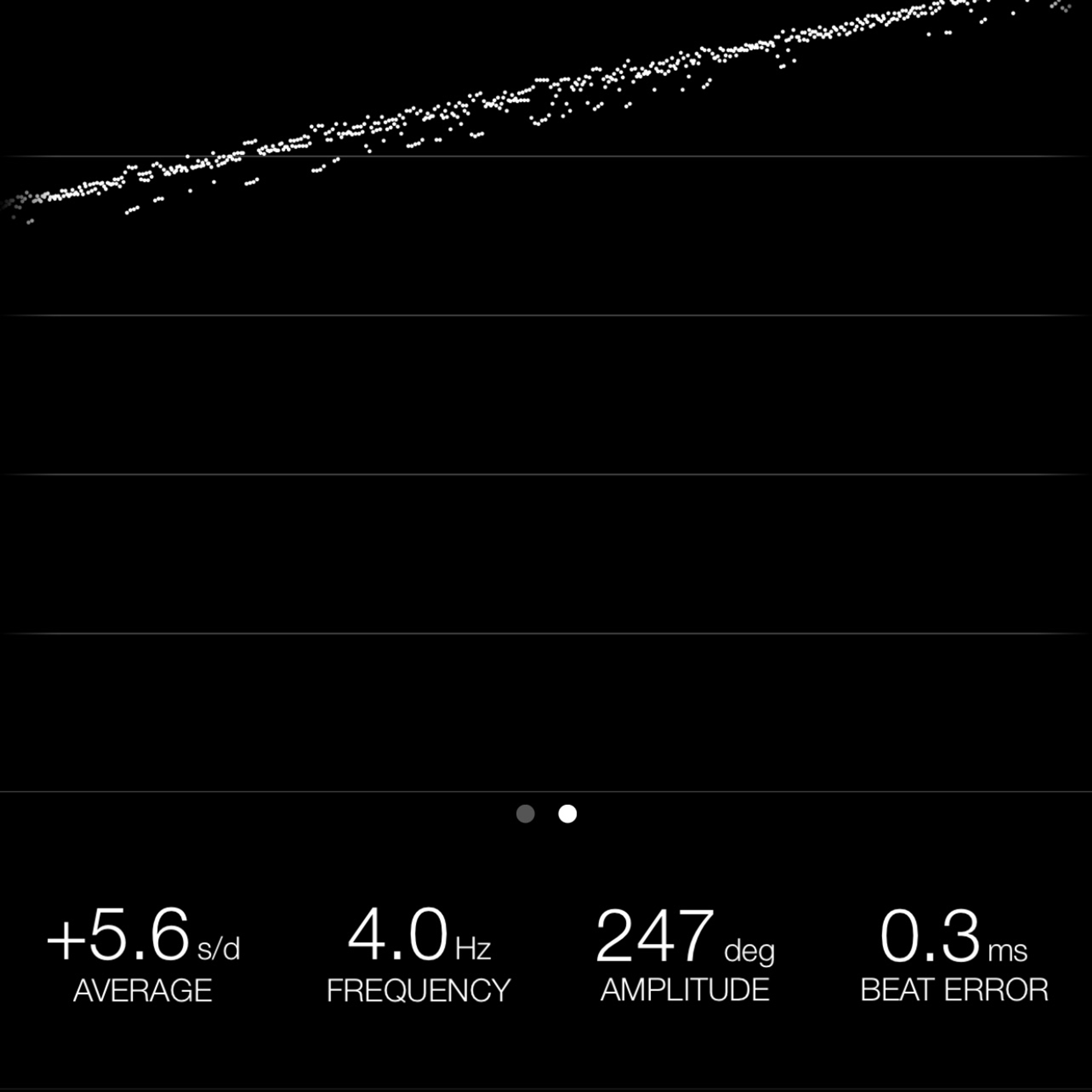 This reading was taken (crown down) with a ONEOF Accuracy Boutique Edition timing machine at time of cataloging. It is provided as a courtesy only, and shall not be construed as a warranty or guarantee of any kind. Please refer to our terms and conditions of sale for more information.