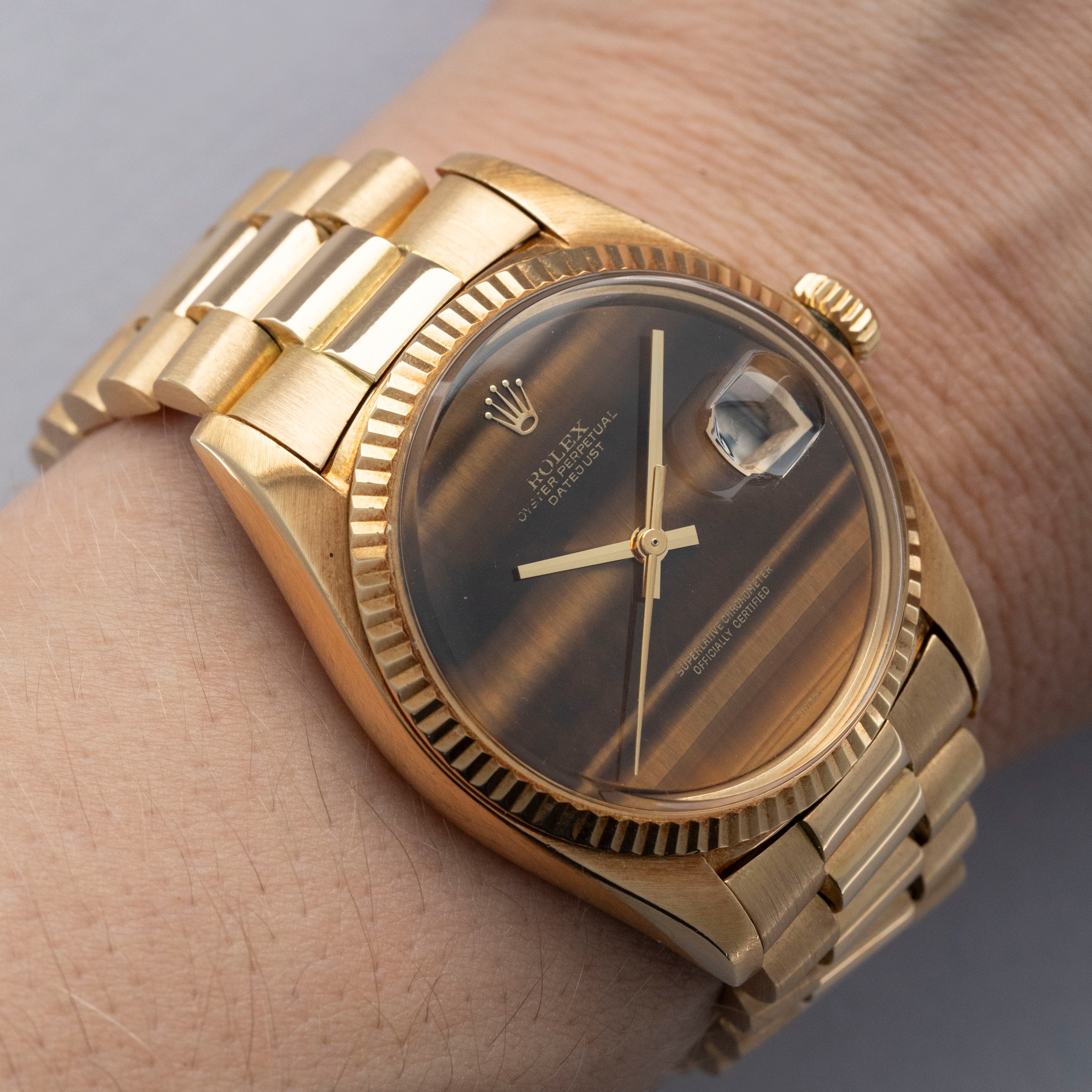 Rolex Datejust 1601 Tigers Eye Stone Dial President Bracelet 18k YG