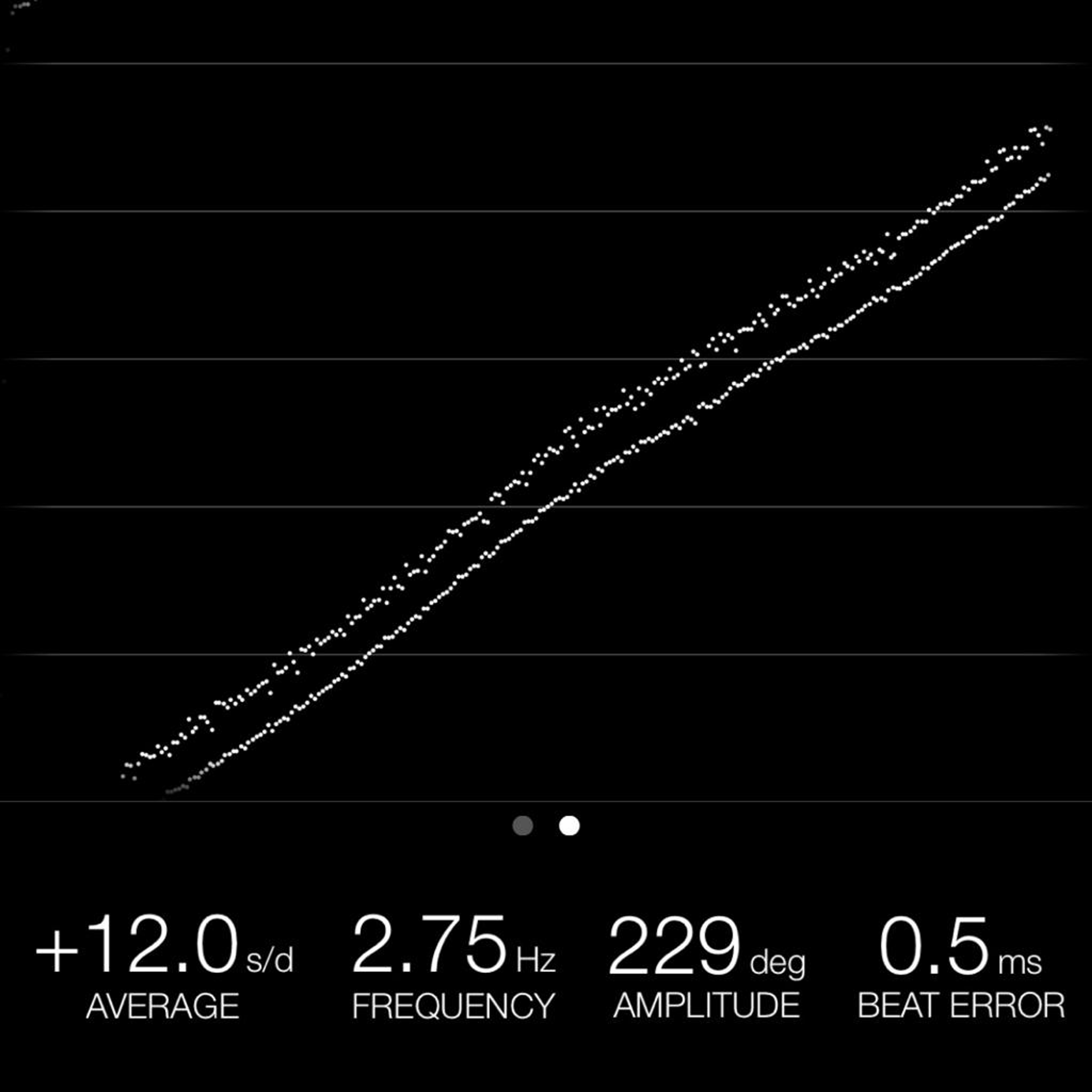 This reading was taken (crown down) with a ONEOF Accuracy Boutique Edition timing machine at time of cataloging. It is provided as a courtesy only, and shall not be construed as a warranty or guarantee of any kind. Please refer to our terms and conditions of sale for more information.