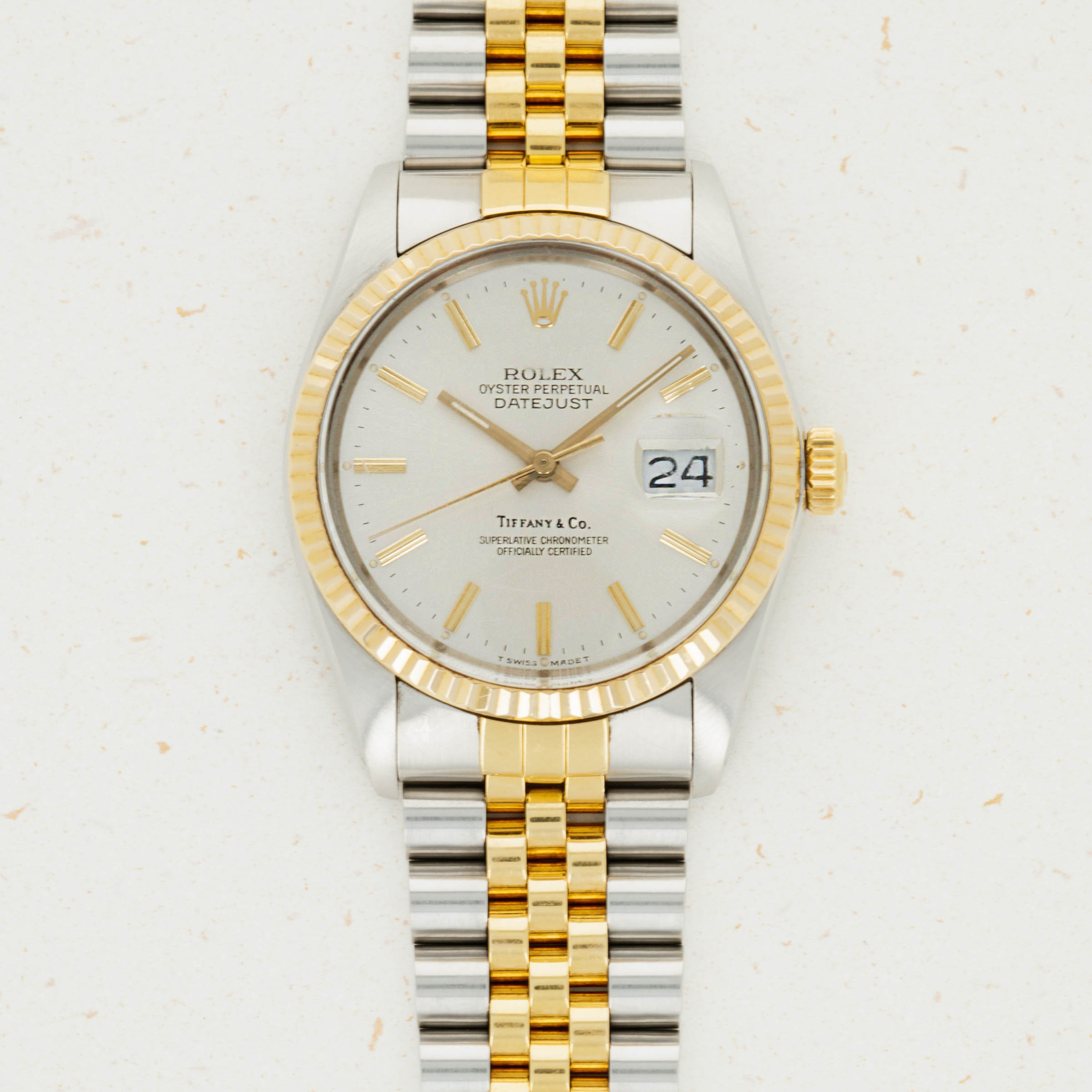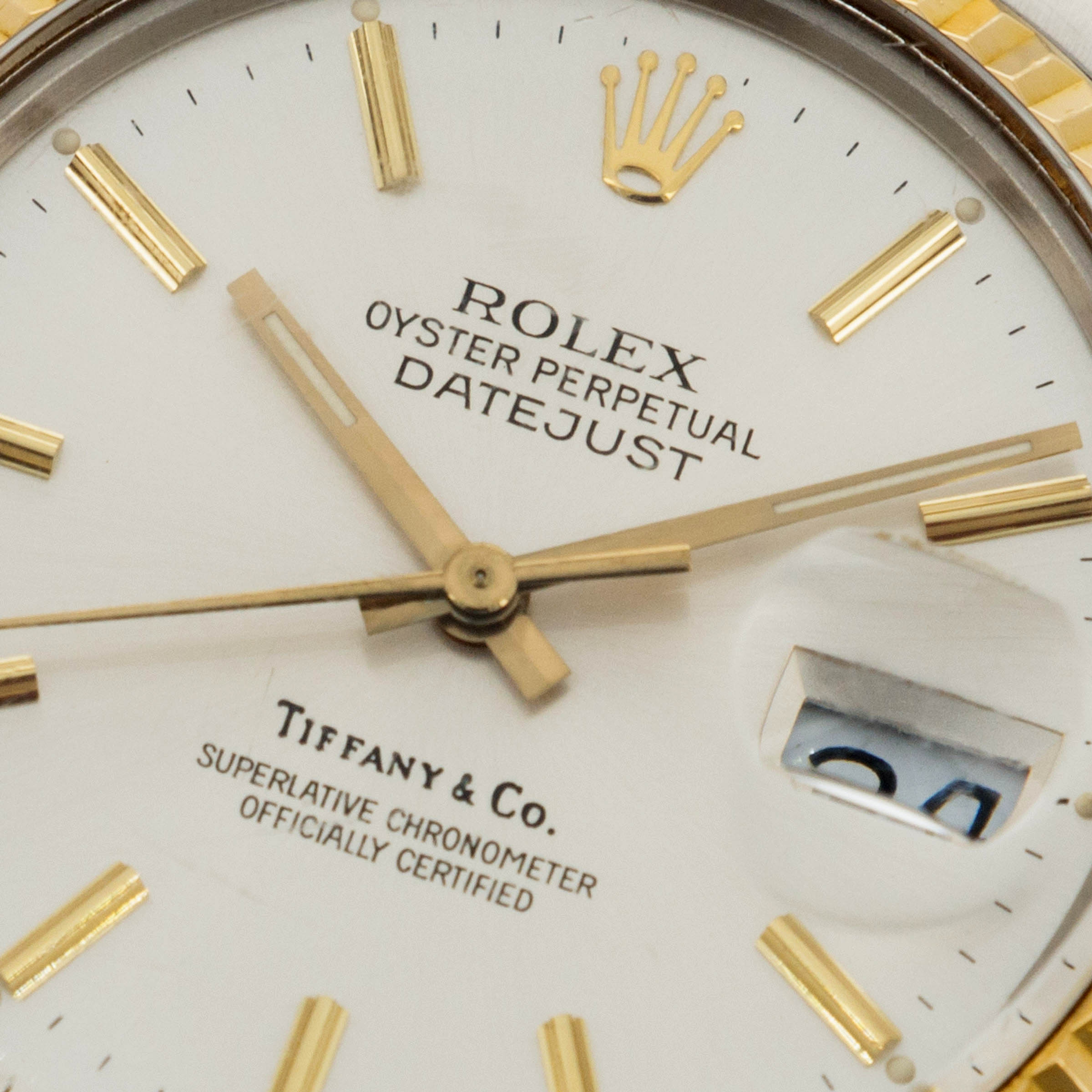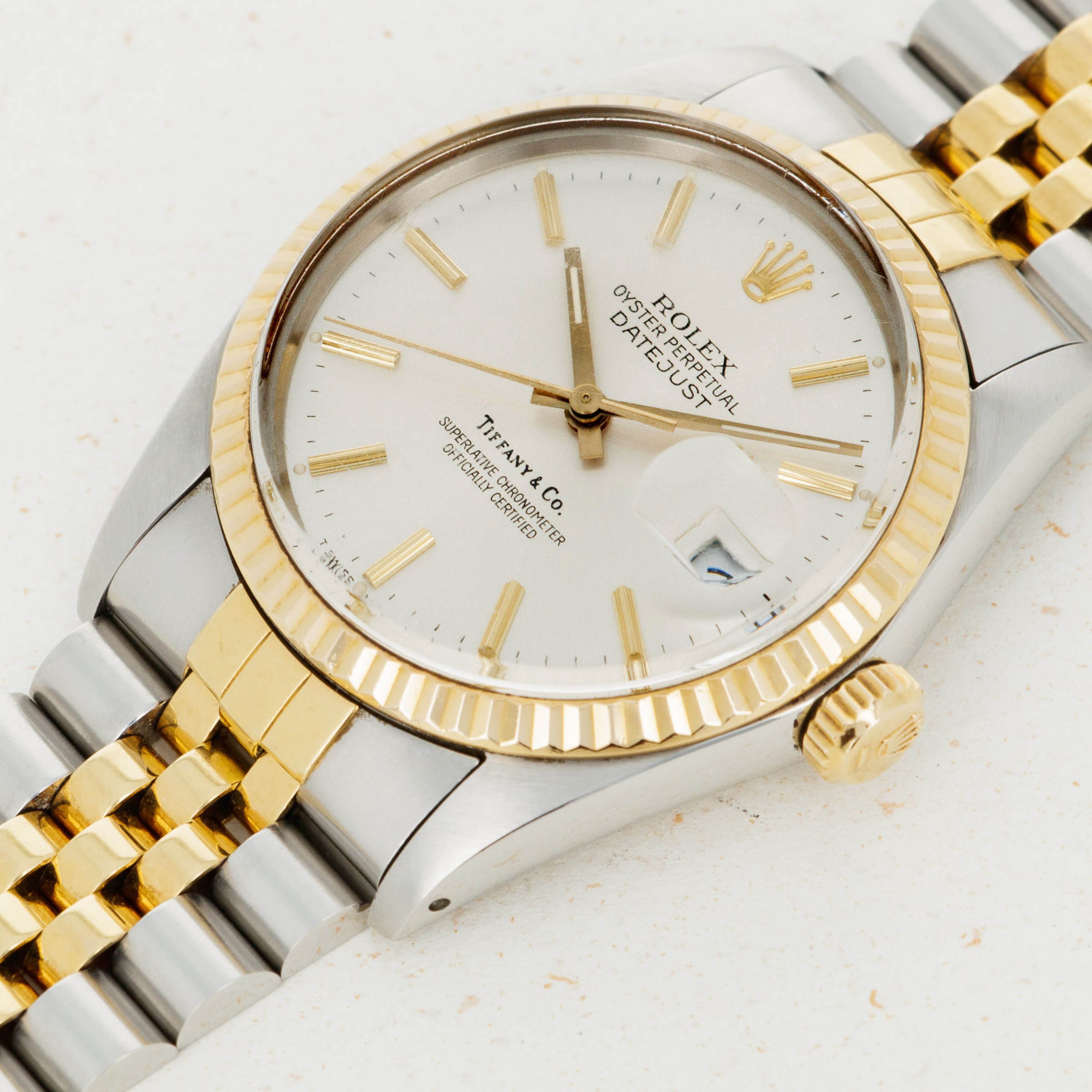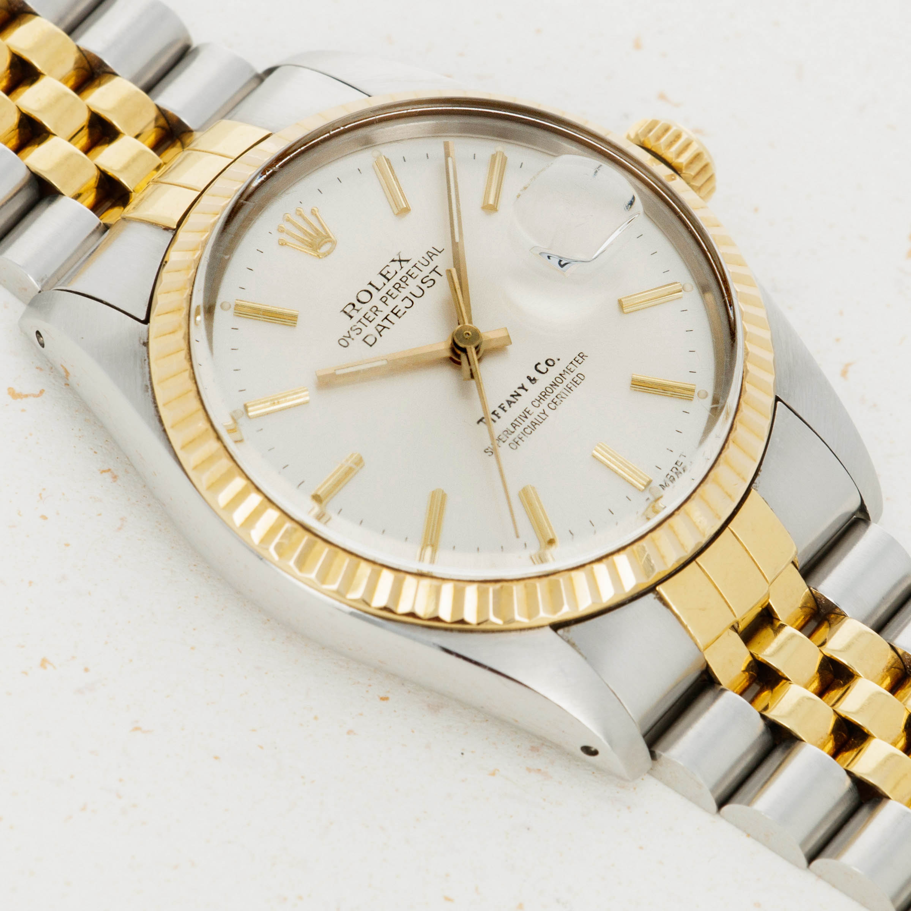 Setting it aside from regular Rolex timepieces from its era, this example bears the logo of famed jeweler Tiffany & Co. at 6 o'clock as a designation of its original point of sale. Rolex and Tiffany's retailer agreement would continue until the early 1990s, with Tiffany-signed dials remaining exceedingly rare and highly-coveted by collectors.