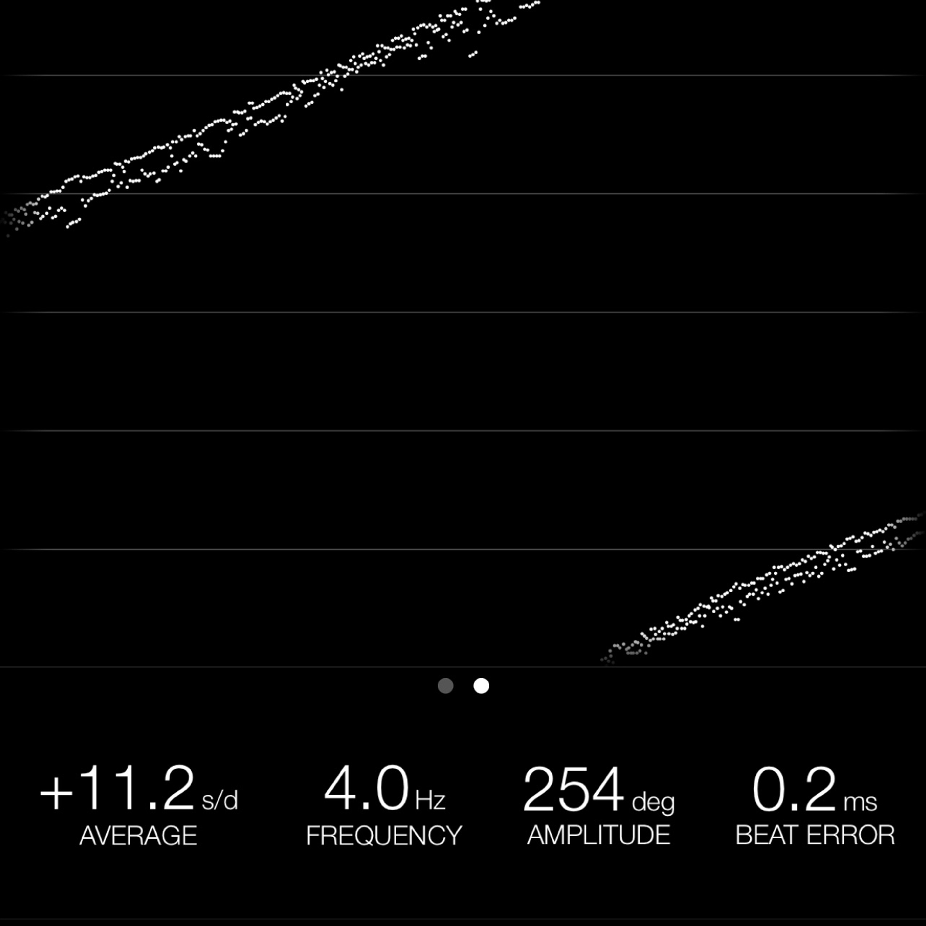 This reading was taken (crown down) with a ONEOF Accuracy Boutique Edition timing machine at time of cataloging. It is provided as a courtesy only, and shall not be construed as a warranty or guarantee of any kind. Please refer to our terms and conditions of sale for more information.