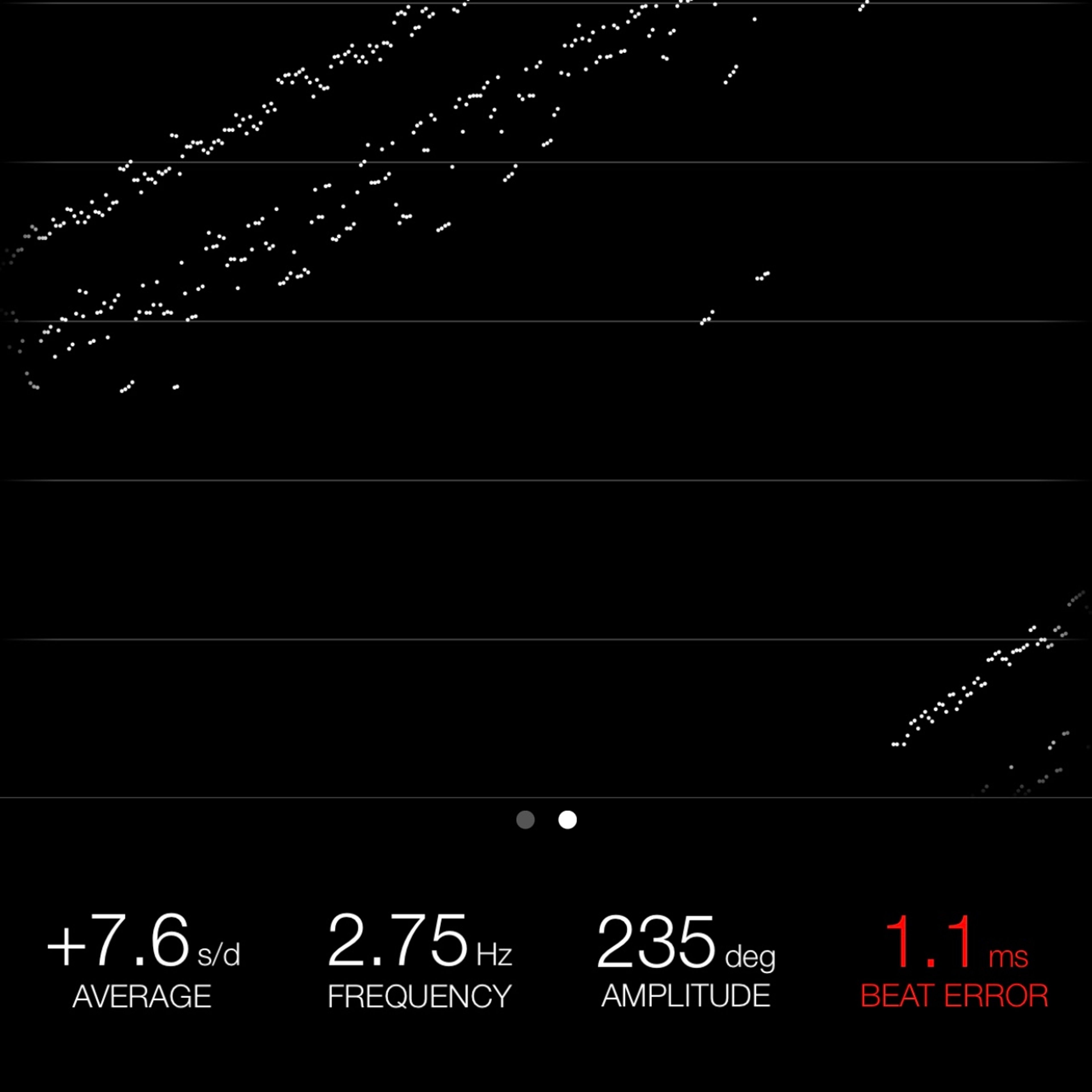 This reading was taken (crown down) with a ONEOF Accuracy Boutique Edition timing machine at time of cataloging. It is provided as a courtesy only, and shall not be construed as a warranty or guarantee of any kind. Please refer to our terms and conditions of sale for more information.