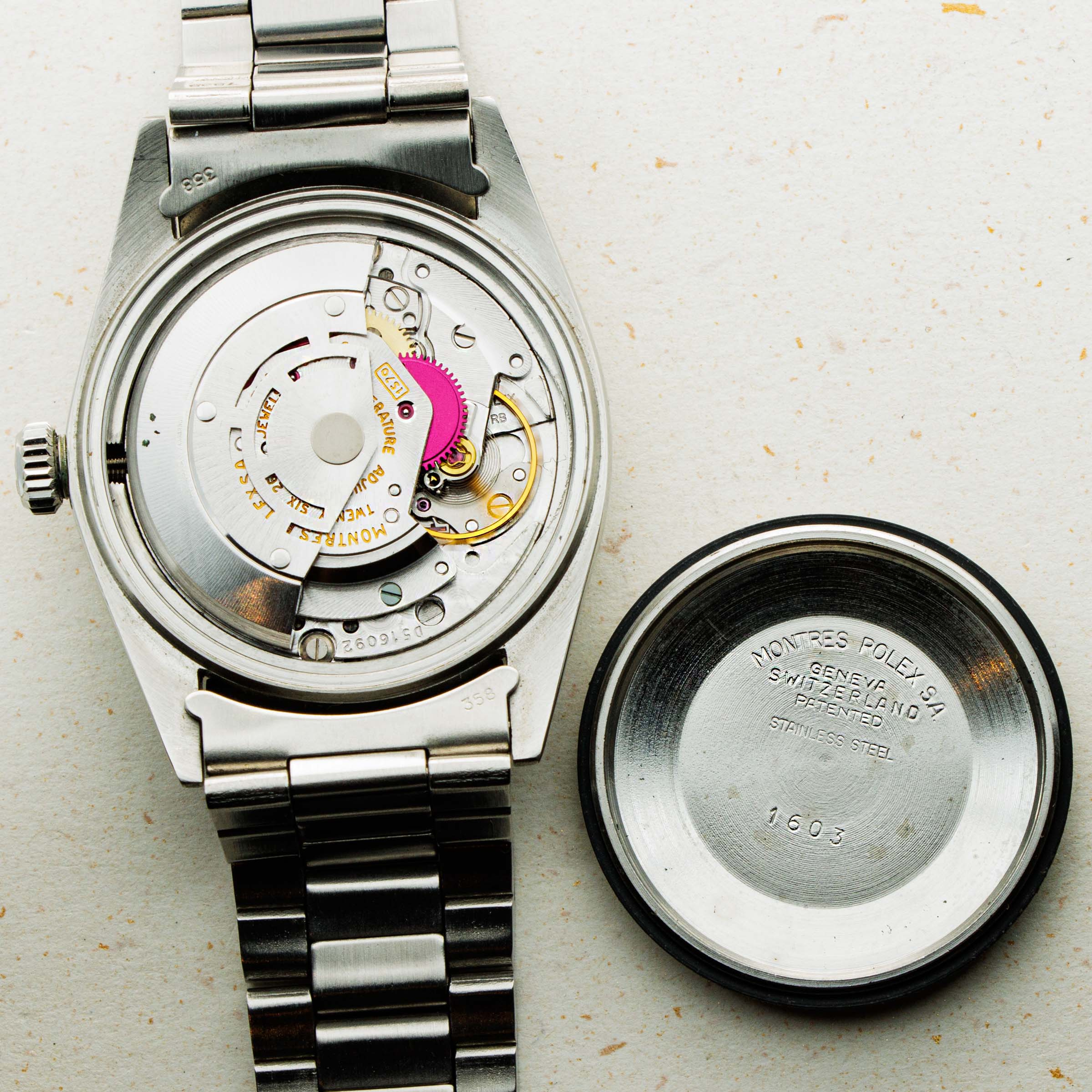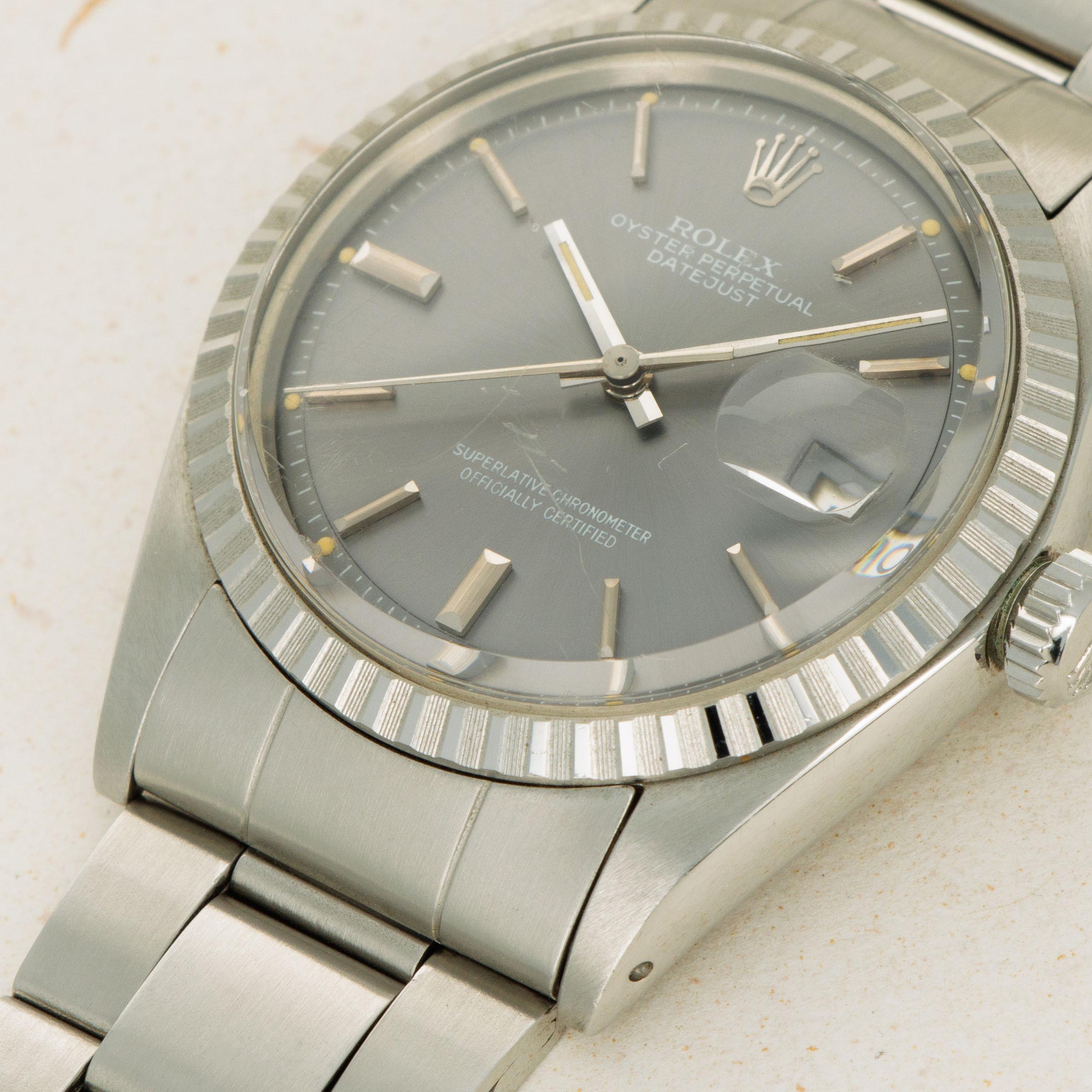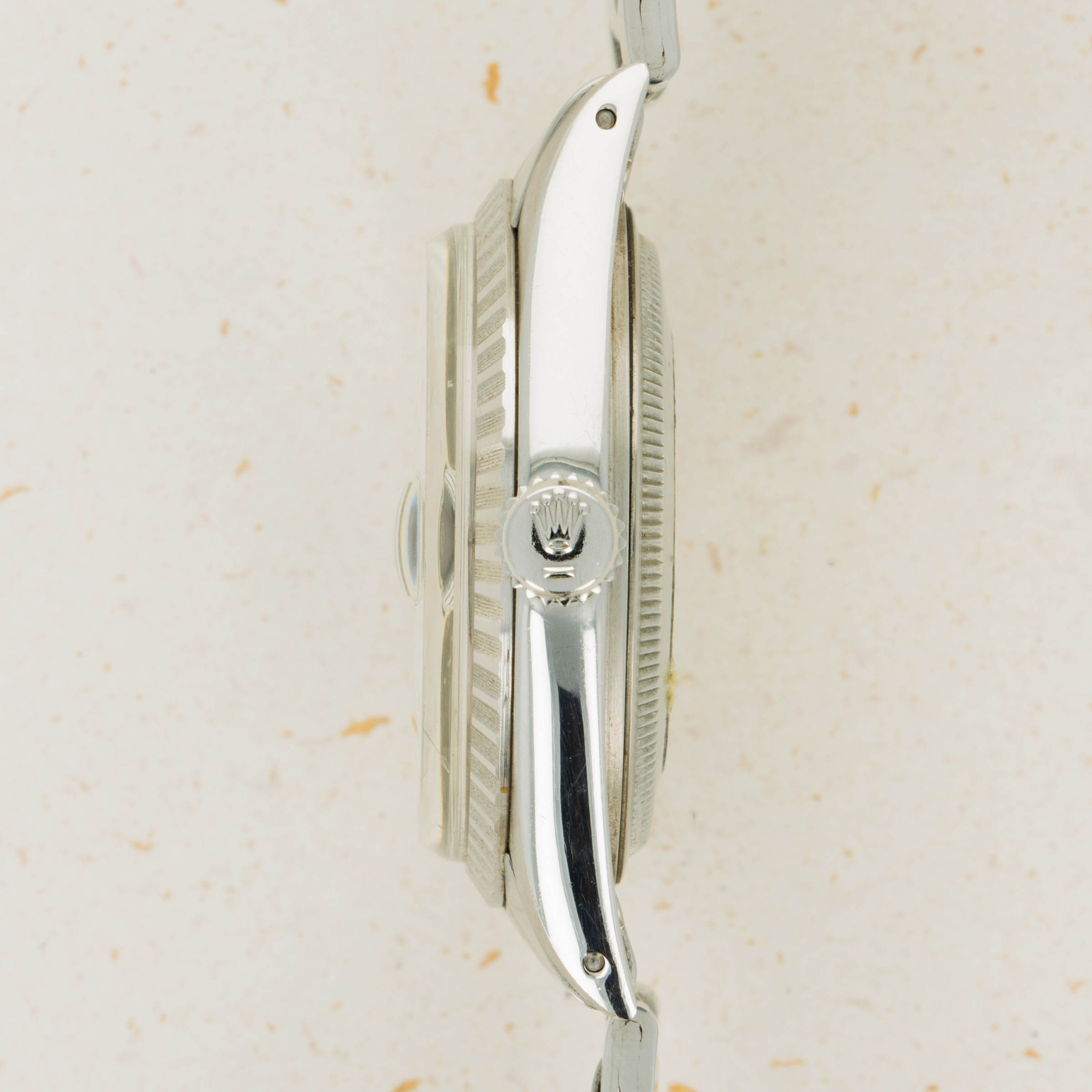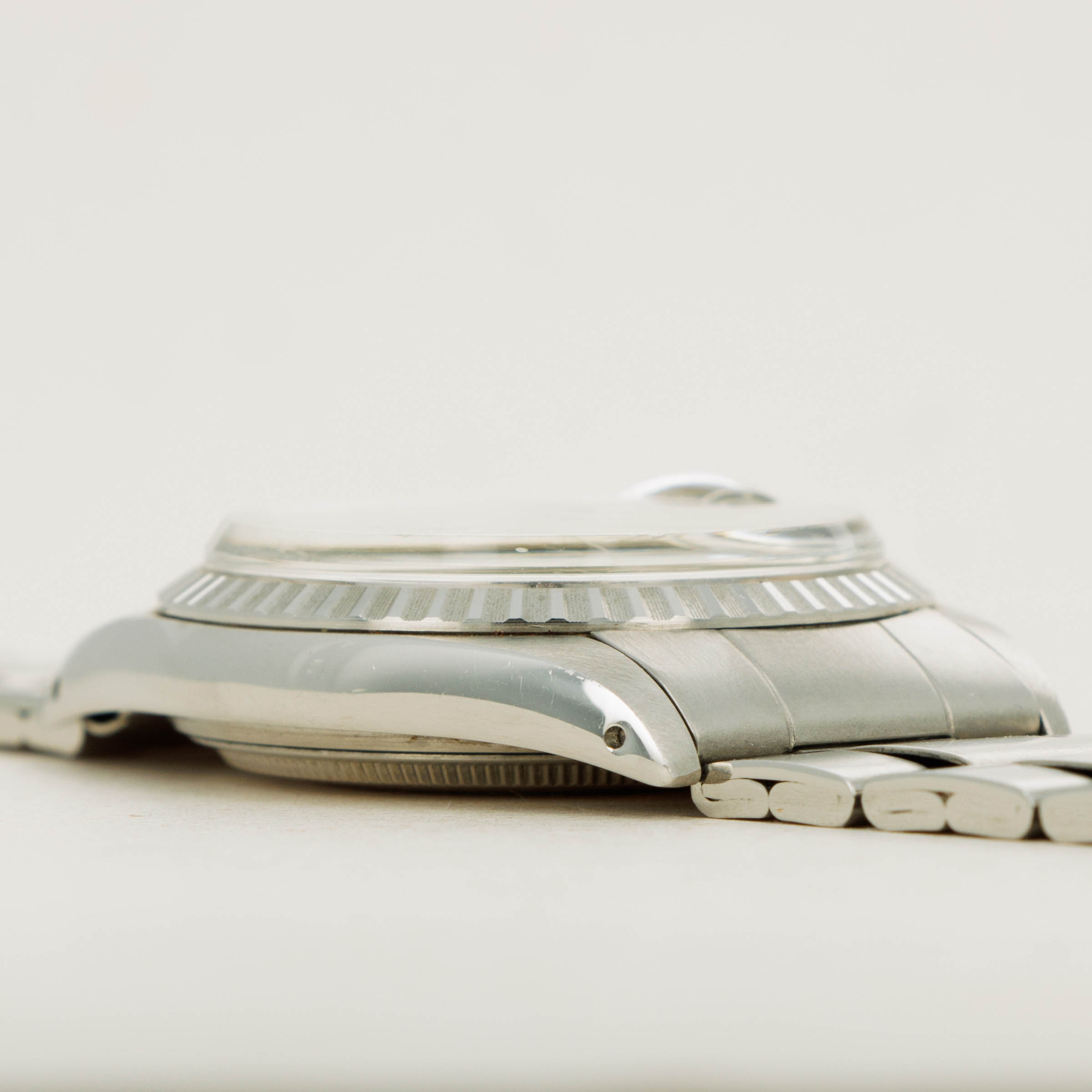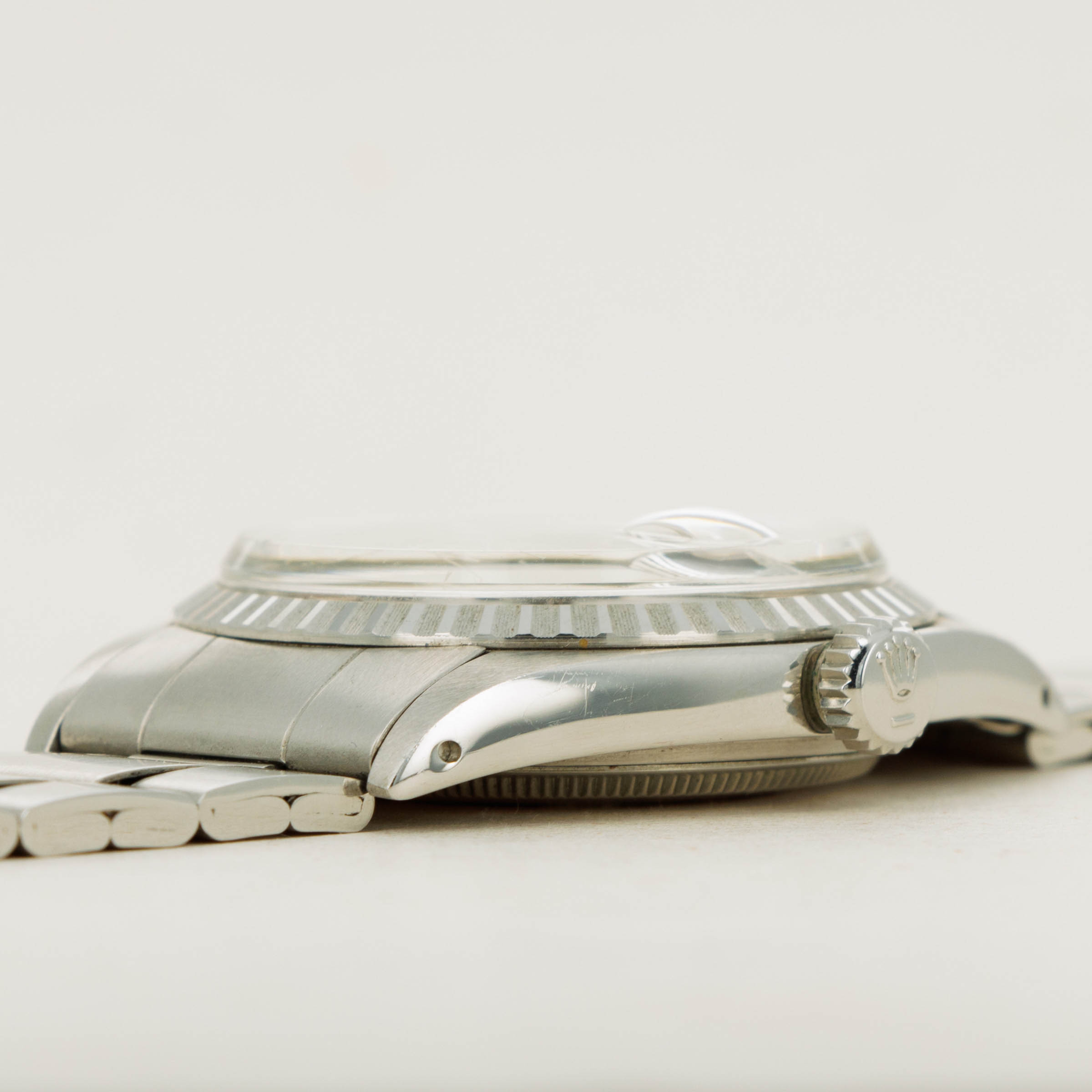 One of Rolex's most emblematic timepieces, the Datejust has stood the test of time and lives on with most of its aesthetic unchanged over the several decades it has been in production. It is a truly iconic watch, and this example features vast amounts of vintage appeal like its original caseback sticker and rolled steel links.