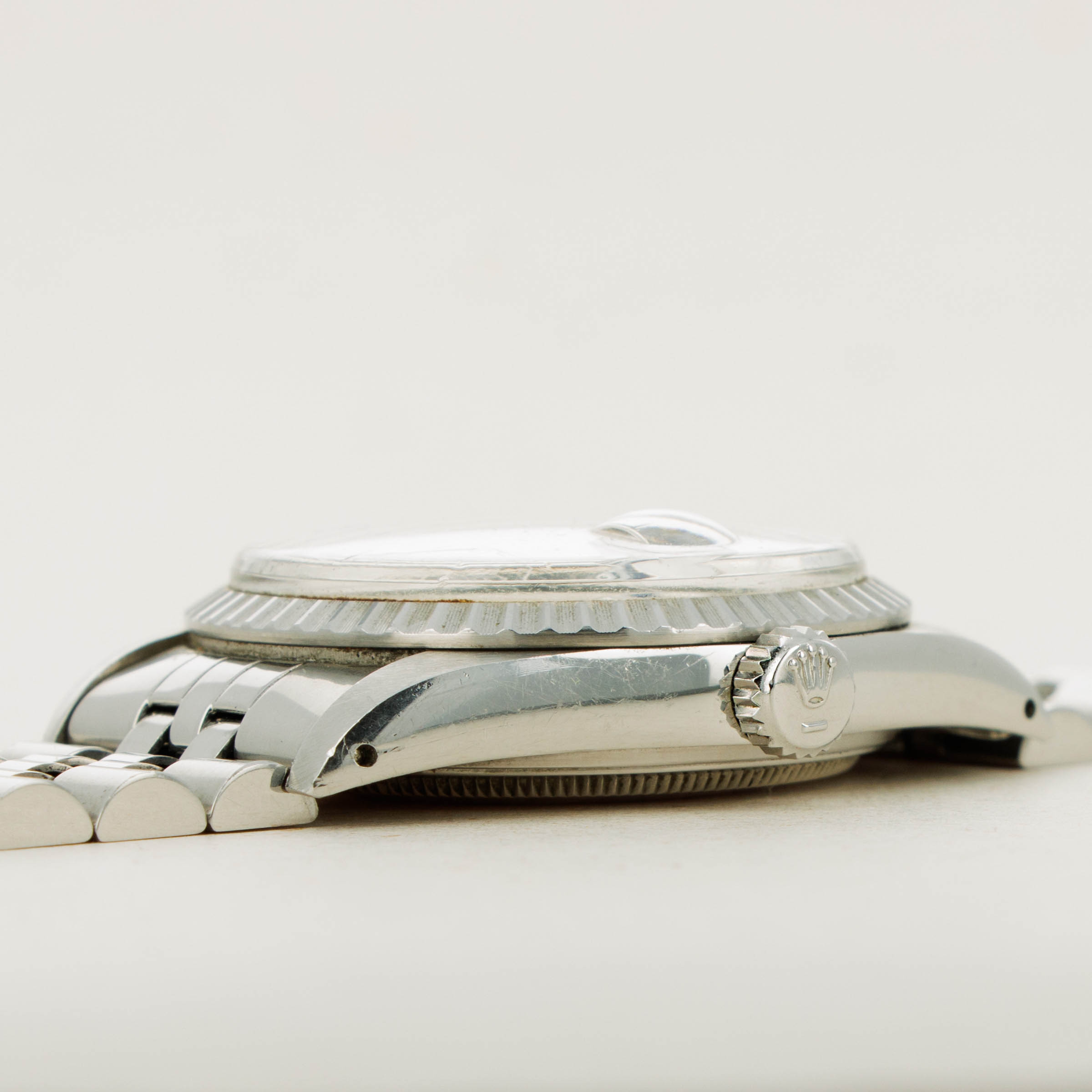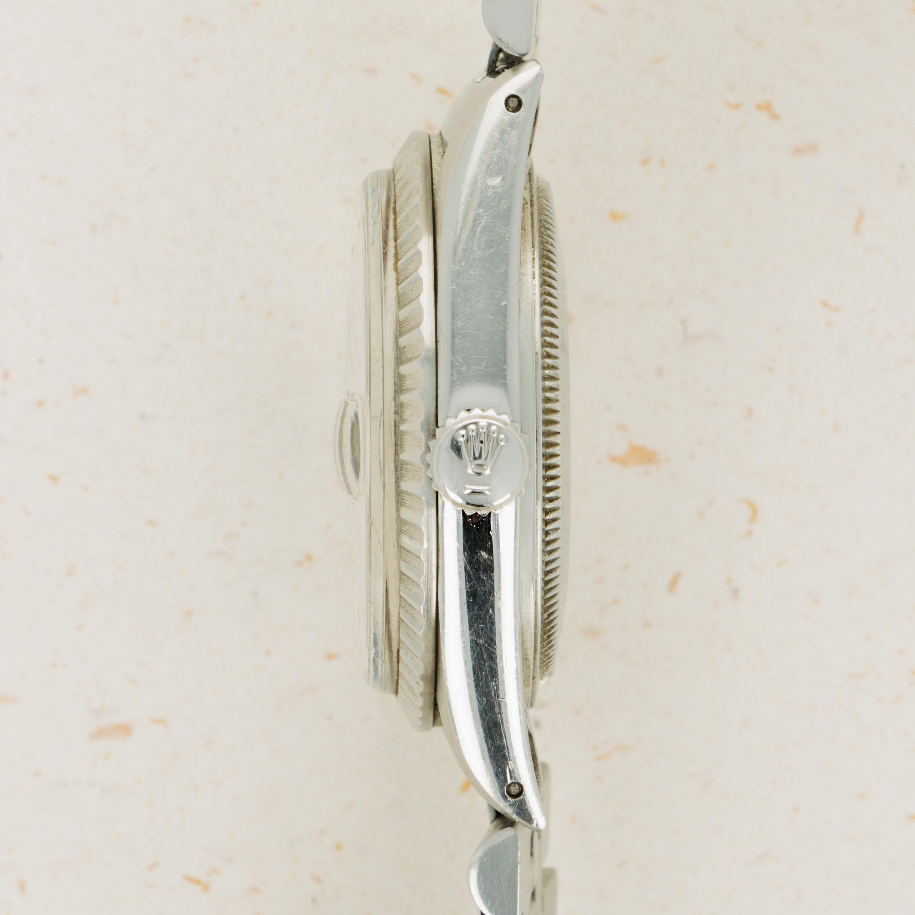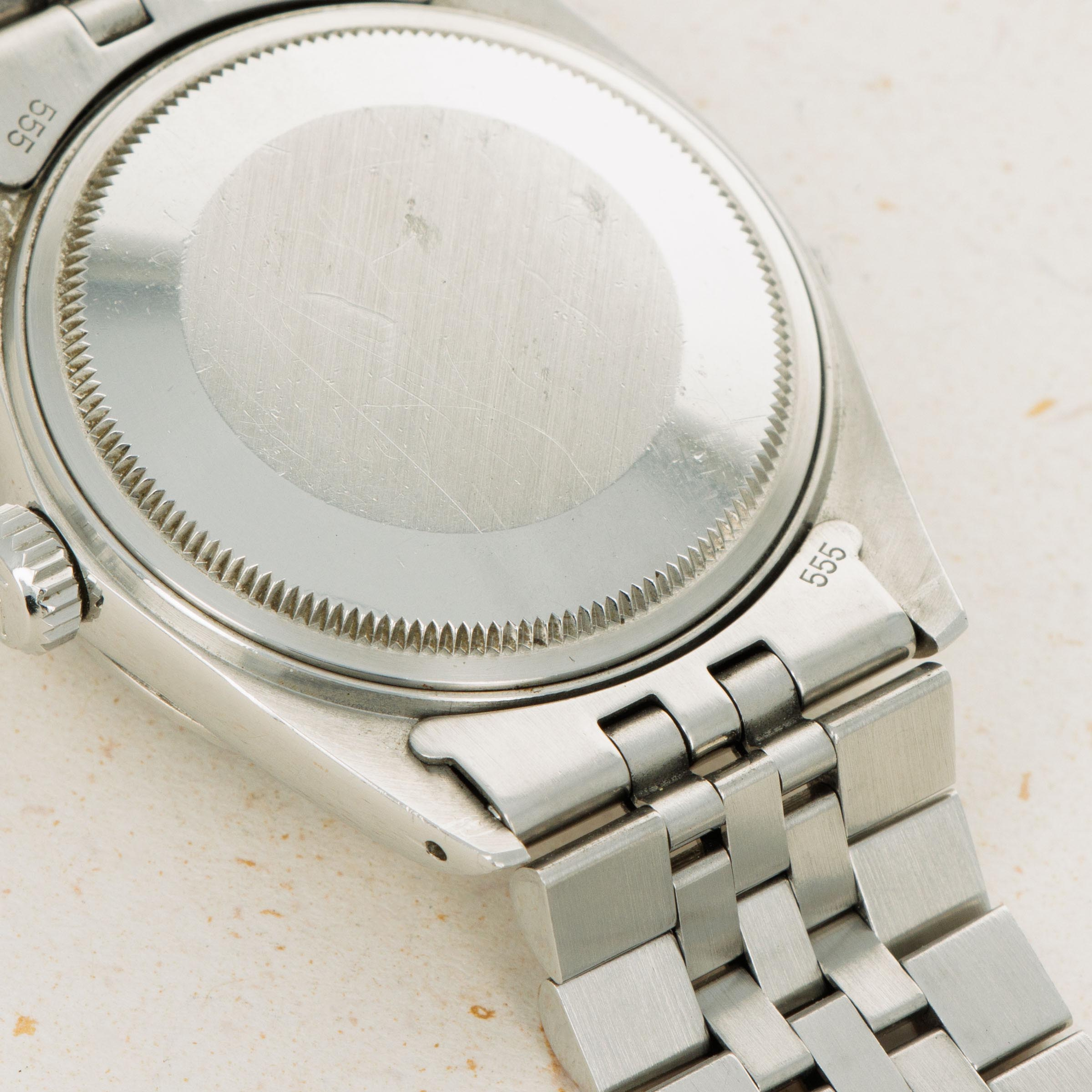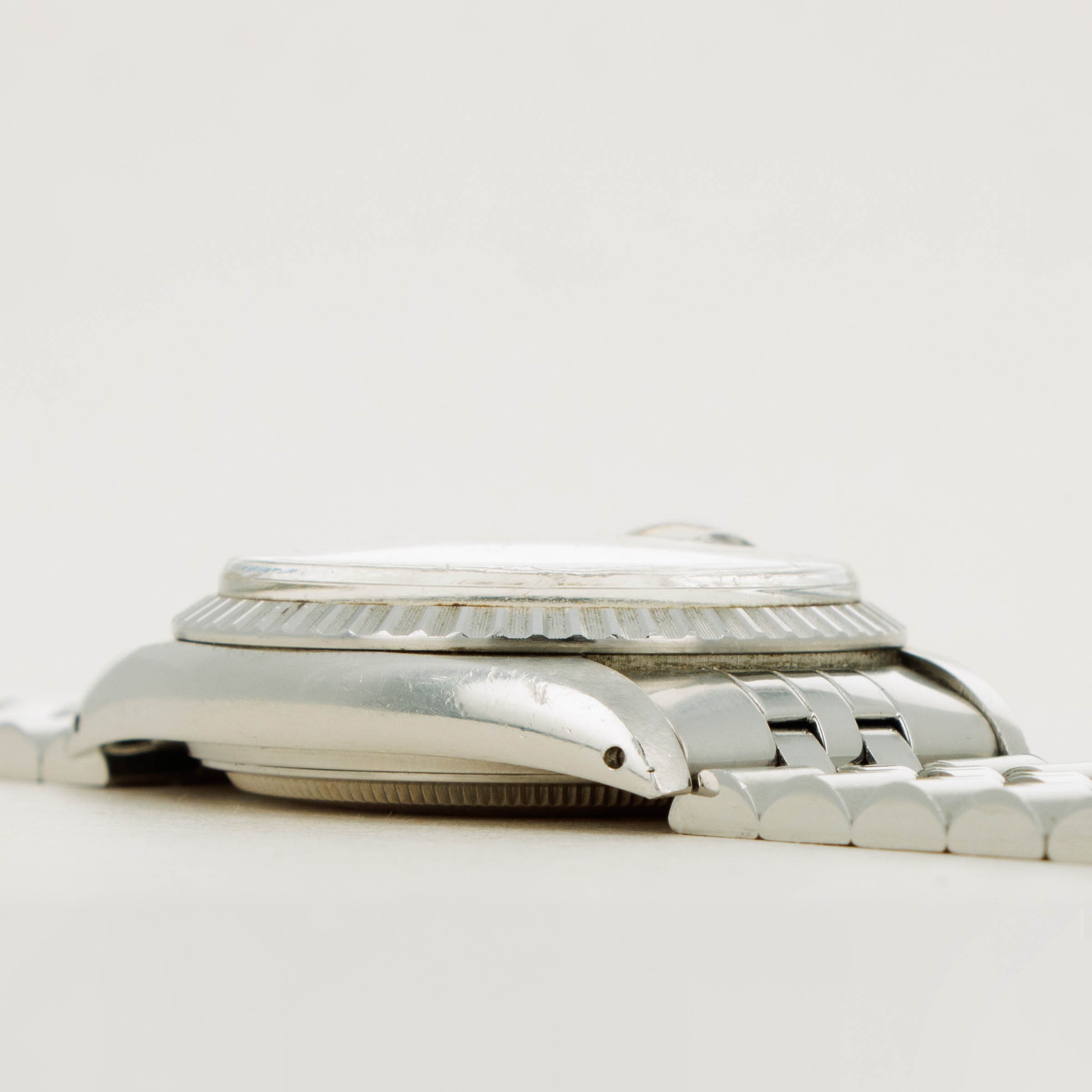Featuring an entirely stainless steel construction, this example sports the Datejust's iconic Jubilee bracelet and the since-discontinued stainless steel engine-turned bezel.