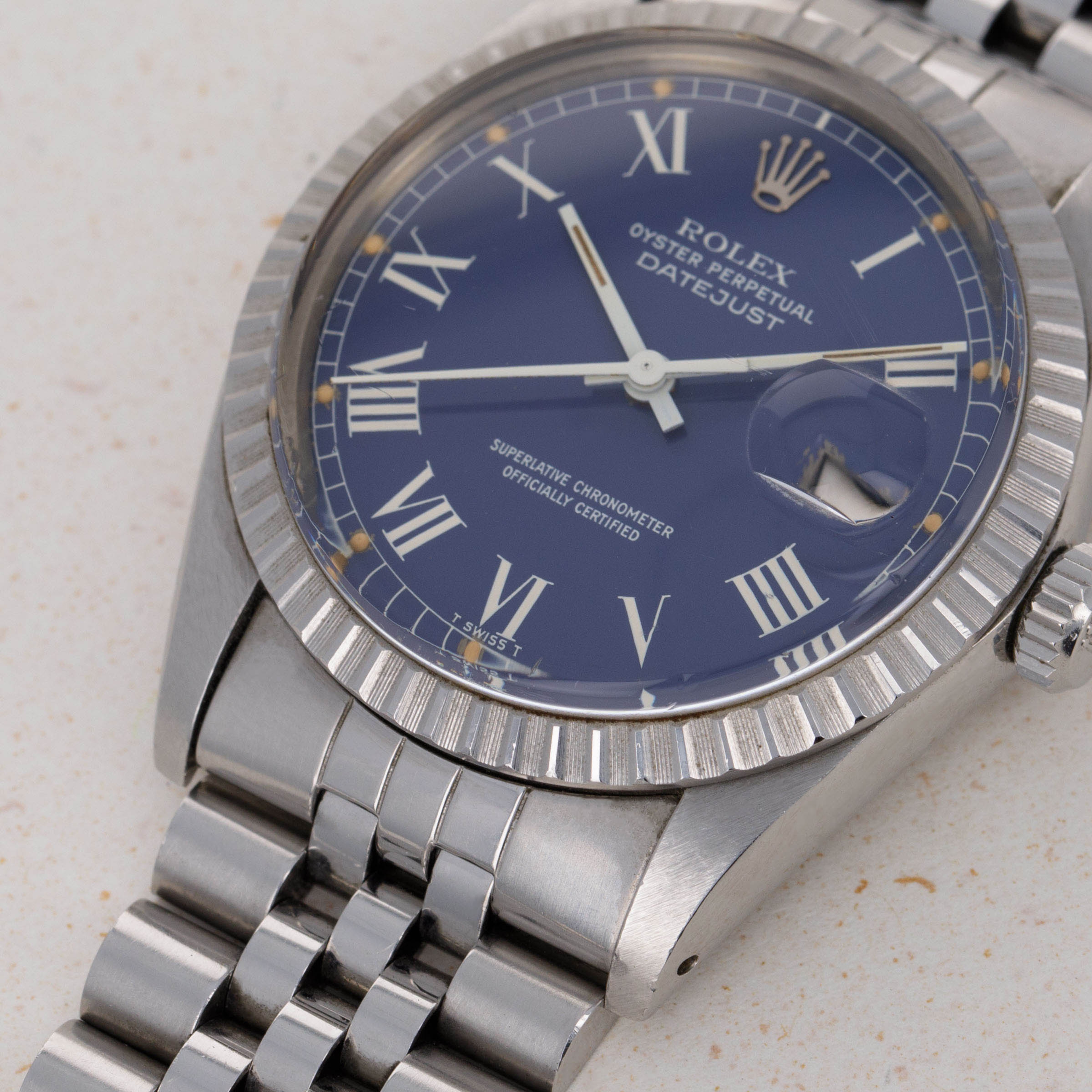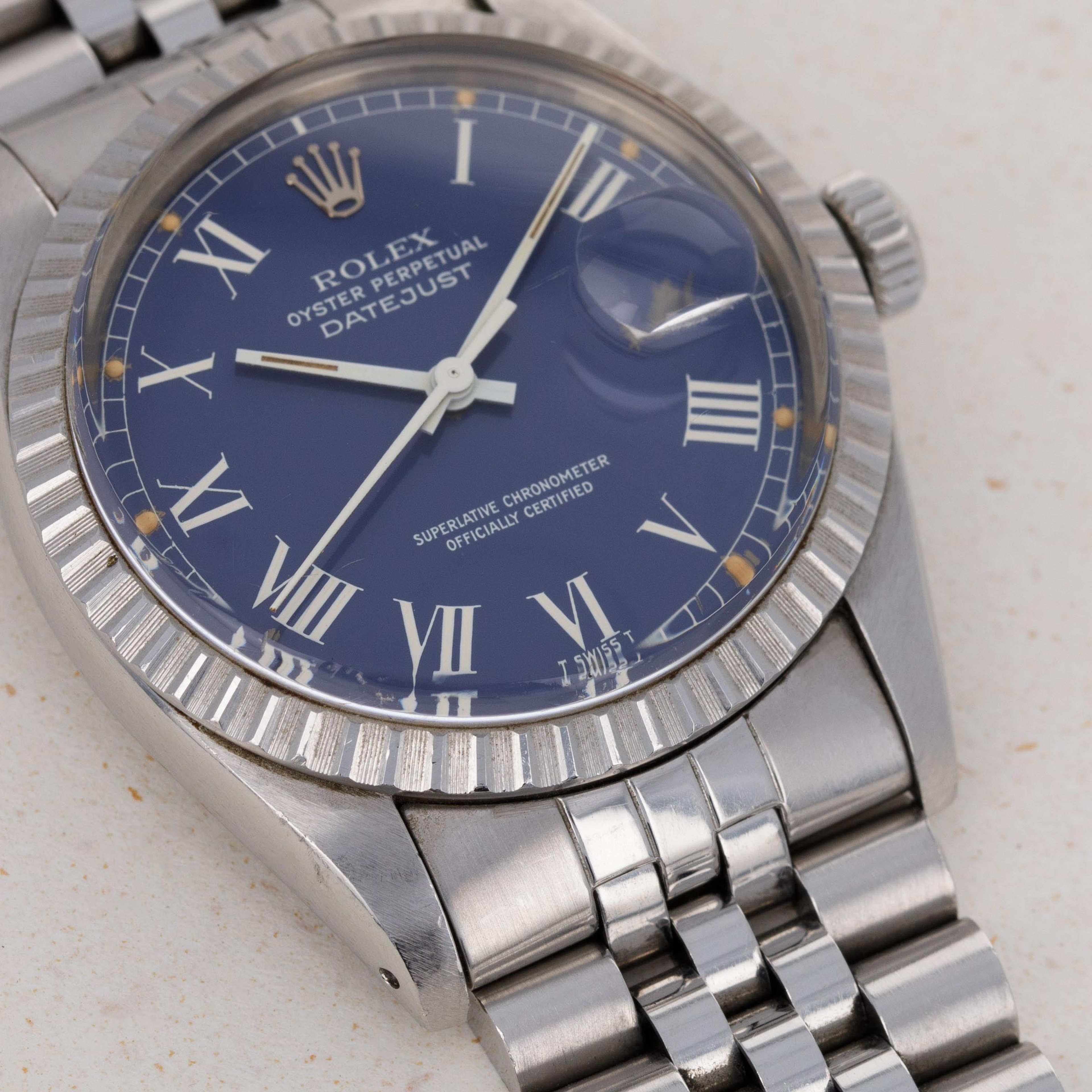 Boasting the Datejust's iconic design, the since-discontinued engine-turned bezel, and a stunning blue Buckley dial, this ref. 16030 is a beautiful example of a neo-vintage Datejust.