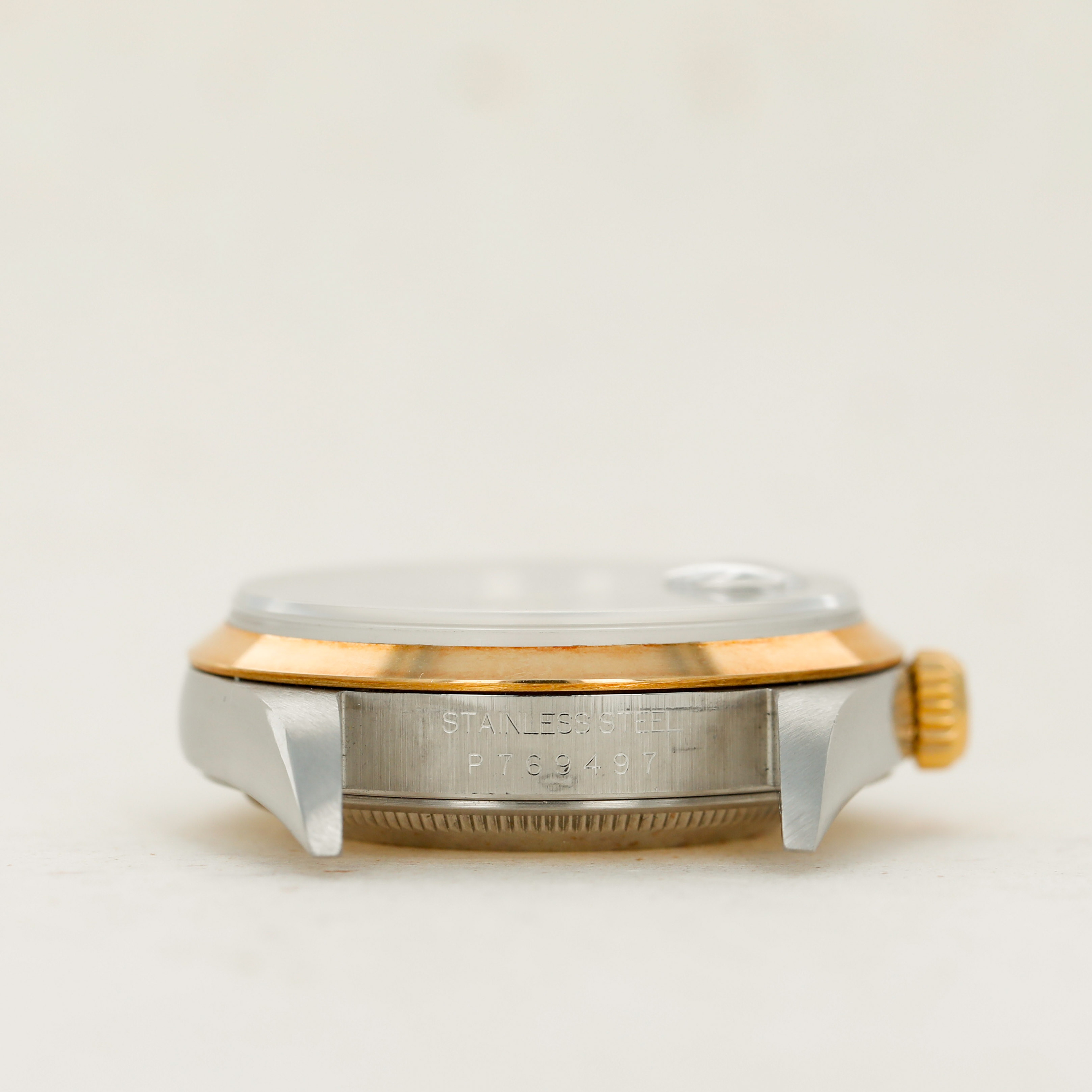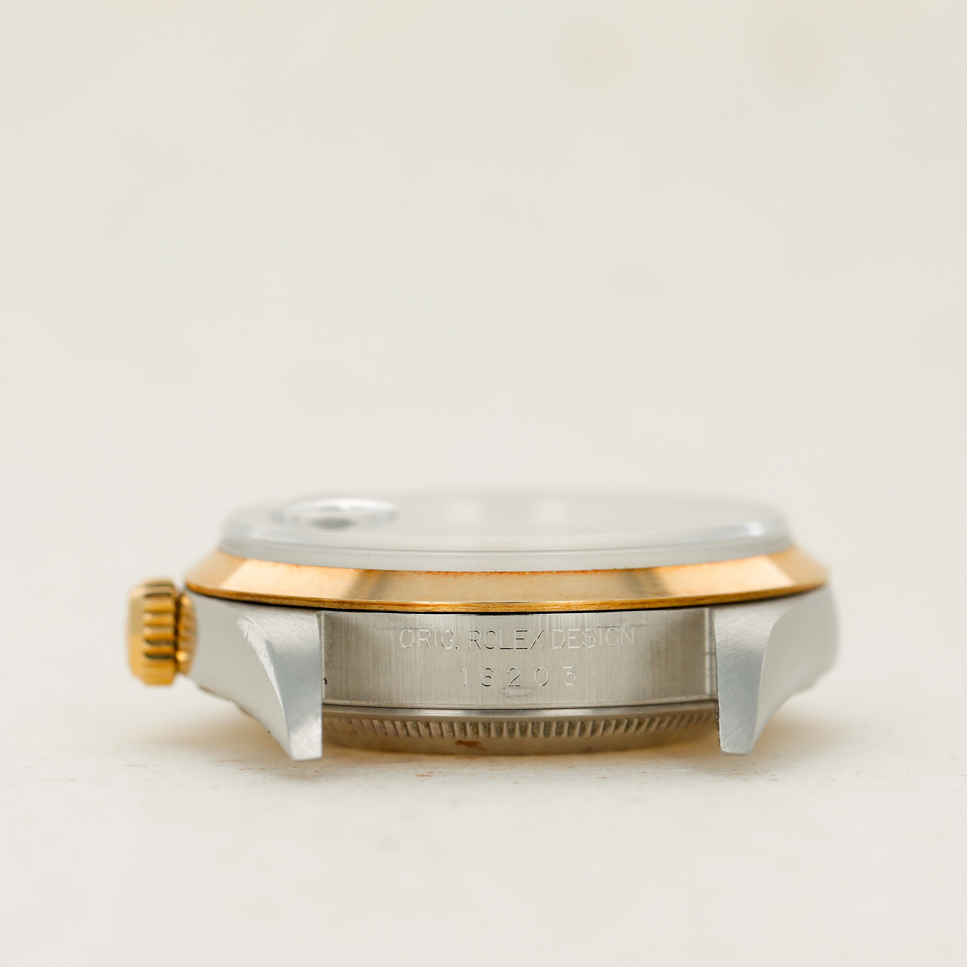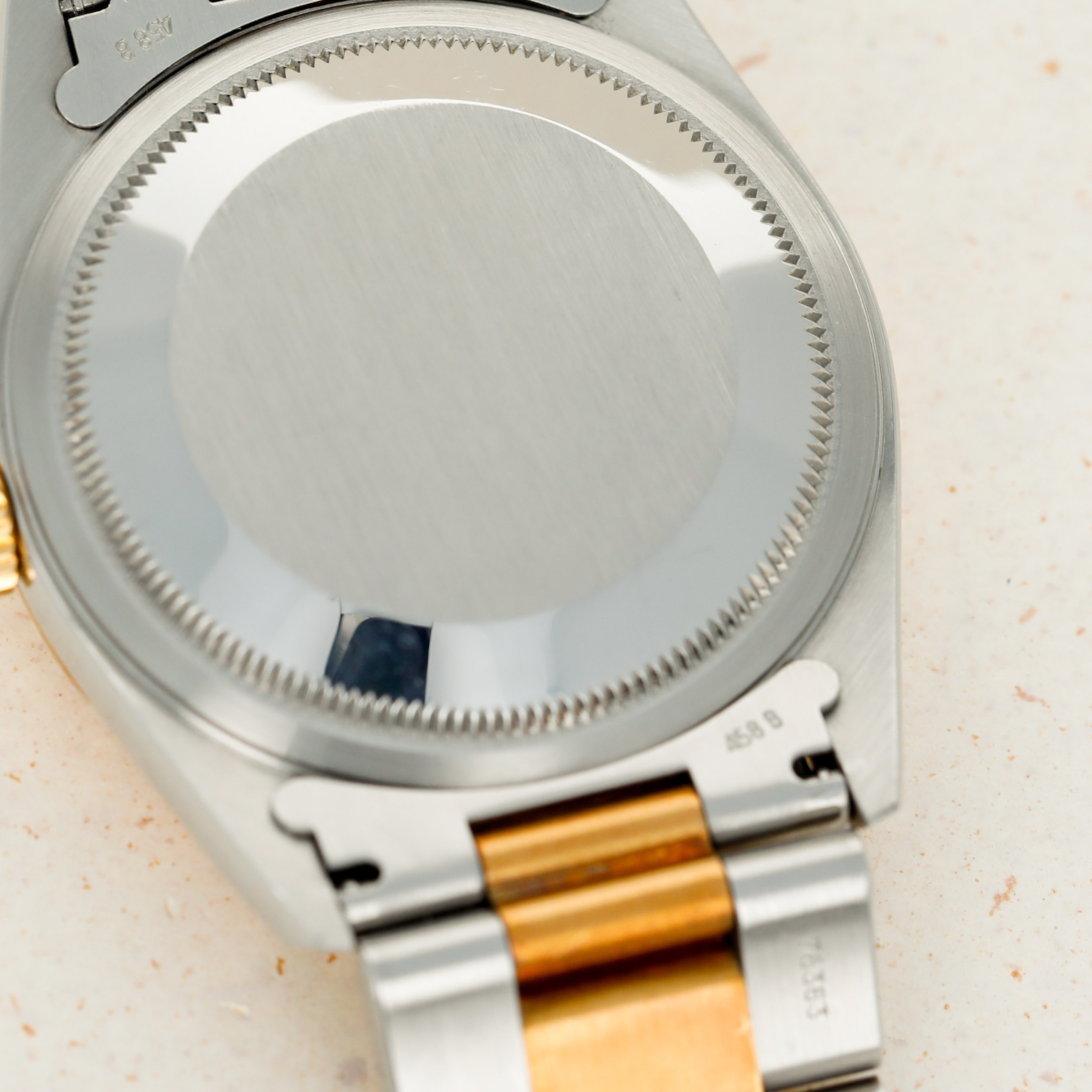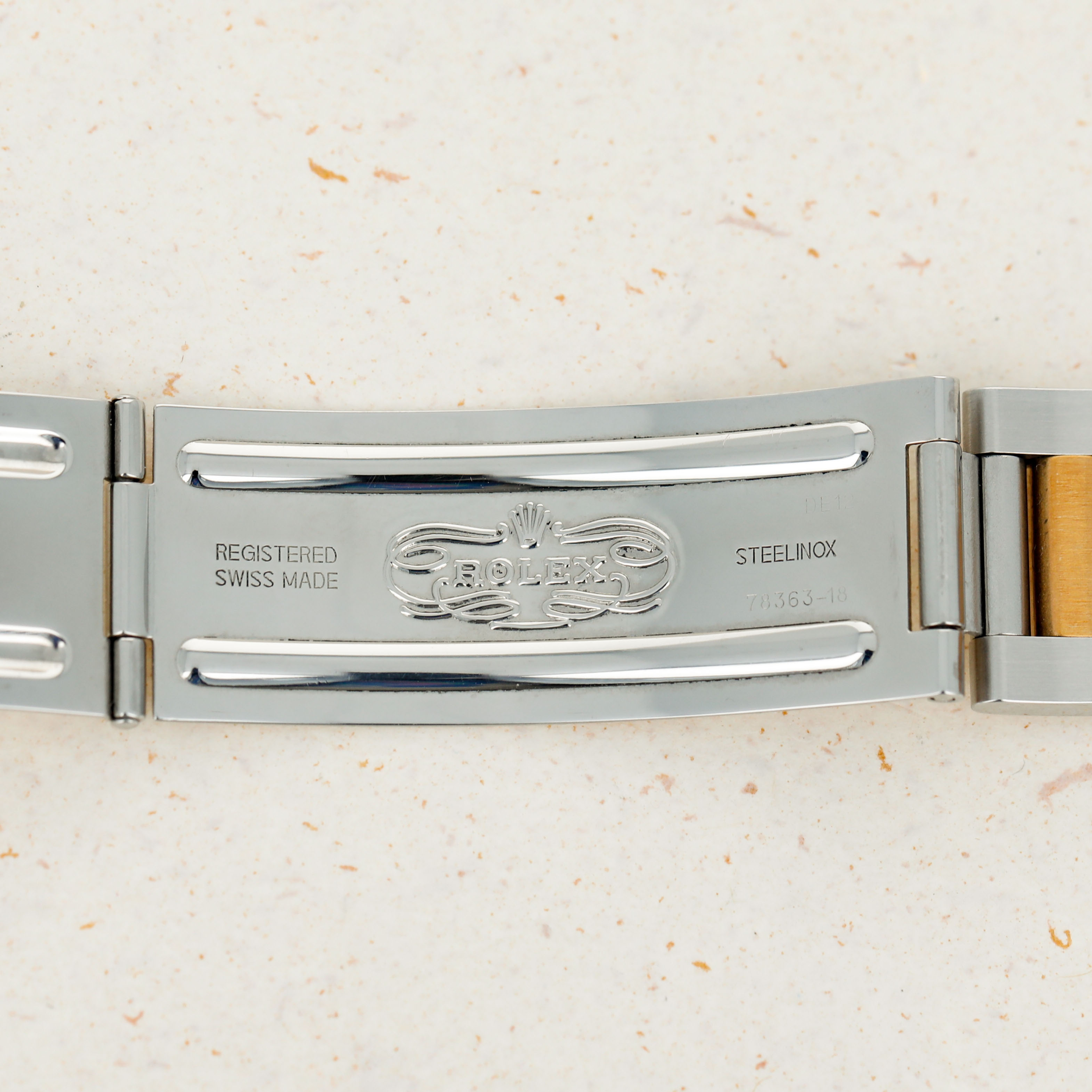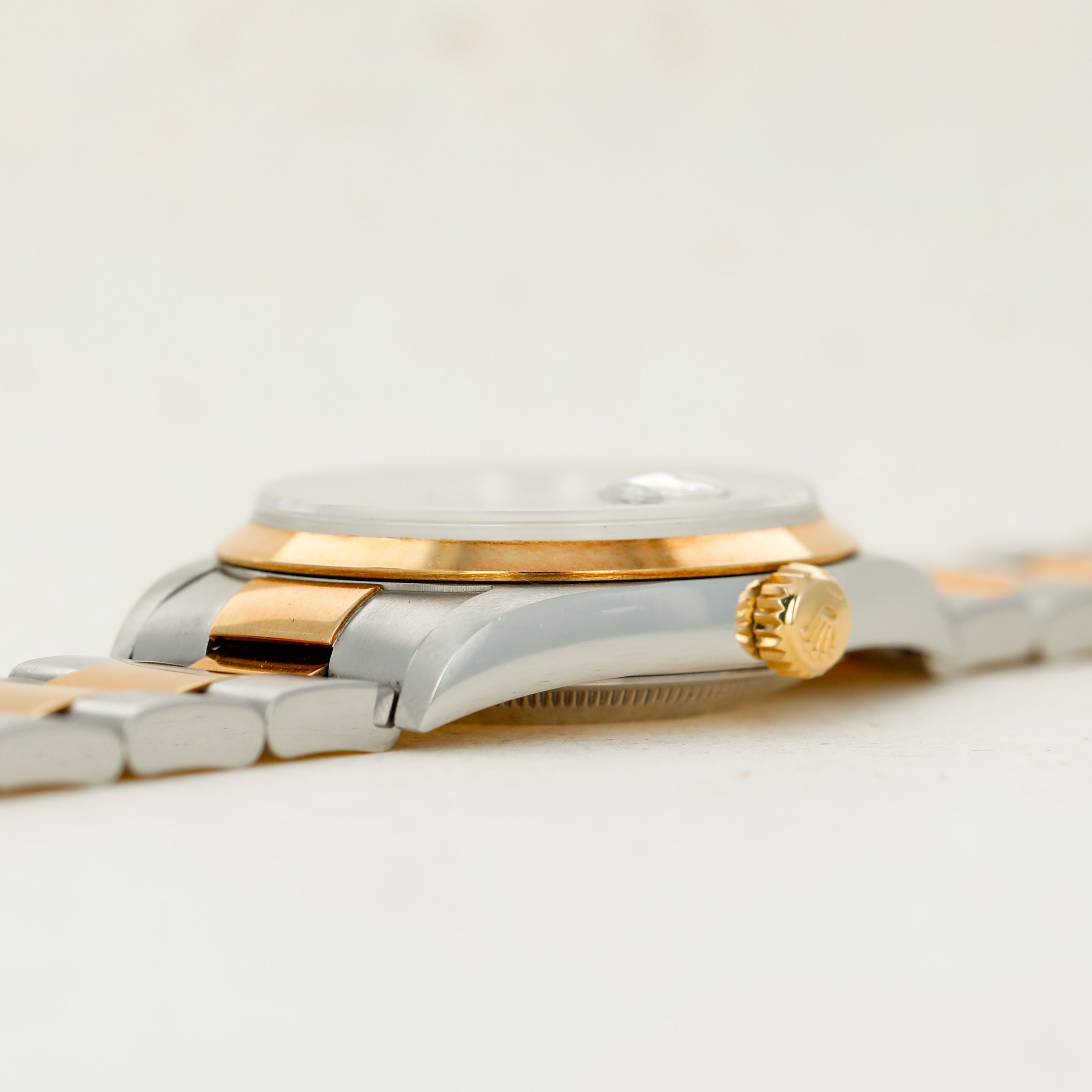 Offered on the harmonious pairing of Rolex's Oyster bracelet and a flat bezel, this example's two-tone construction has ample opportunity to showcase the rich patina that its golden parts have developed.