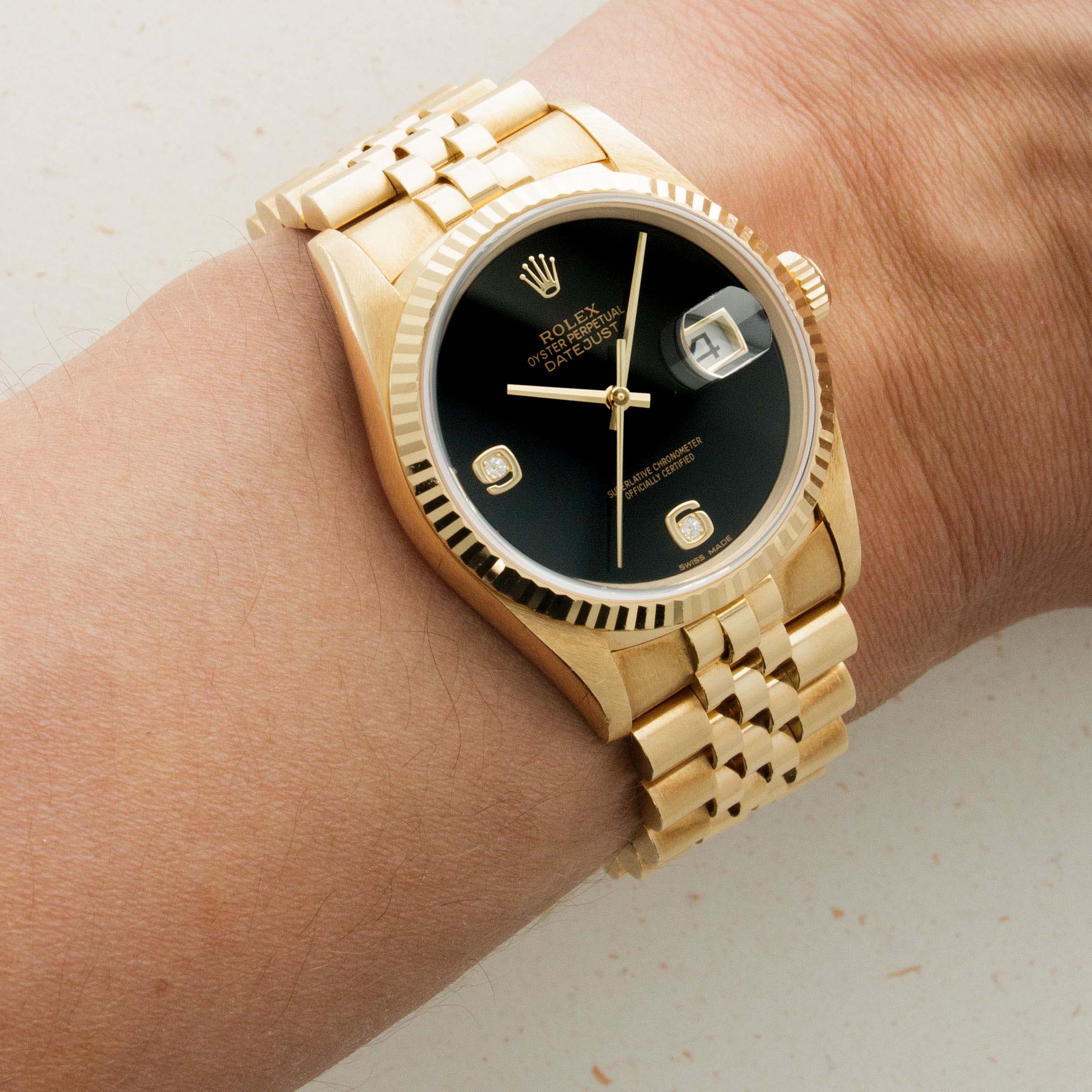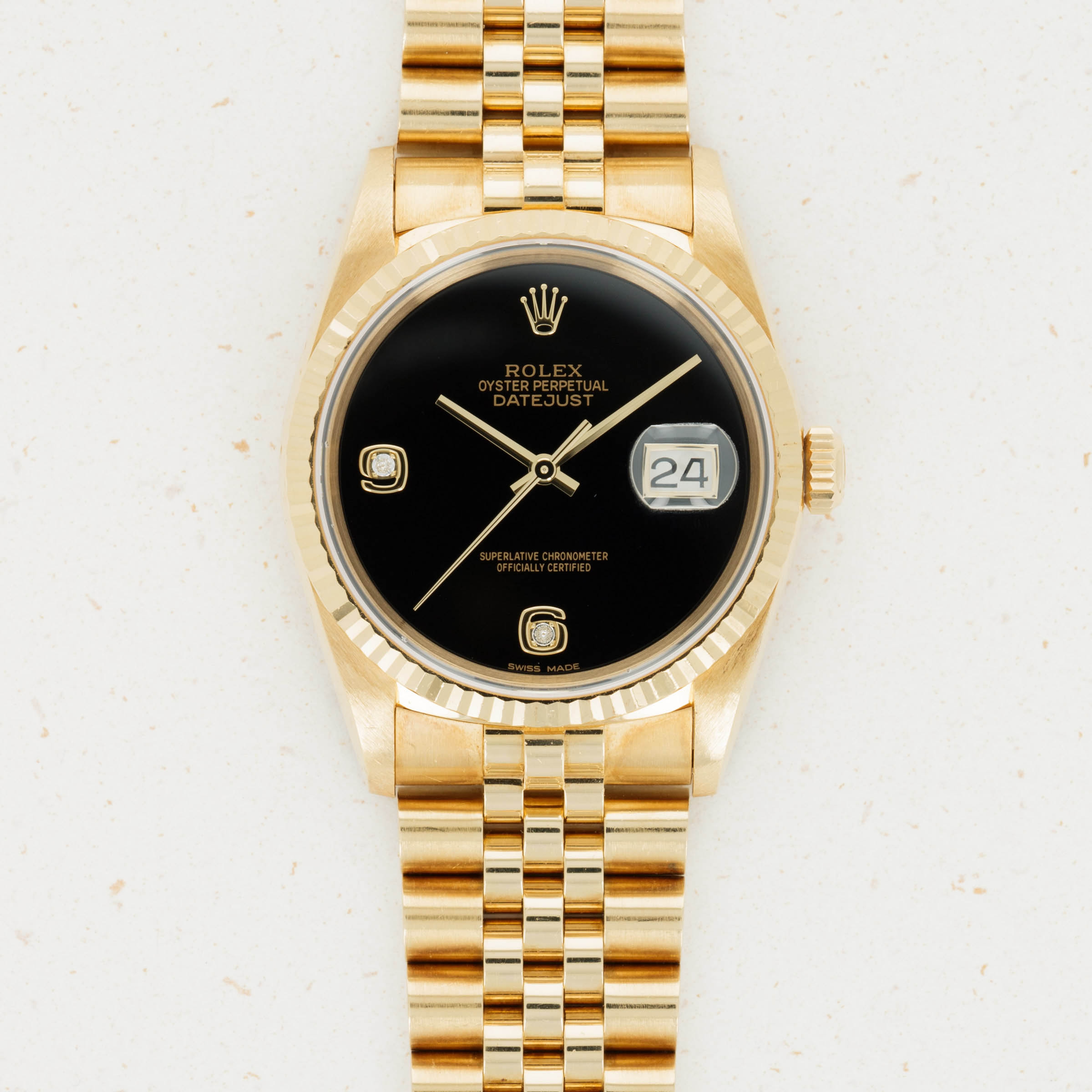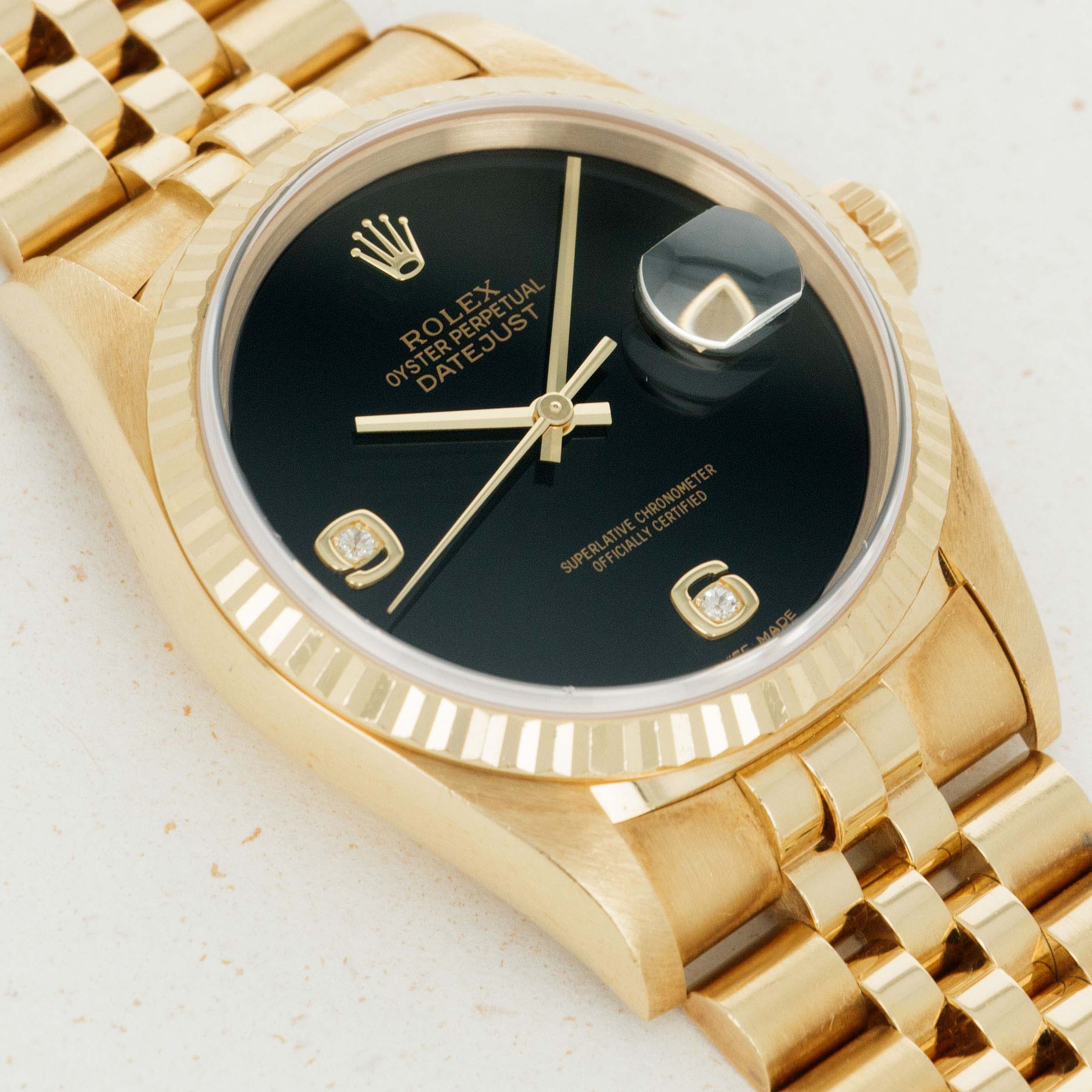 Given that the Rolex Datejust has long been an iconic piece of Rolex's offering, it is only fair that some examples were produced with complete 18ct yellow gold constructions and diamond-set onyx dials. Rare, luxurious and immediately distinctive, just as Rolex aims to be.
