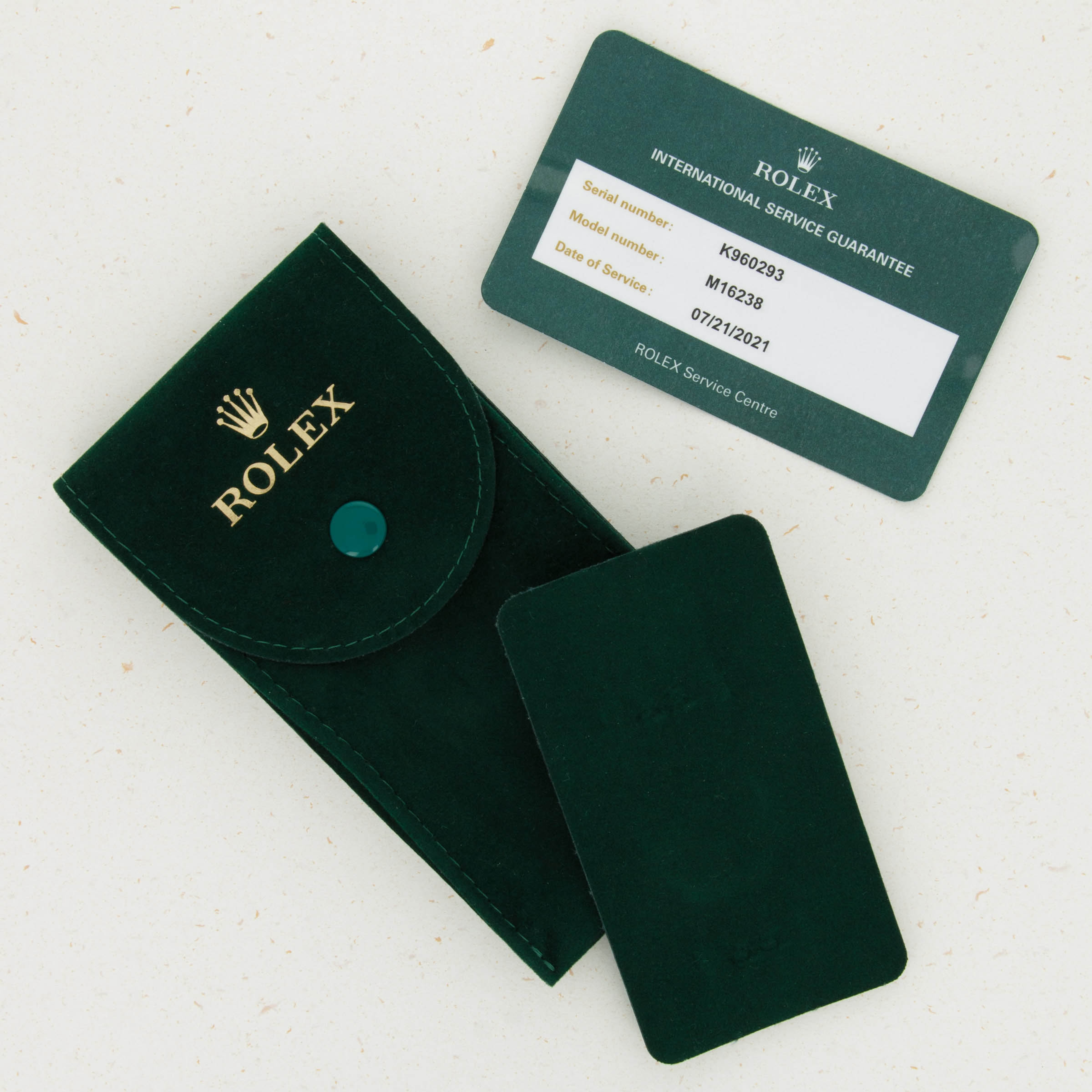 A minimalist and monochromatic touch of exclusivity, Onyx is a rare natural stone that very few select Rolex models are ever offered with. Lacking lume and indices, this ref. 16238's onyx dial features diamond hour markers to balance out its cyclops lens at 3 o'clock and its Rolex coronet at 12 o'clock.