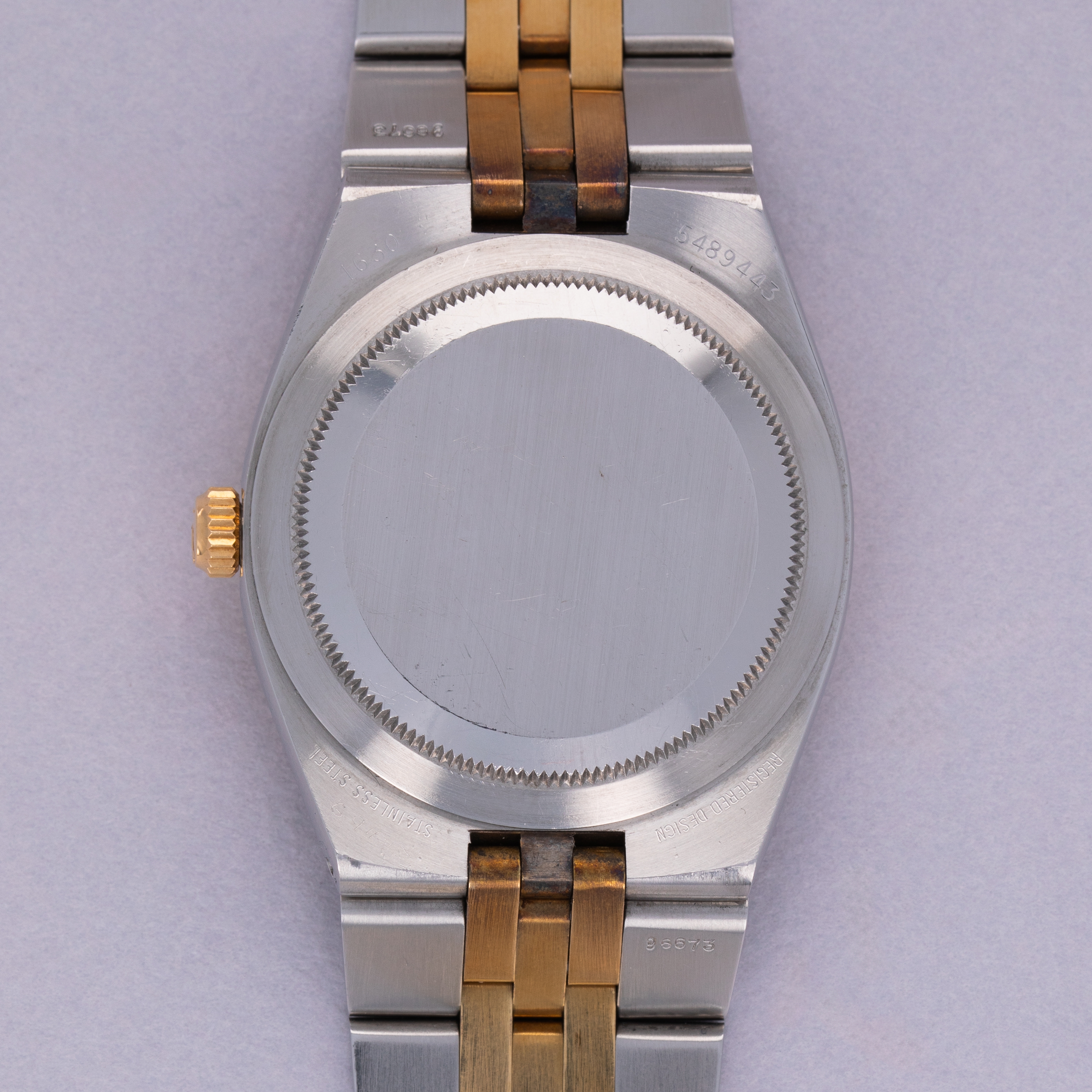 Bearing a construction style that is quite uncommon for Rolex, the ref. 1630 features the same tonneau case design that the Oysterquartz collection made famous but with its Jubilee-style bracelet in two-tone stainless steel and 18kt yellow gold. Additionally, as a result of its design, its 36mm case wears larger than its measurements suggest.