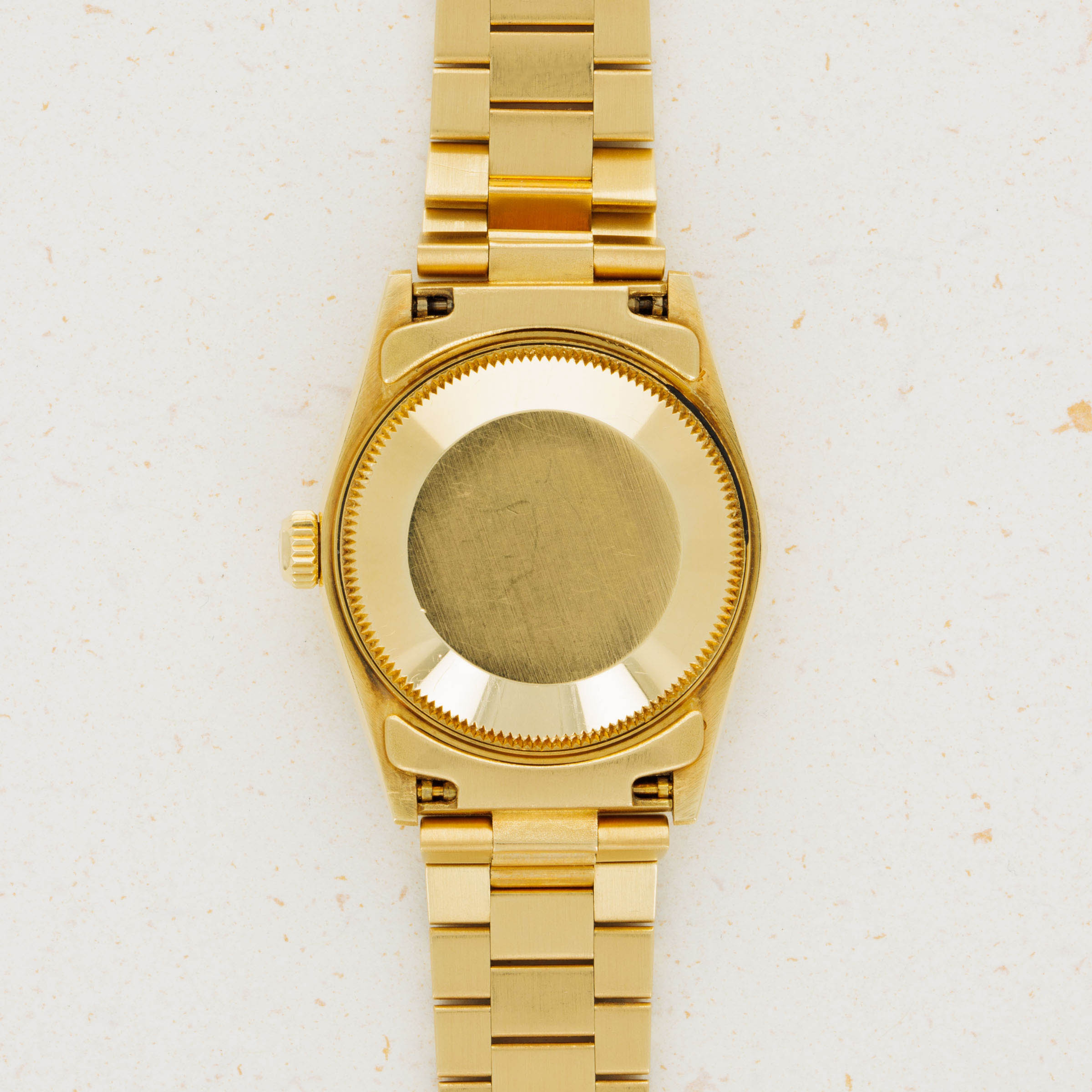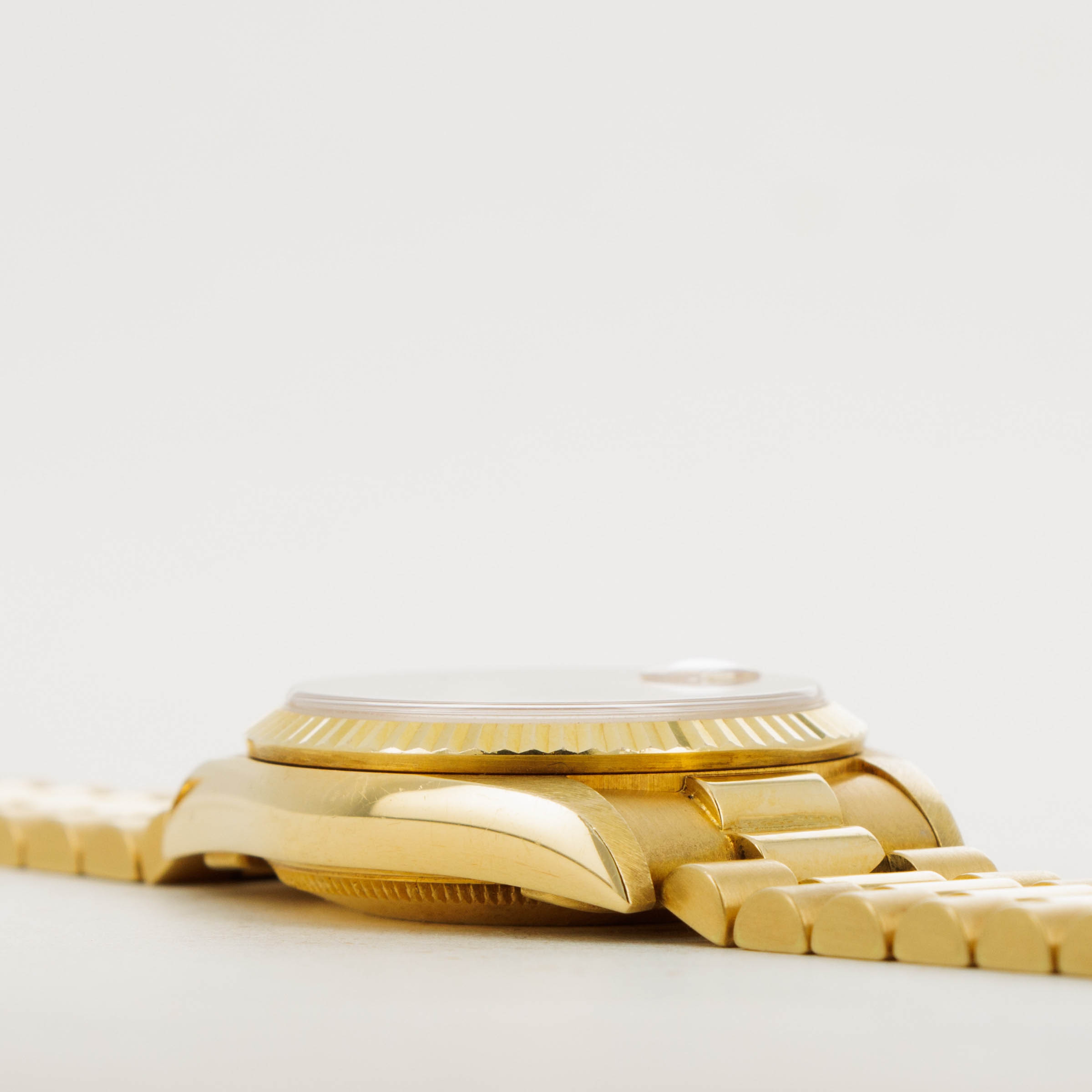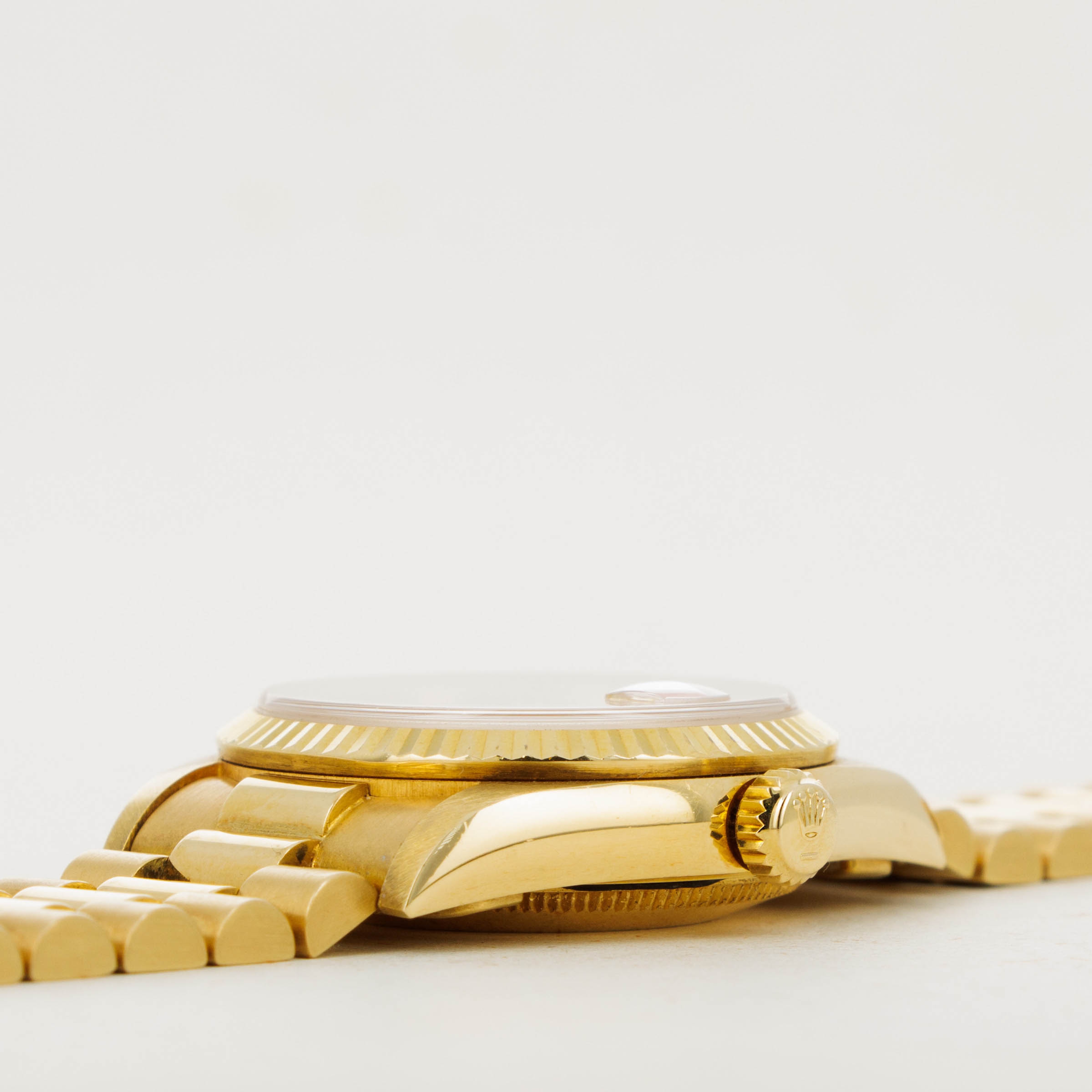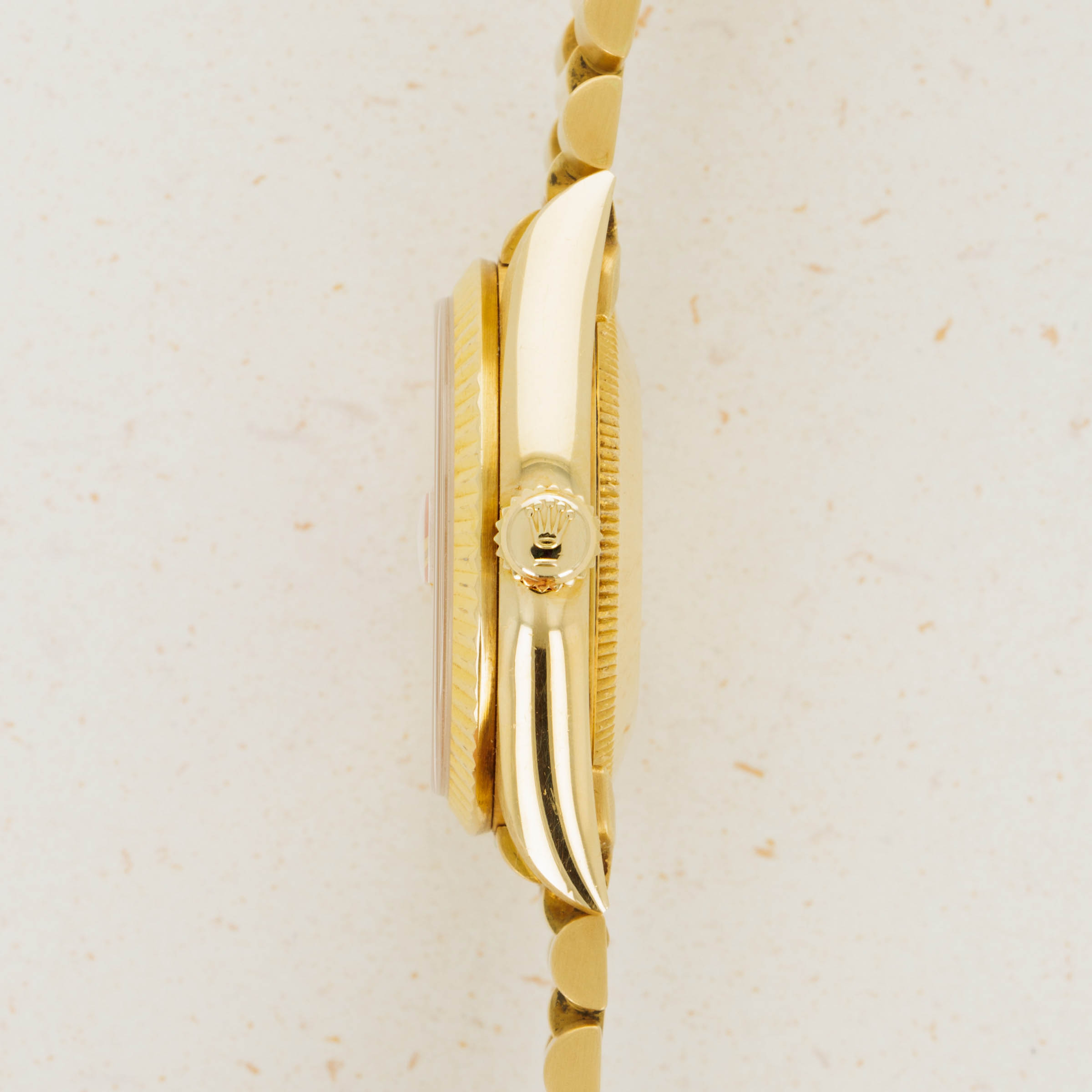 While this is a Datejust, the Ladies Datejust can be found in solid 18kt yellow gold with the addition of Rolex's iconic President bracelet as opposed to the Jubilee or Oyster bracelet which are more commonly found in the collection.